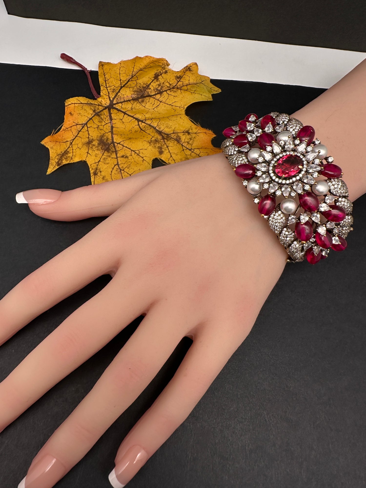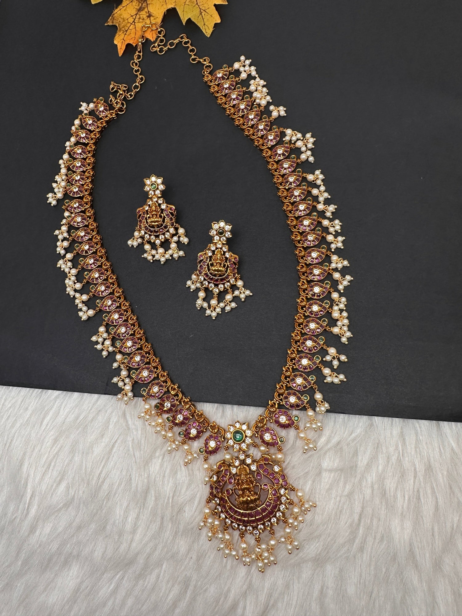 Kundan Red Stone Bridal Necklace comes with Earrings and Mang Tika