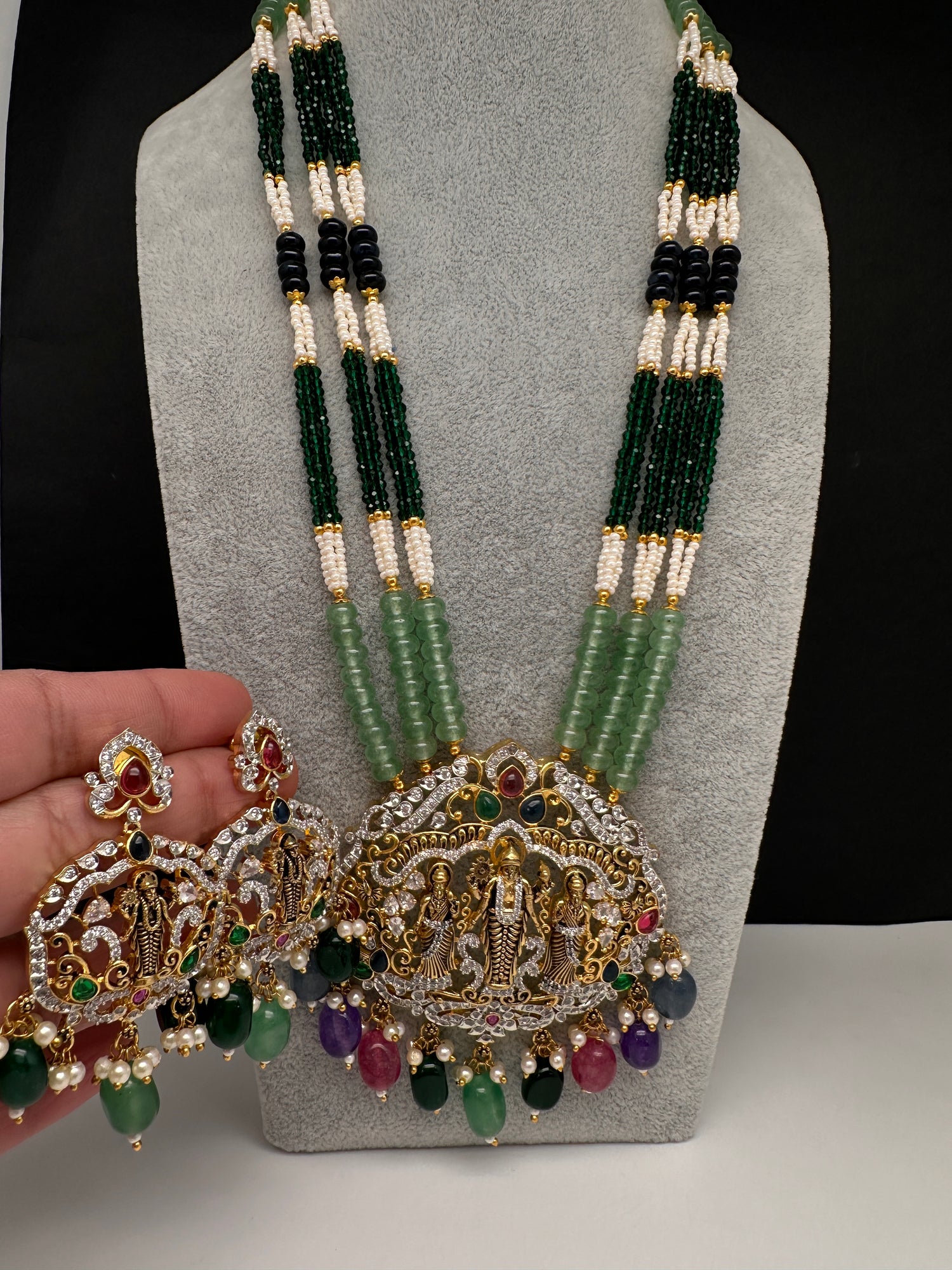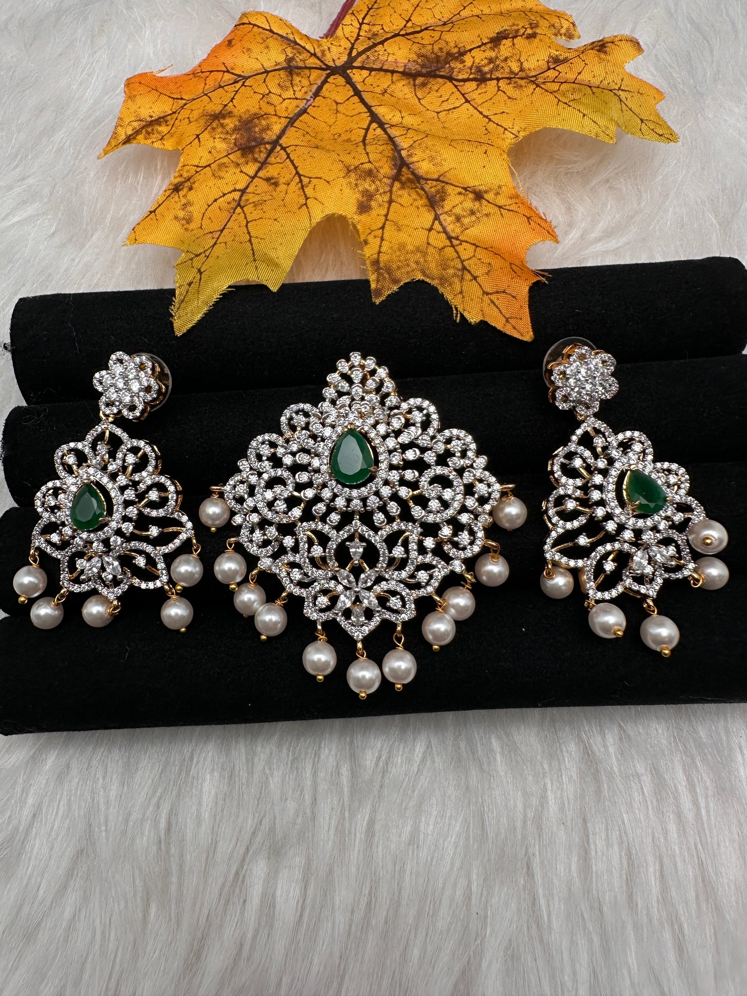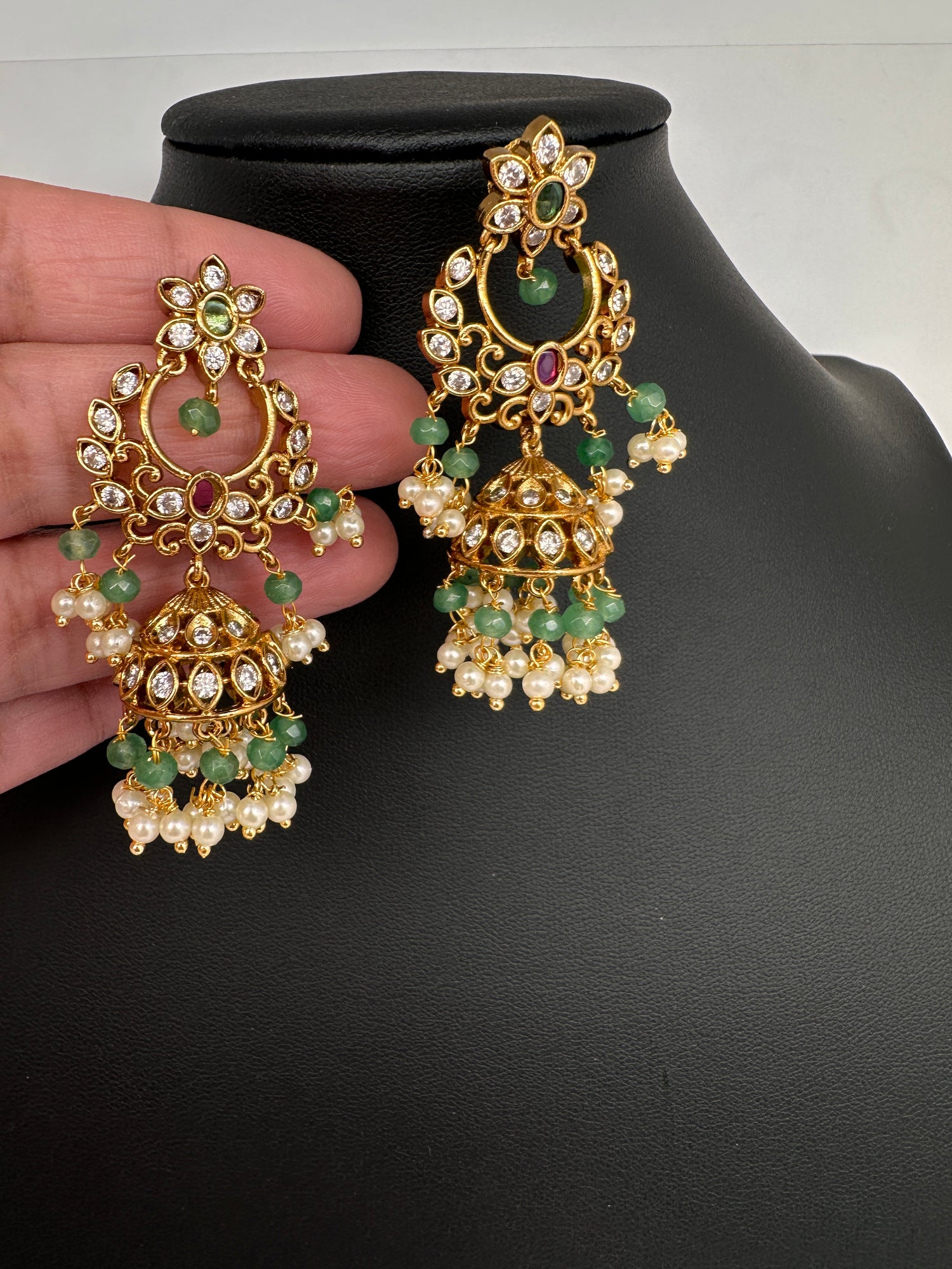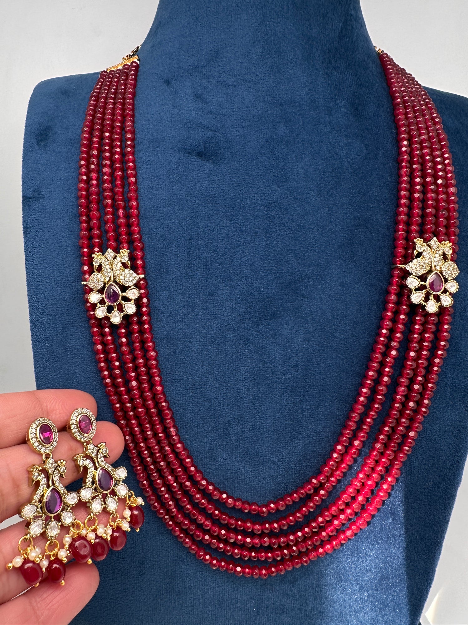 Kundan Red Green Stone Bridal Necklace comes with Earrings and Mang Tika