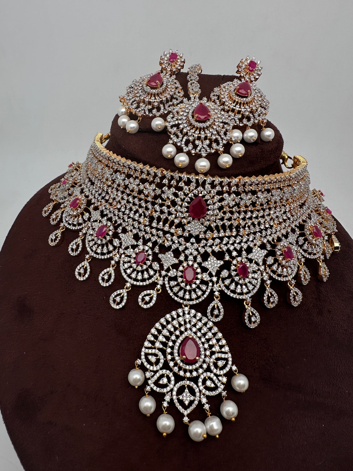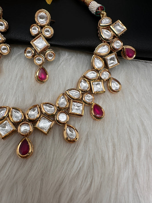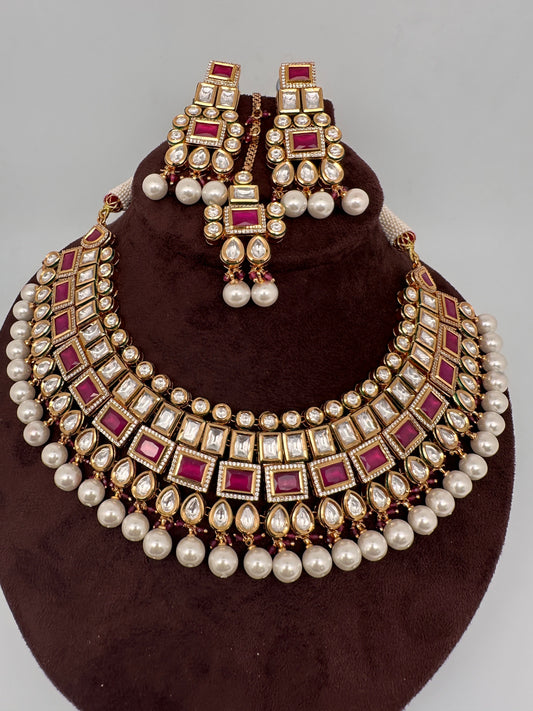 Kundan Red Stone Bridal Necklace comes with Earrings and Mang Tika