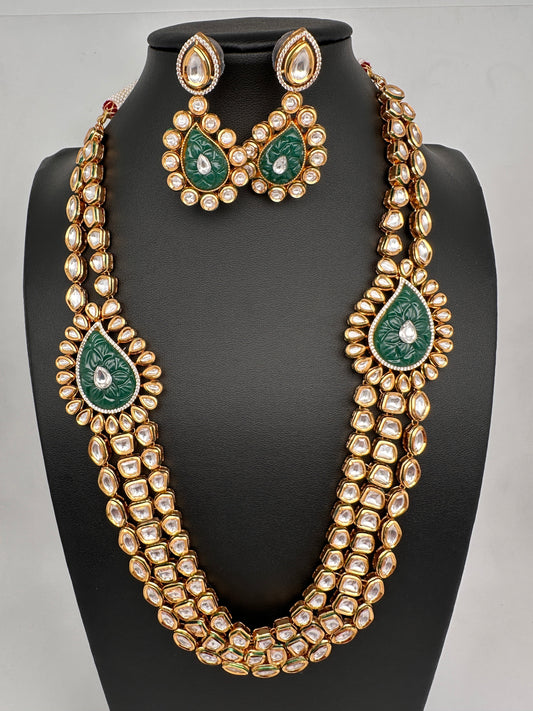 Multi Layer Kundan Green Carved Stone Mid Length Necklace