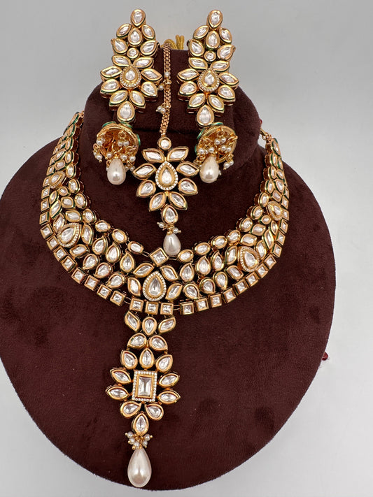 Kundan Statement Necklace comes with Earrings and Mang Tika