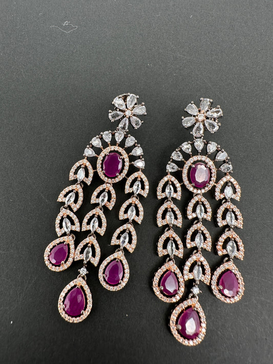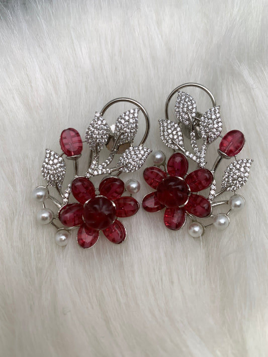 AD Color Stone Floral Cascade Silver Finish Earrings