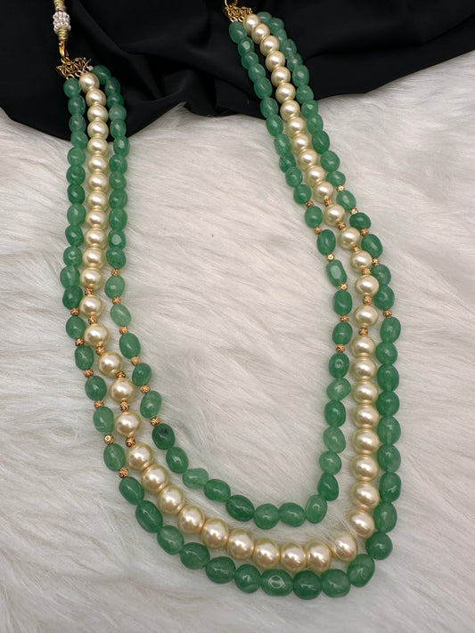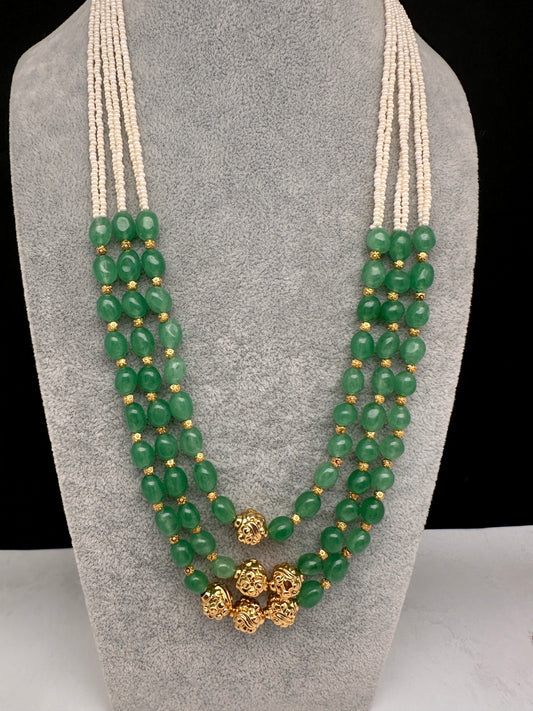 Emerald Beads Pearls Multi Layer Necklace