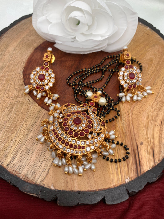 Peacock AD Golden Black Beads Red Green Stone Mangalsutra