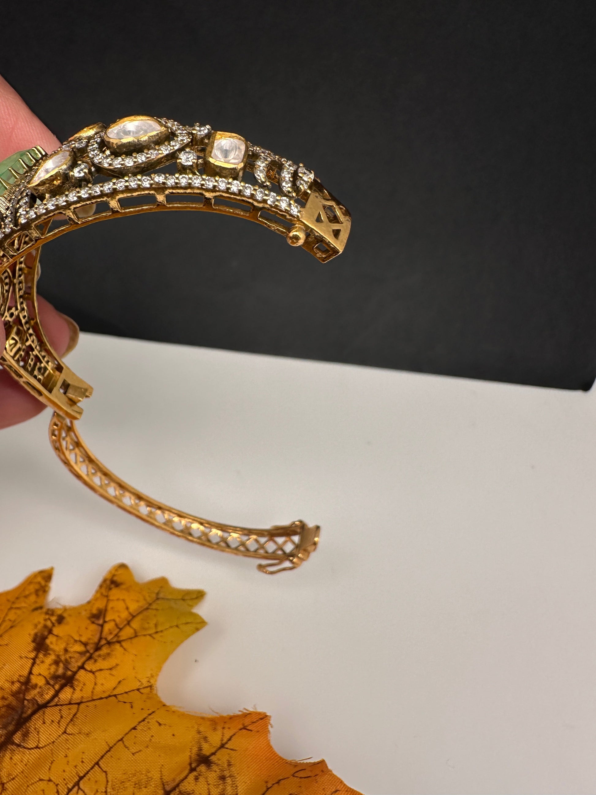 92.5 Silver Green Moissanite Bracelet with Matching EarringsColor : GoldenSize : Silver Weight : 24.6 gramsStones : CZ Moissanite Ruby Stone Pearls Emerald Beads