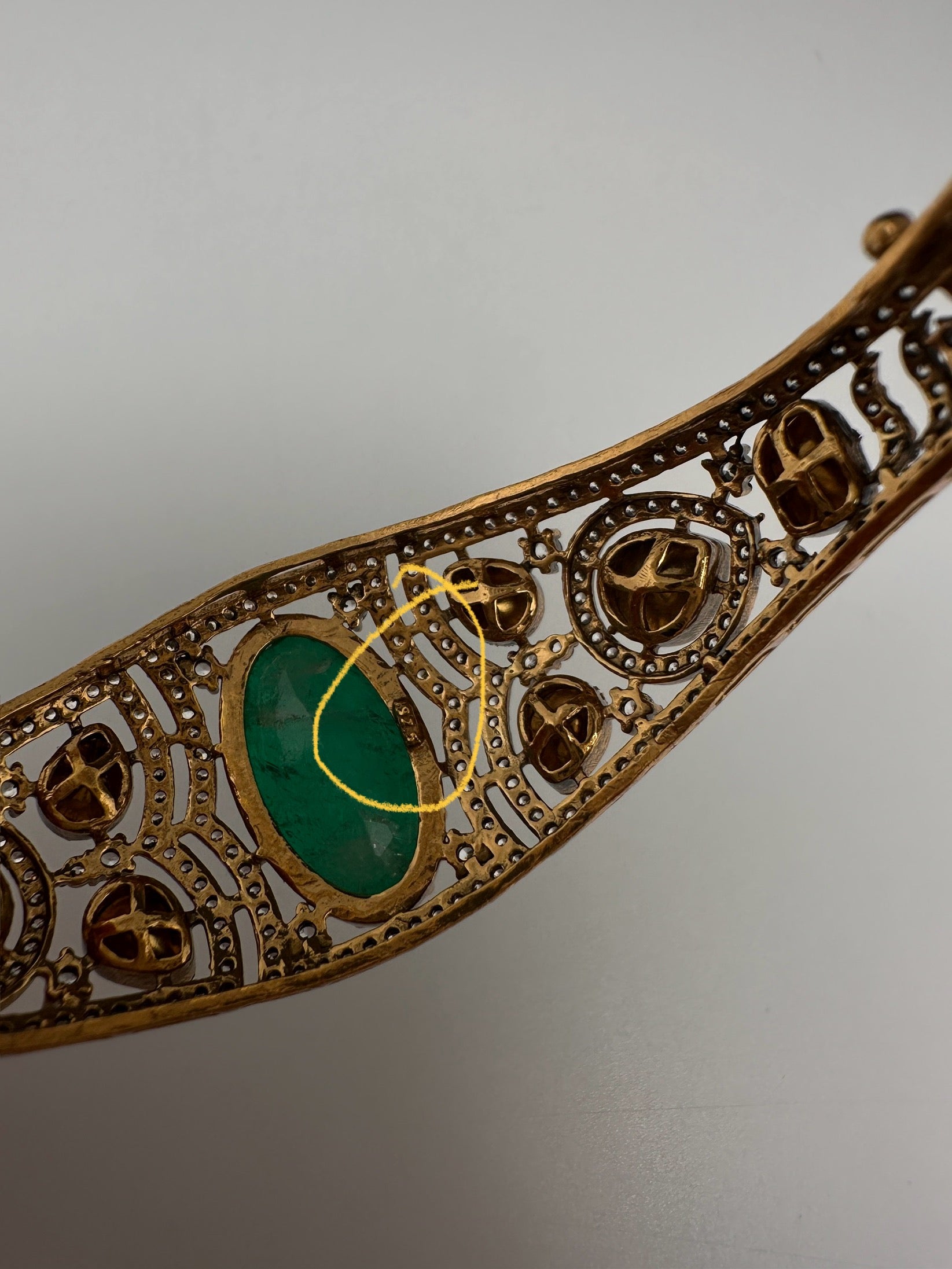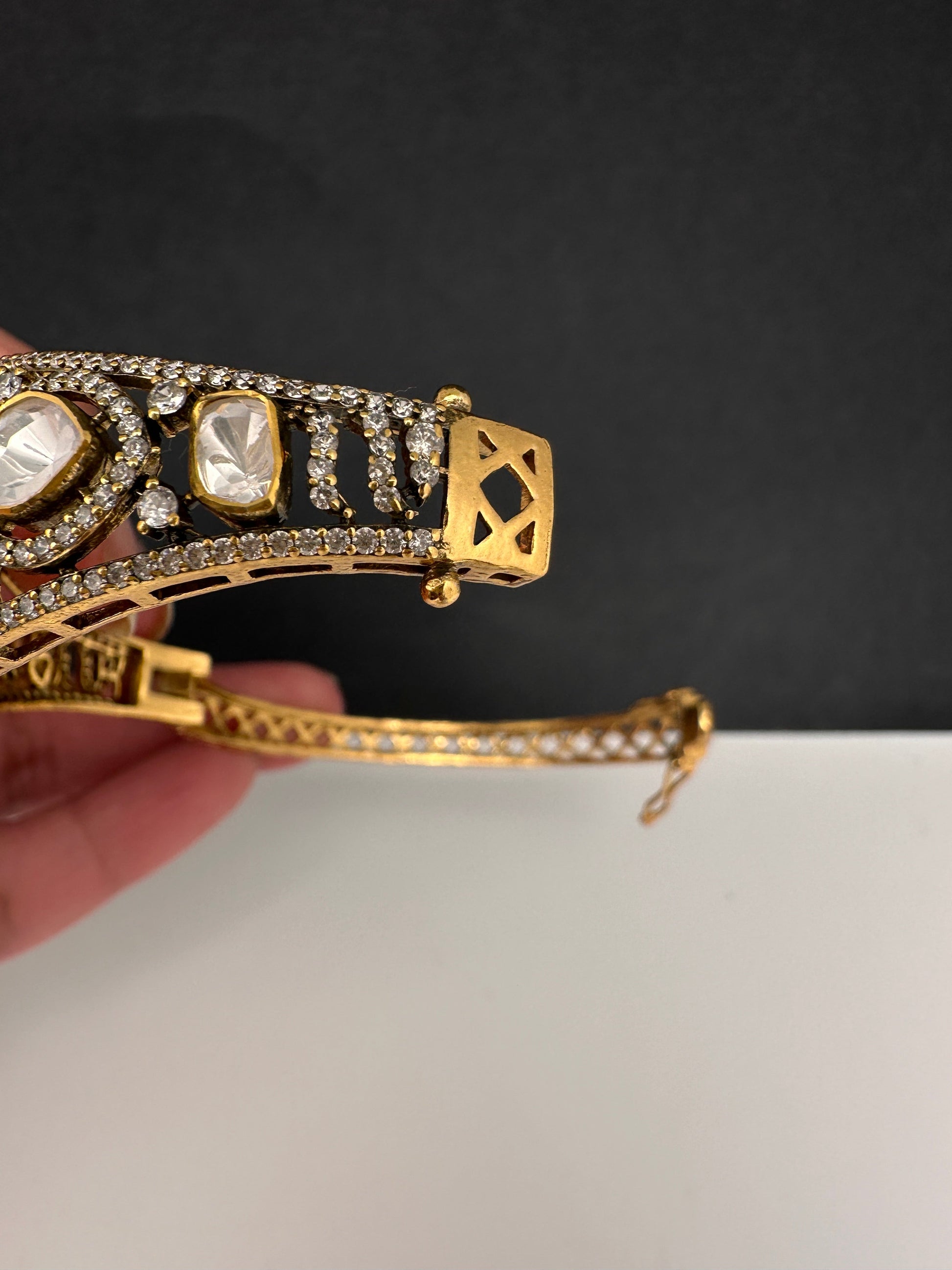 92.5 Silver Green Moissanite Bracelet with Matching EarringsColor : GoldenSize : Silver Weight : 24.8 gramsStones : CZ Moissanite Ruby Stone Pearls Emerald Beads