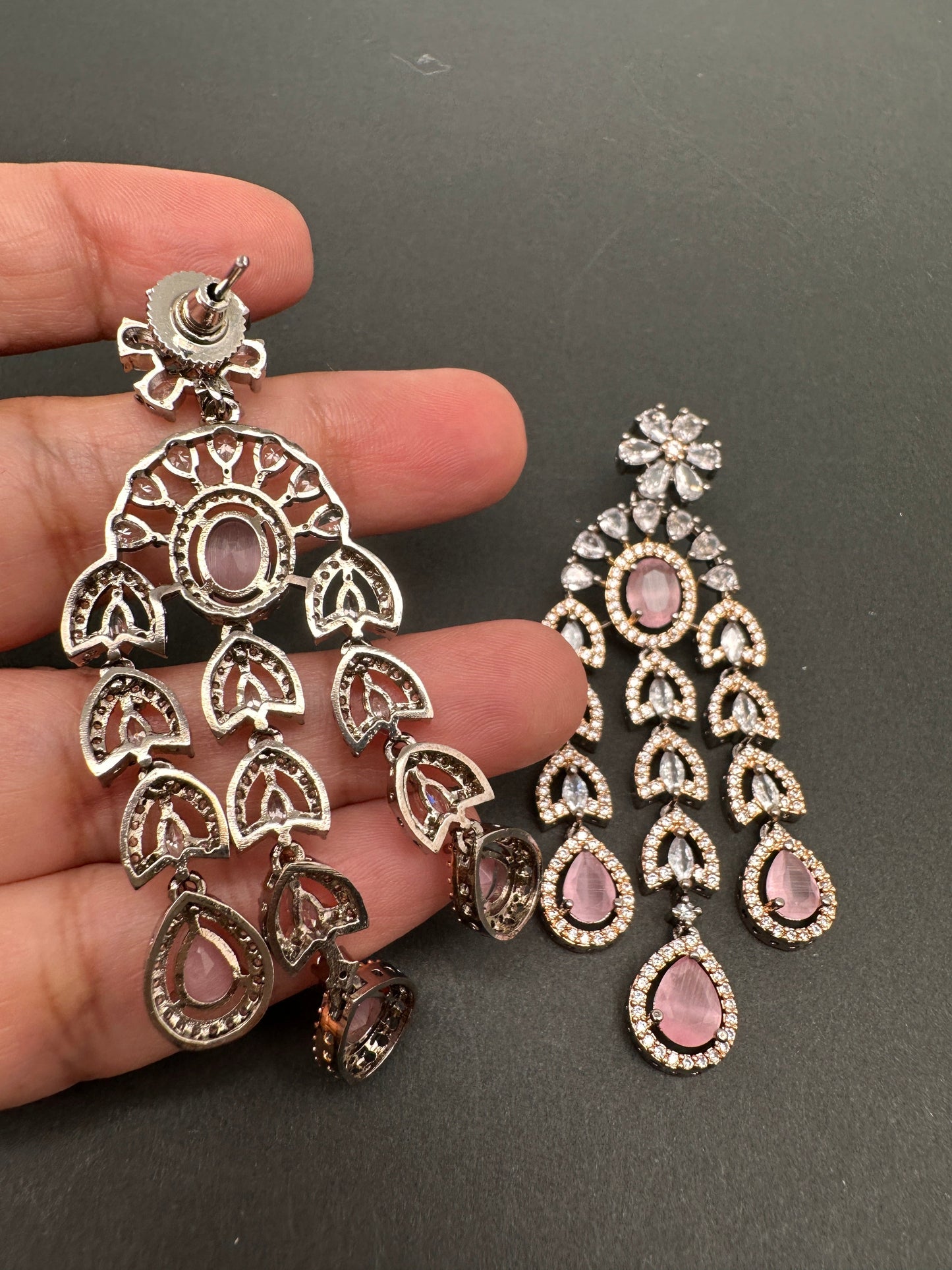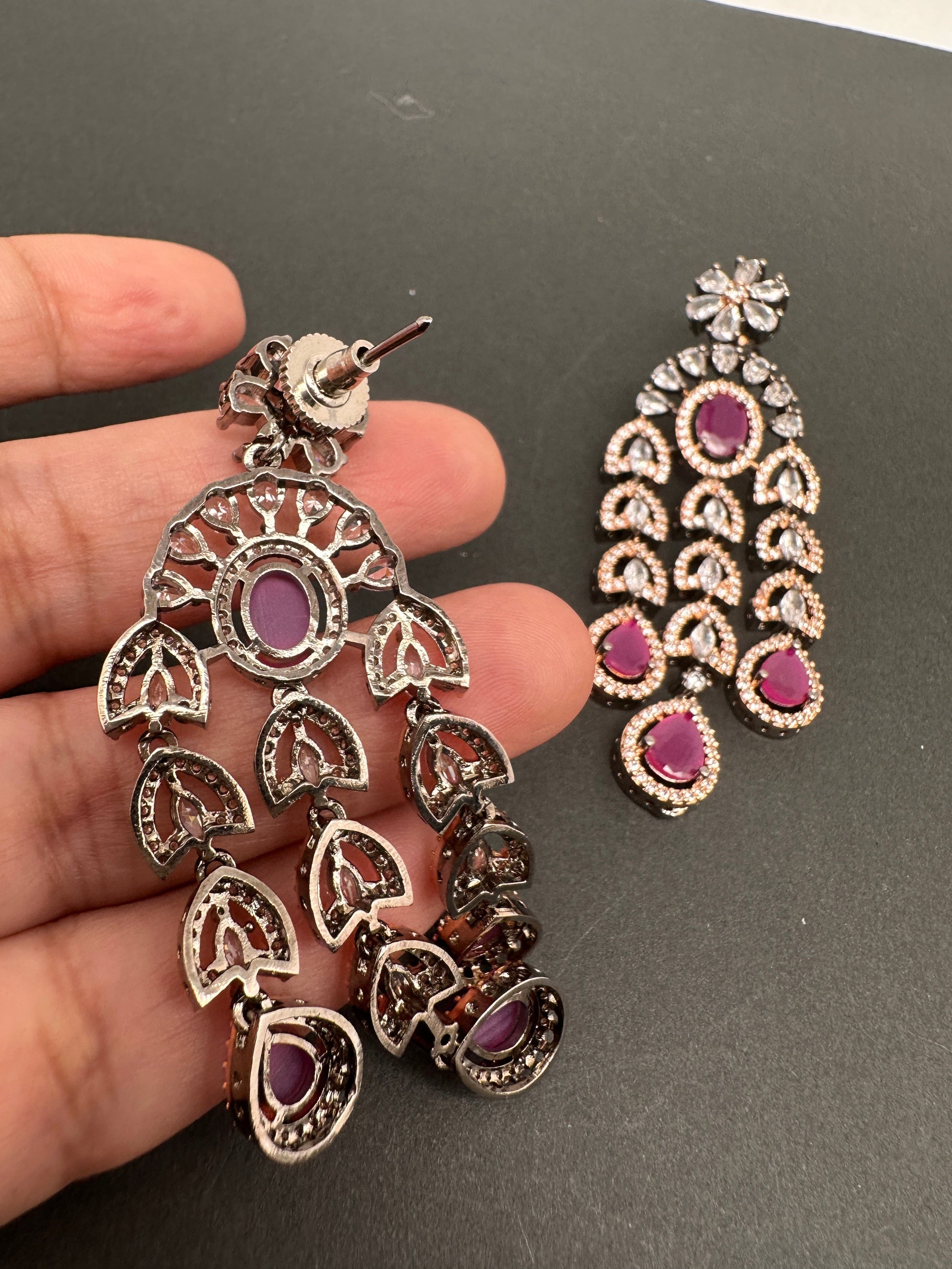AD Color Stone Cascade Design Victorian Finish EarringsColor : Victorian with ADSize : Approx 2.75 Inches; Weight : Approx 12 Grams EachStones : AD --Color-- Stone