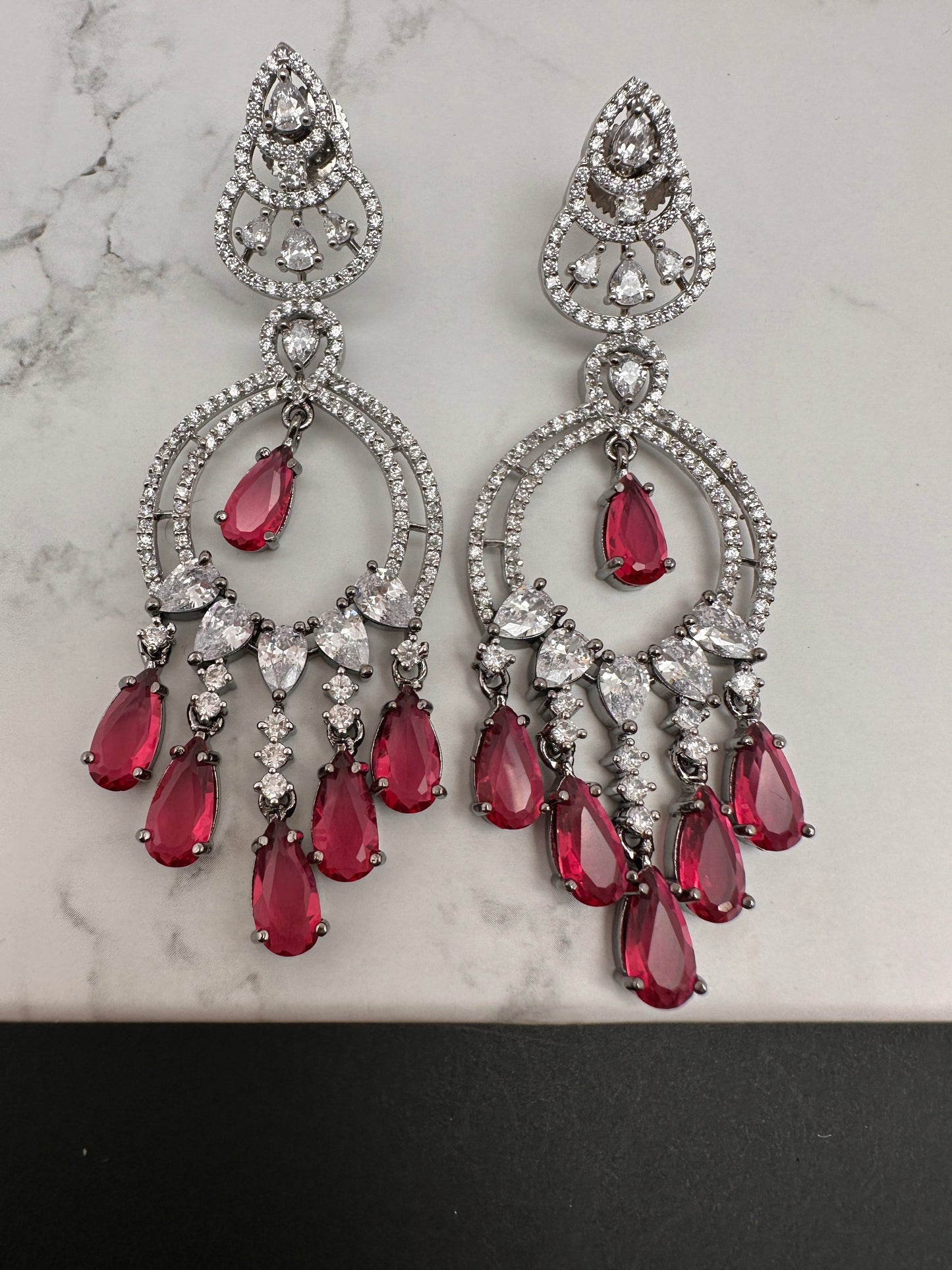 AD Color Stone Chandbali EarringsColor : Dual Tone with ADSize : Approx 2.75 Inches; Weight : Approx 8 Grams EachStones : AD --Color-- Stone