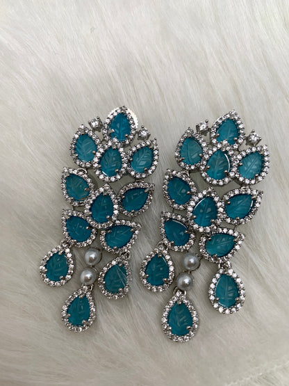 AD Color Stone Floral Design Silver Finish EarringsColor : Silver with ADSize : Approx 2 Inches; Weight : Approx 11 Grams EachStones : AD --Color-- Stone