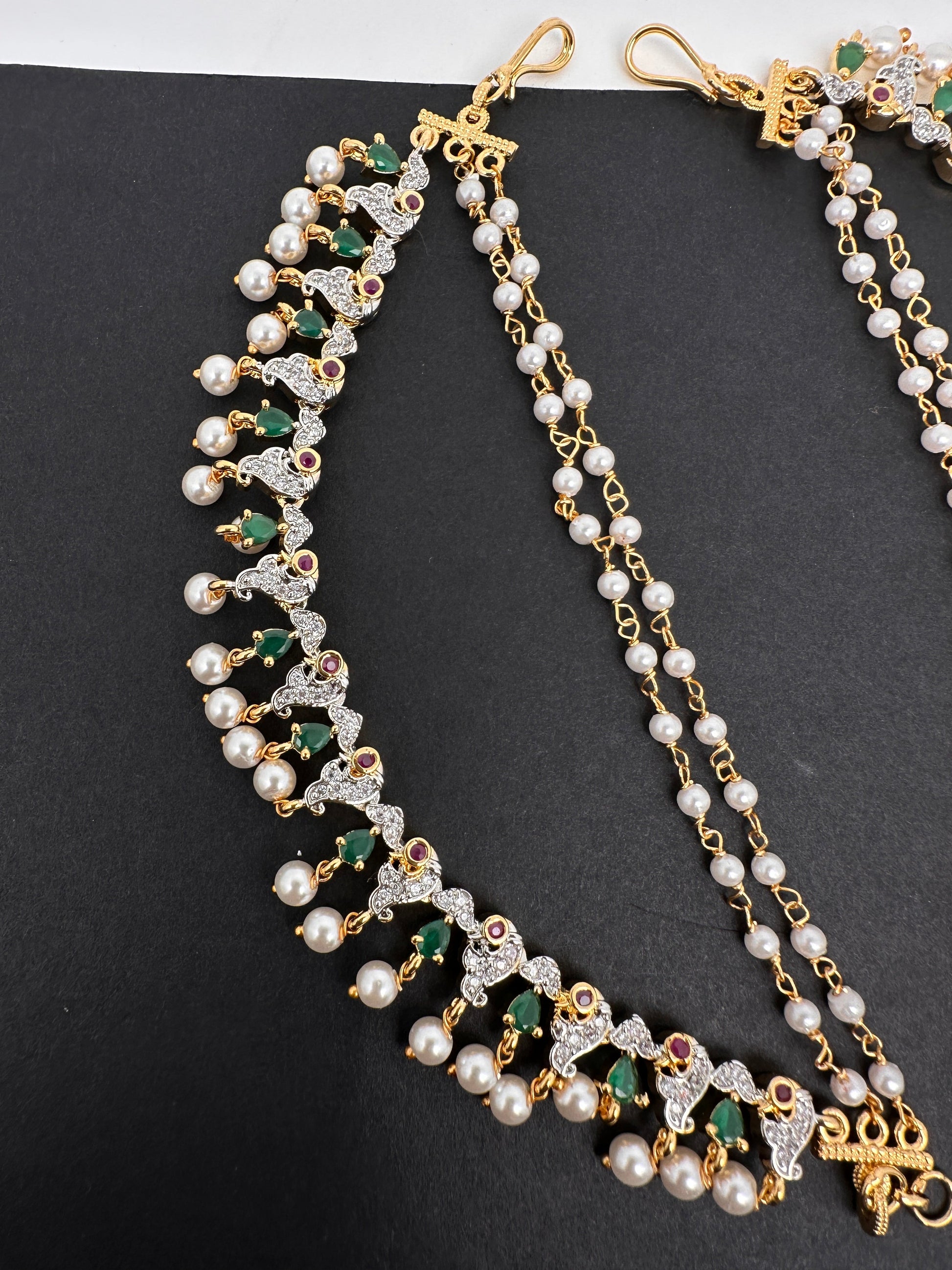 American Diamonds Emerald Ruby EarchainColor : GoldenSize : Length : Approx 5.5 inchesStones : AD Stones CZ
