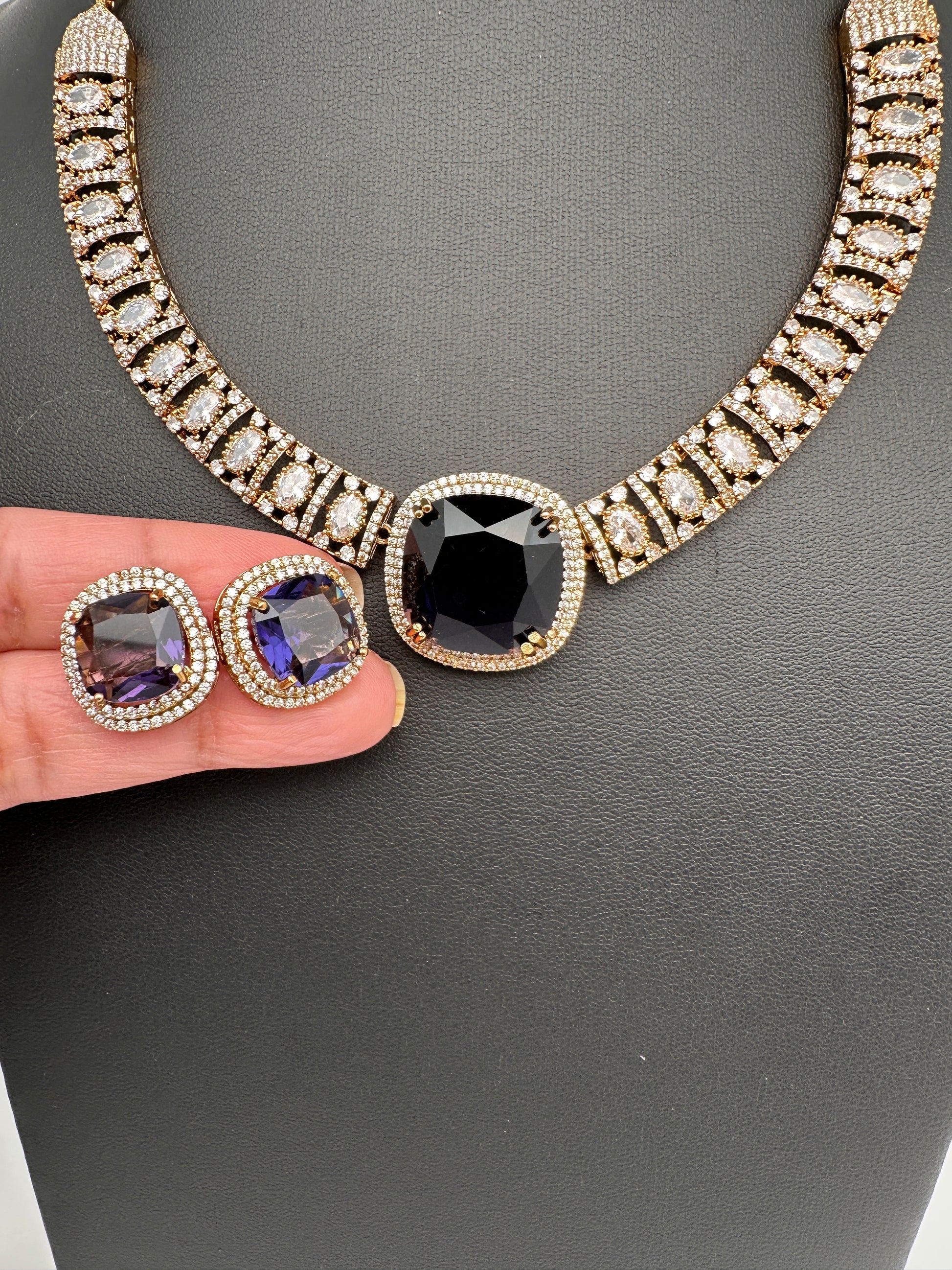 Doublet Mehendi Finish Neckline Color Stone Necklace with Matching EarringsColor : Victorian MehndiSize : Necklace Length : 16 Inches; Earrings Length : 0.5 InchesStones : AD --Color-- Stone --Color
