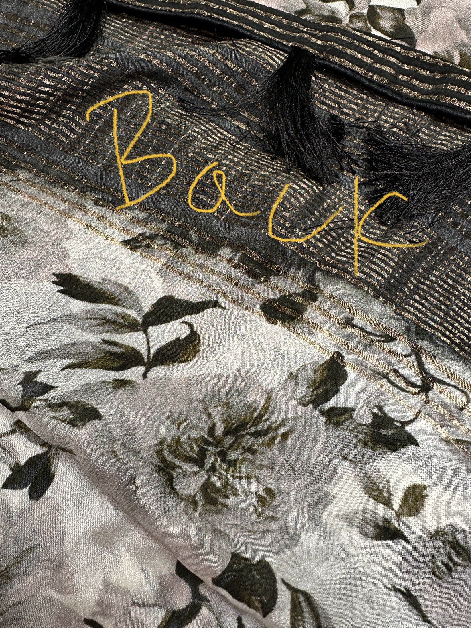 Saree Details : White Color Saree Grey Green Color Pallu Fall and Pico done