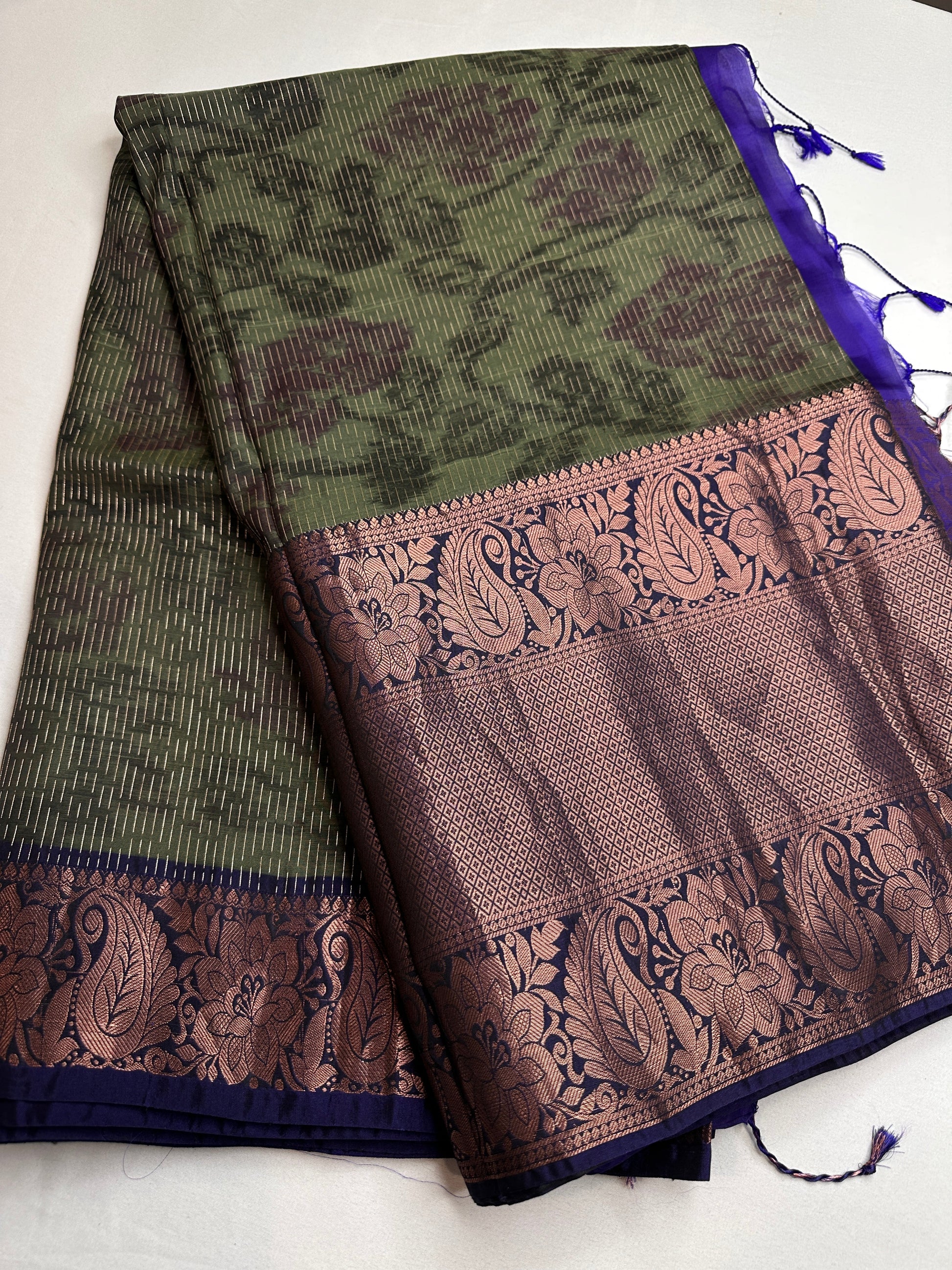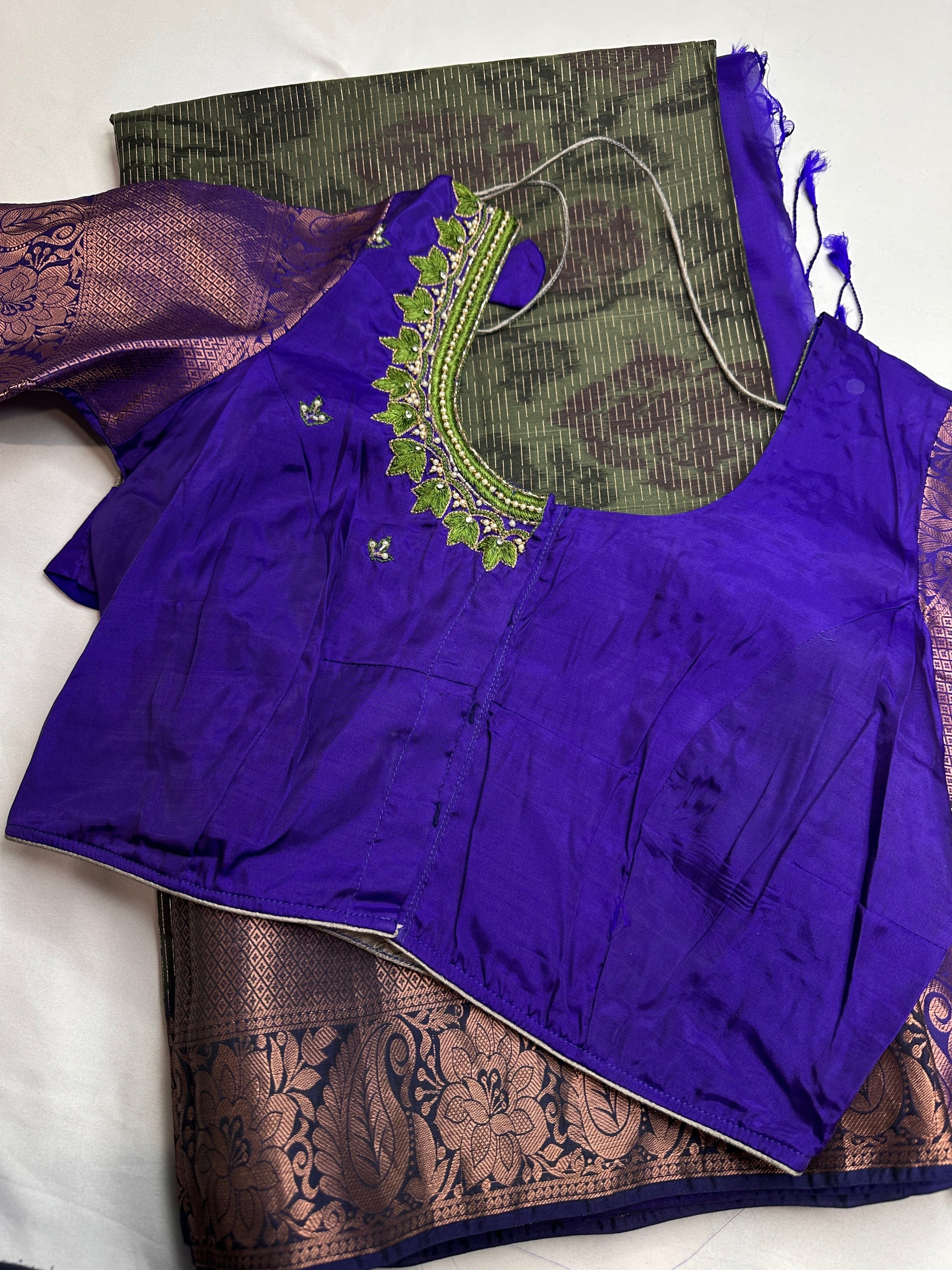 Saree Details : Green Color Saree Blue Color Pallu Fall and Pico done