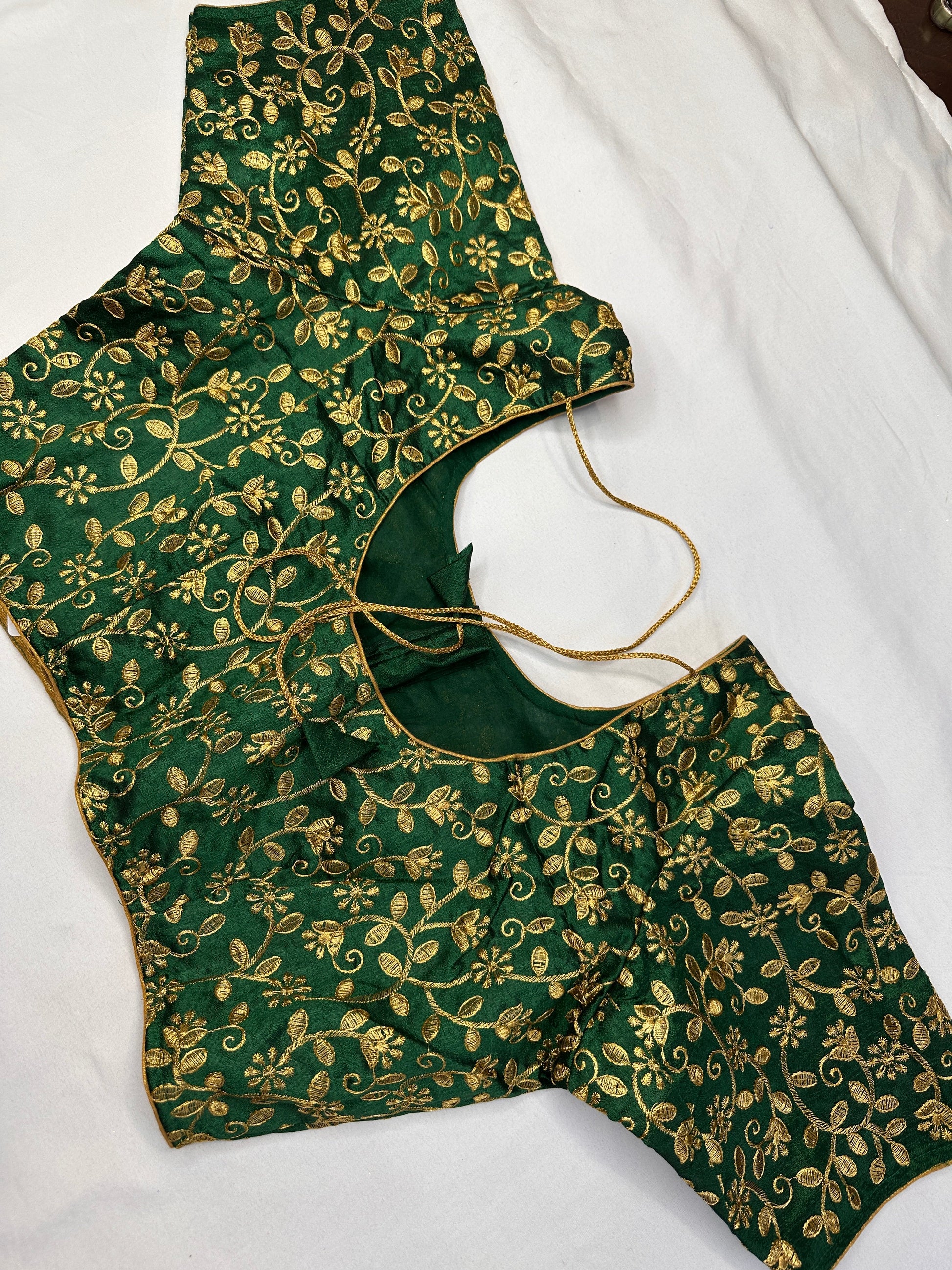 Green Embroidery Work BlouseBlouse Details : Blouse Color : Green; Blouse stitched Size 40 and can be altered from 36 to 46, Sleeves Length : 10 Inches, blouse Length 14 Inches, FrontNeck : 7 Inches and Back Neck : 9.5 Inches;