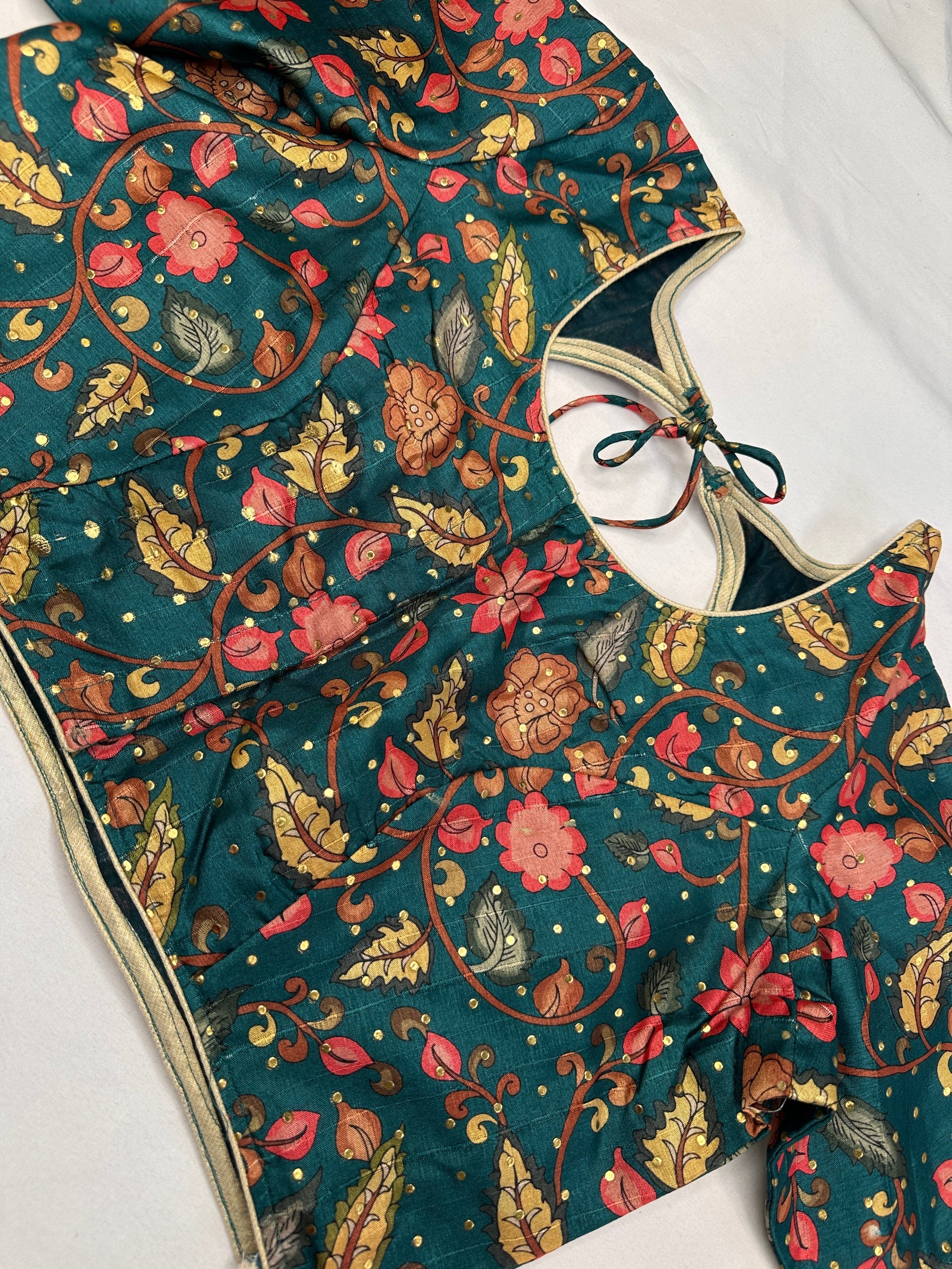 Blouse Details : Blouse Color : Green; Blouse stitched Size 42 and can be altered from 36 to 46, Sleeves Length : 10 Inches, blouse Length 15 Inches, FrontNeck : 6 Inches and Back Neck : 5 Inches;