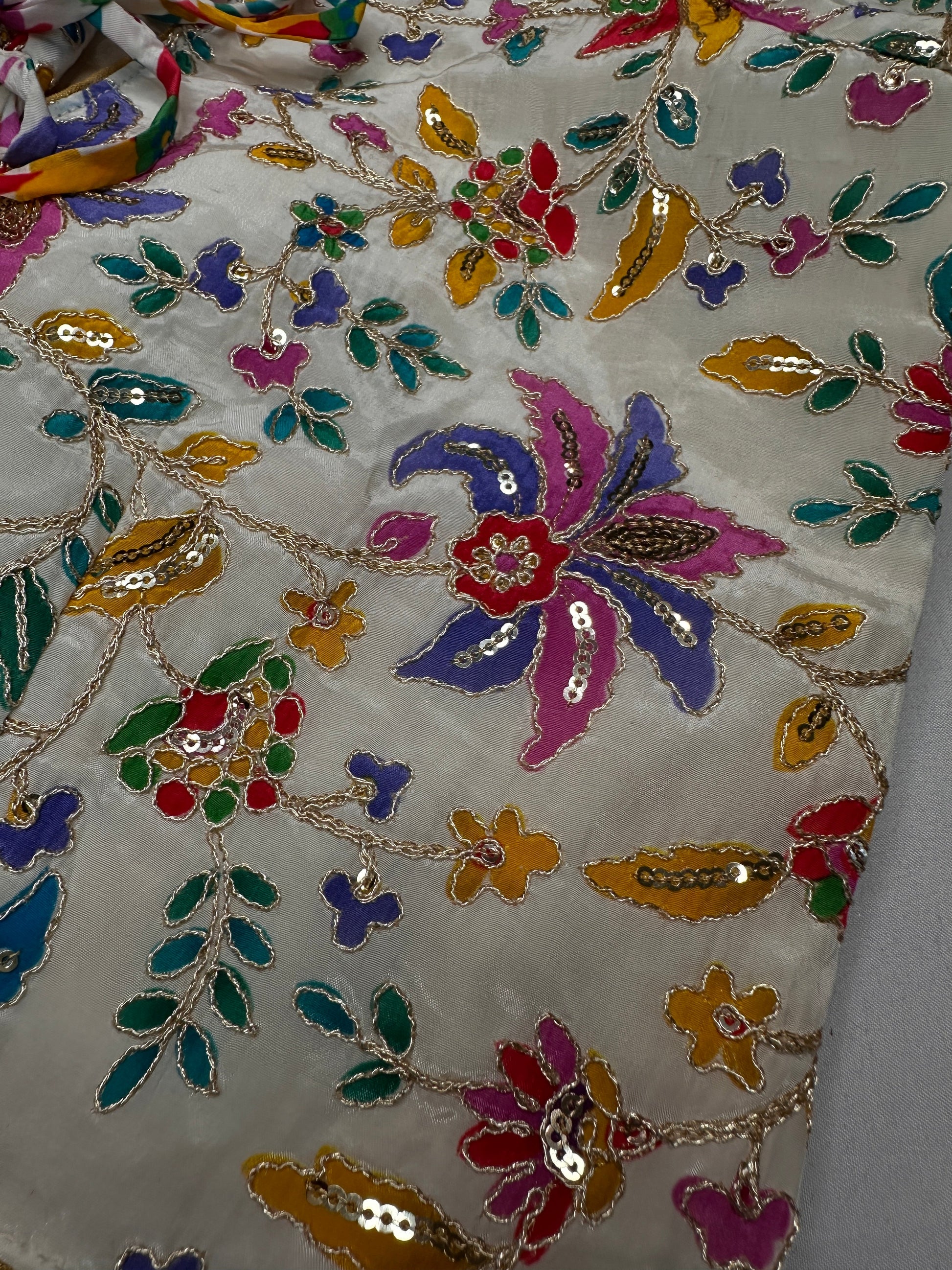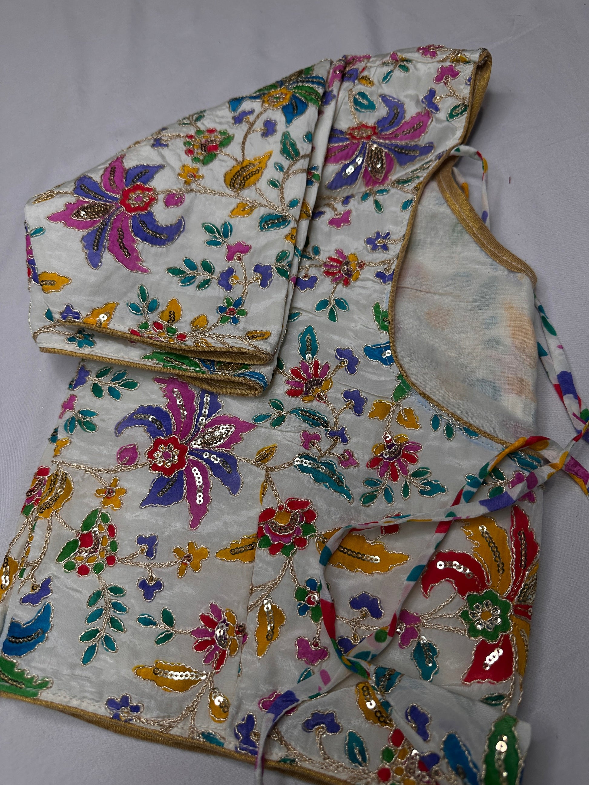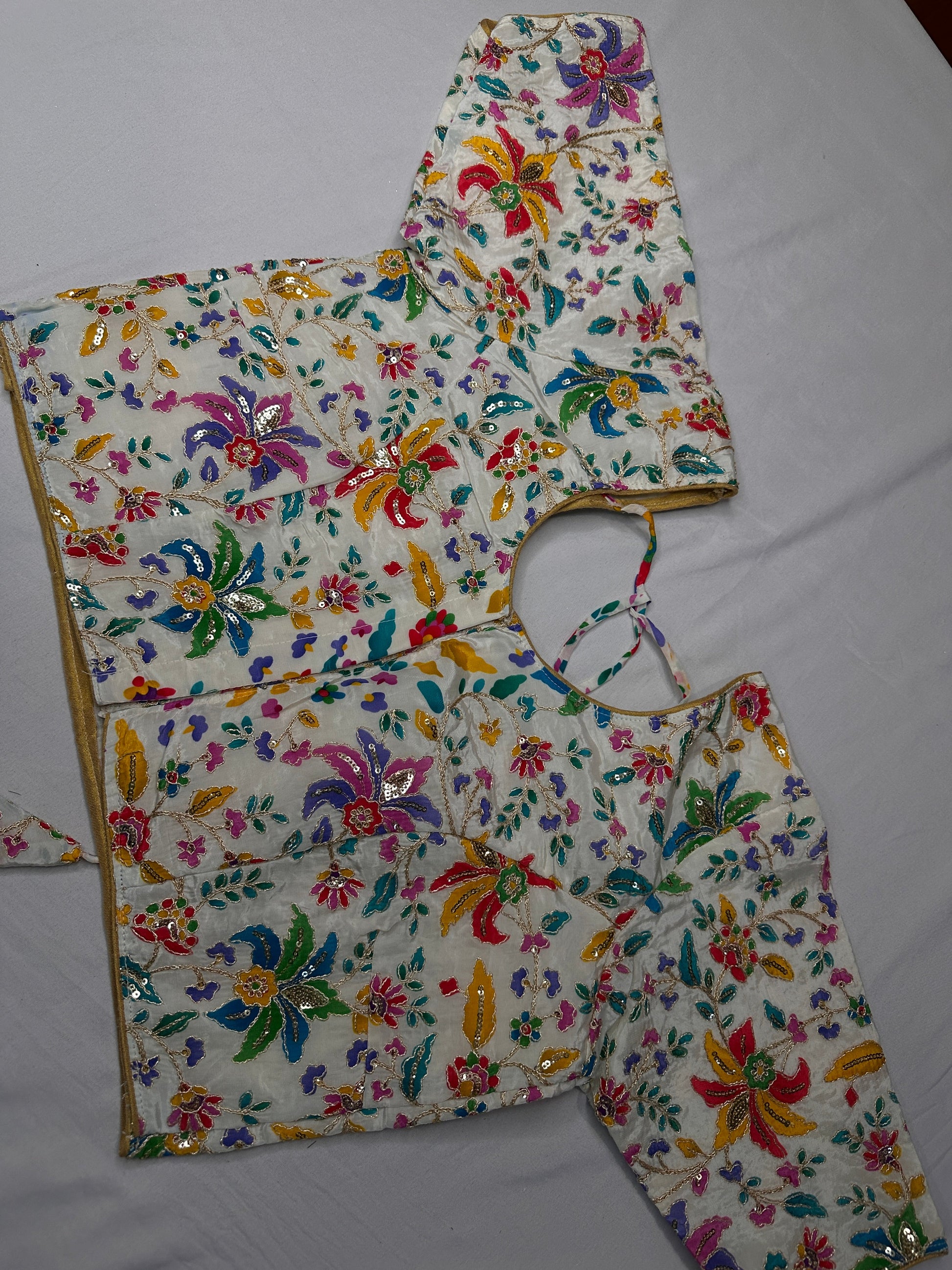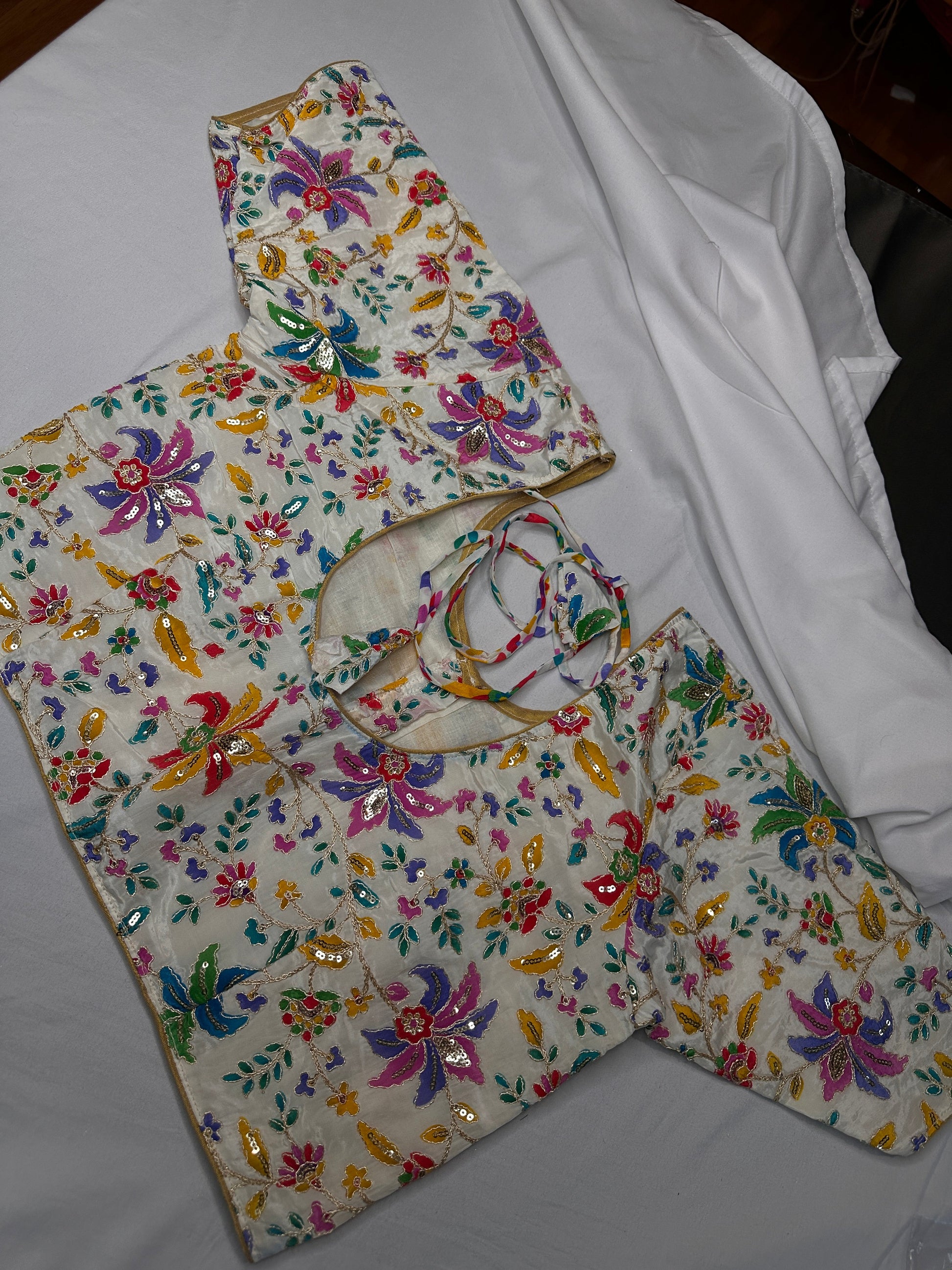 Blouse Details : Blouse Color : Purple; Blouse stitched Size 38 and can be altered from 36 to 46, Sleeves Length : 9 Inches, blouse Length 15 Inches, FrontNeck : 7 Inches and Back Neck : 10 Inches;