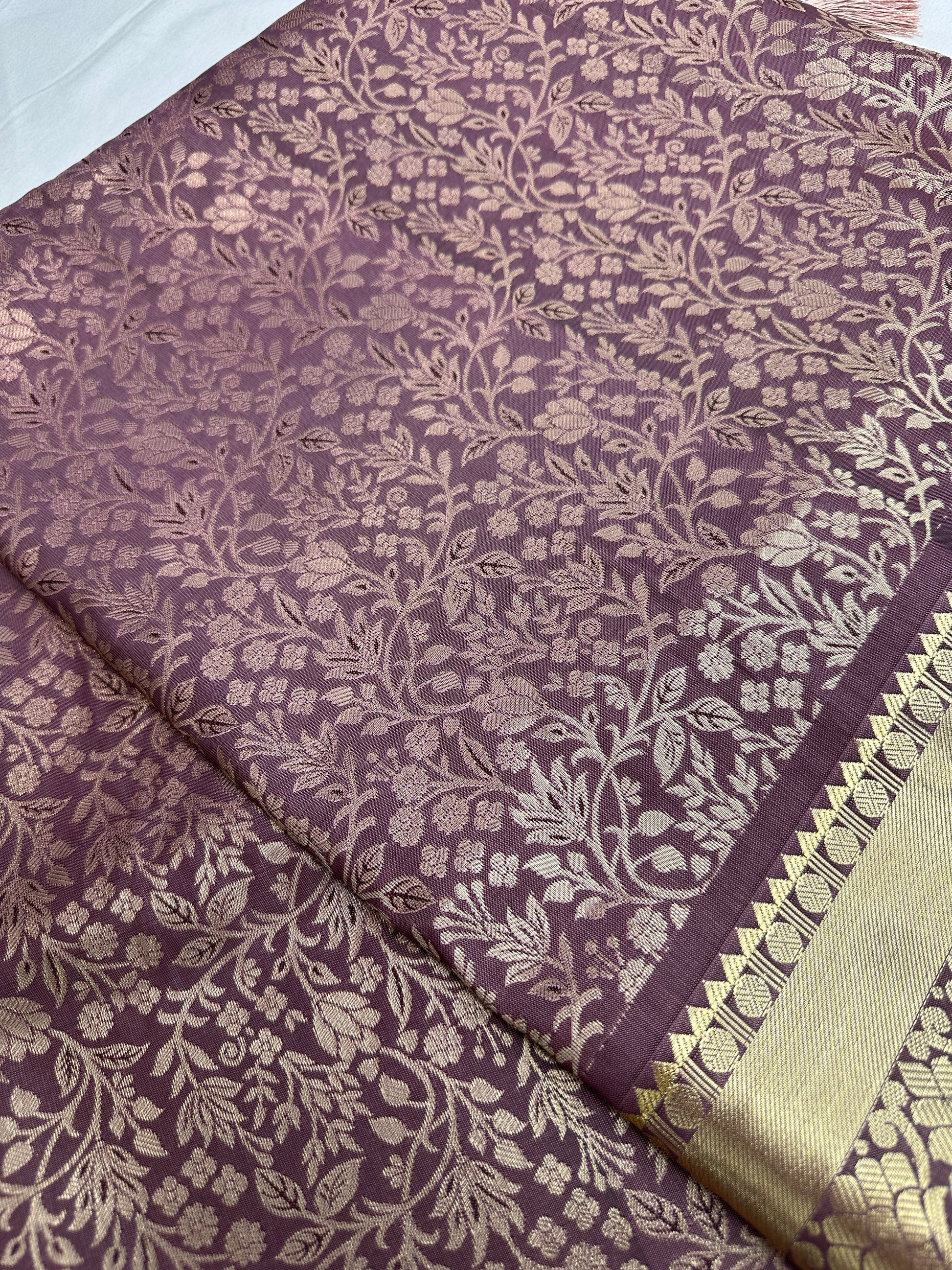 Saree Details : Mauve Color Saree Pink Pallu Fall and Pico done