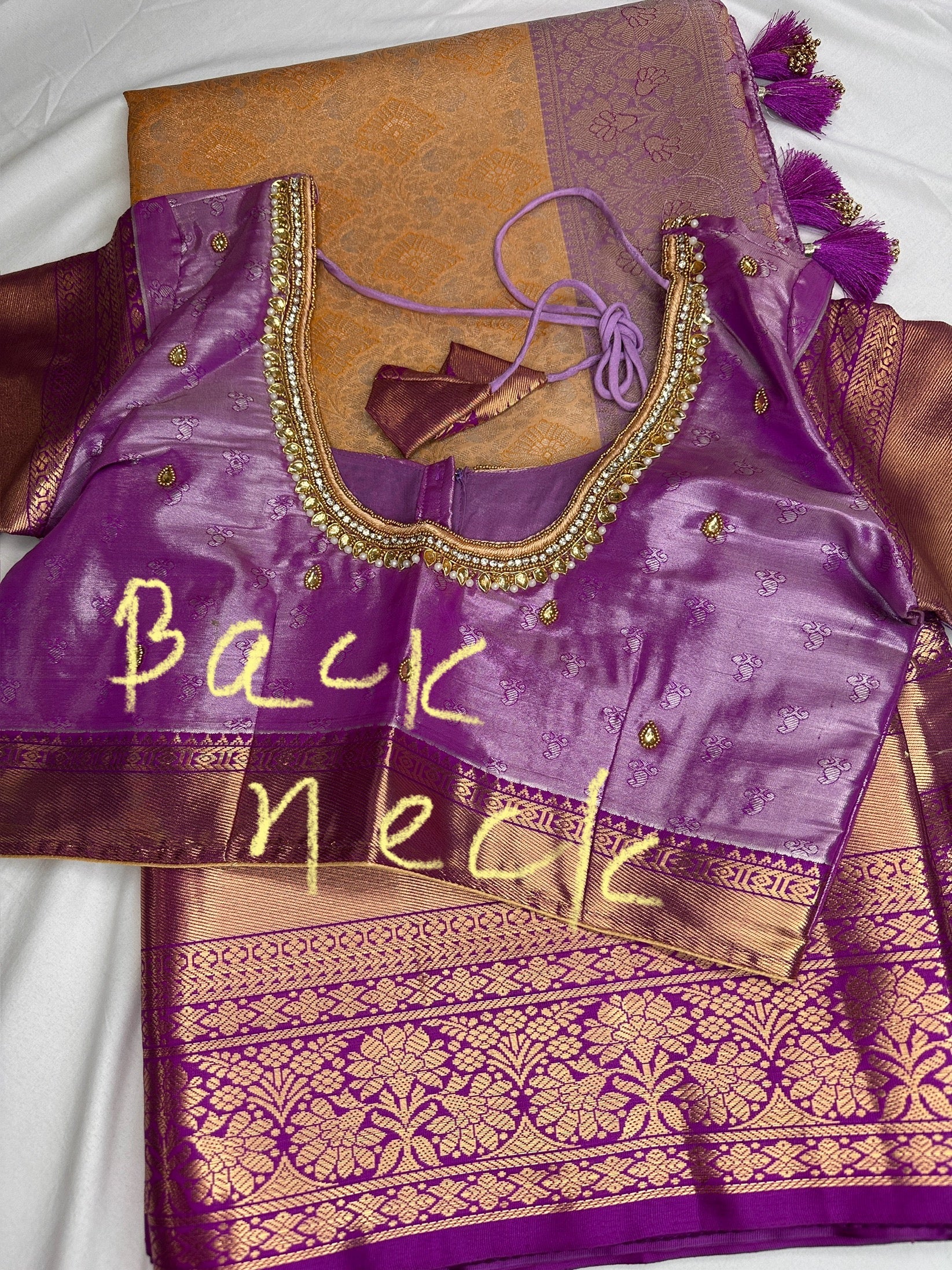 Saree Details : Golden Color Saree Purple Pallu Fall and Pico done