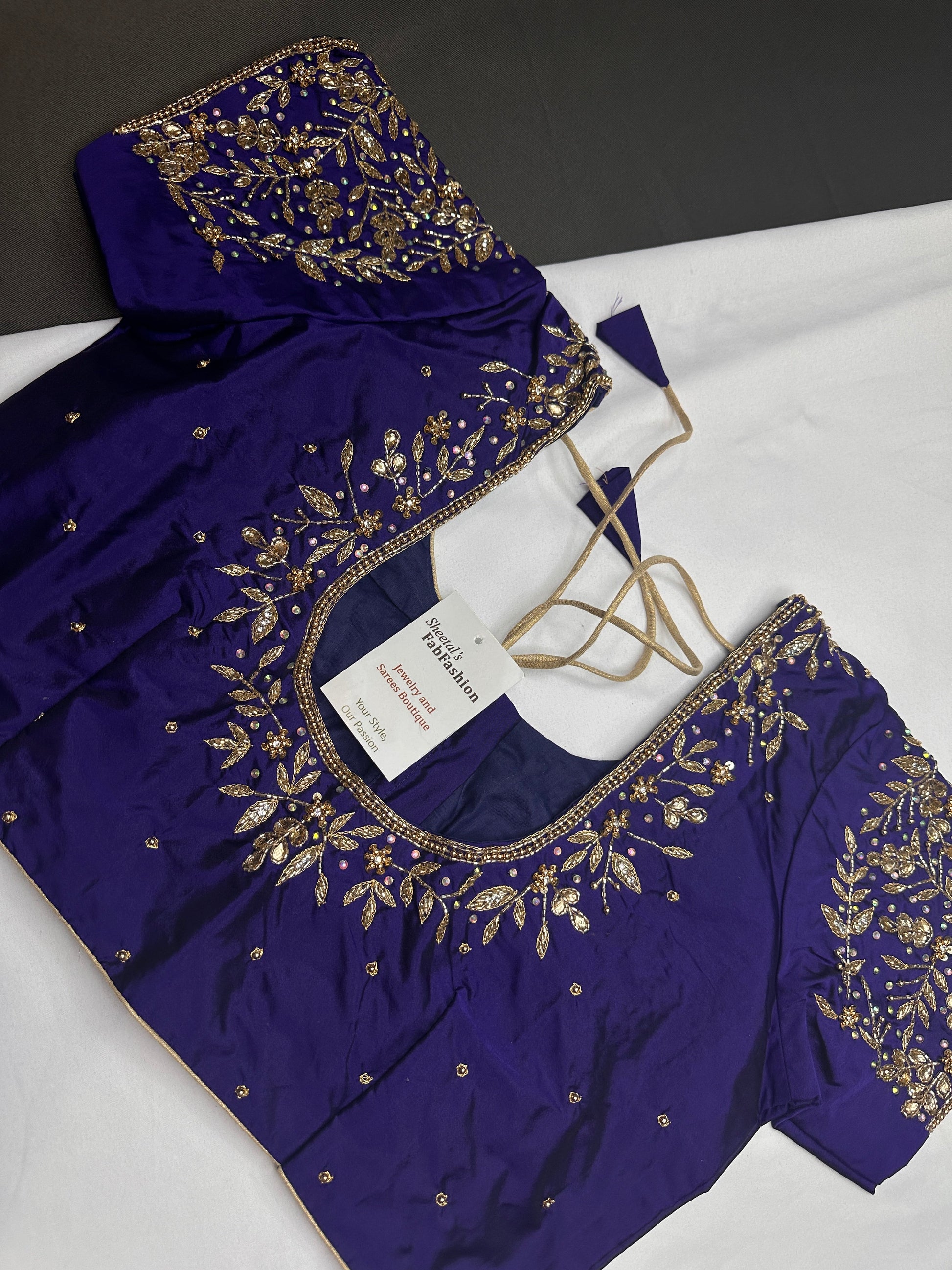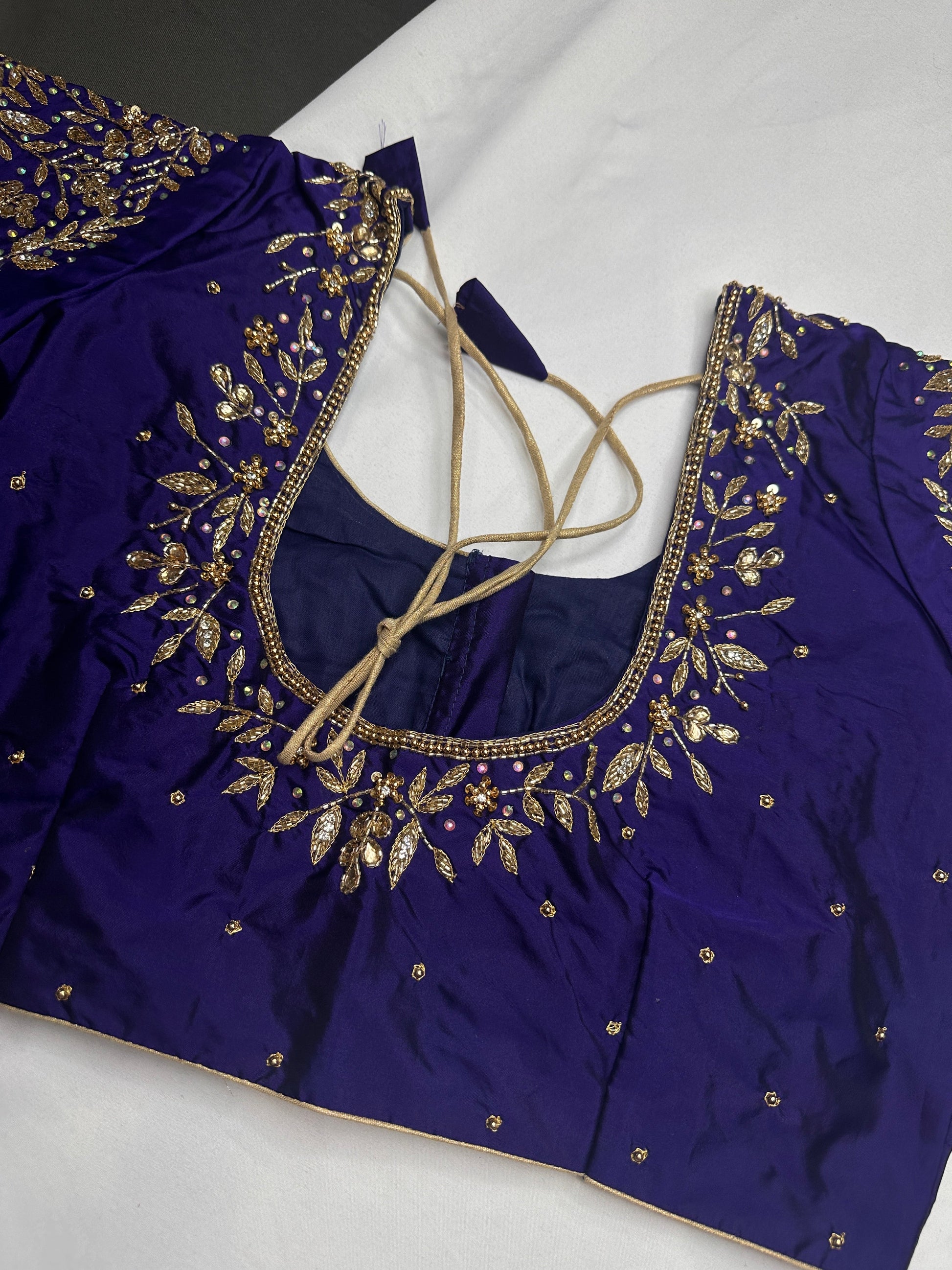 Blouse Details : Blouse Color : Blue; Blouse stitched Size 38 and can be altered from 36 to 46, Sleeves Length : 6 Inches, blouse Length 14.5 Inches, FrontNeck : 7 Inches and Back Neck : 10 Inches;