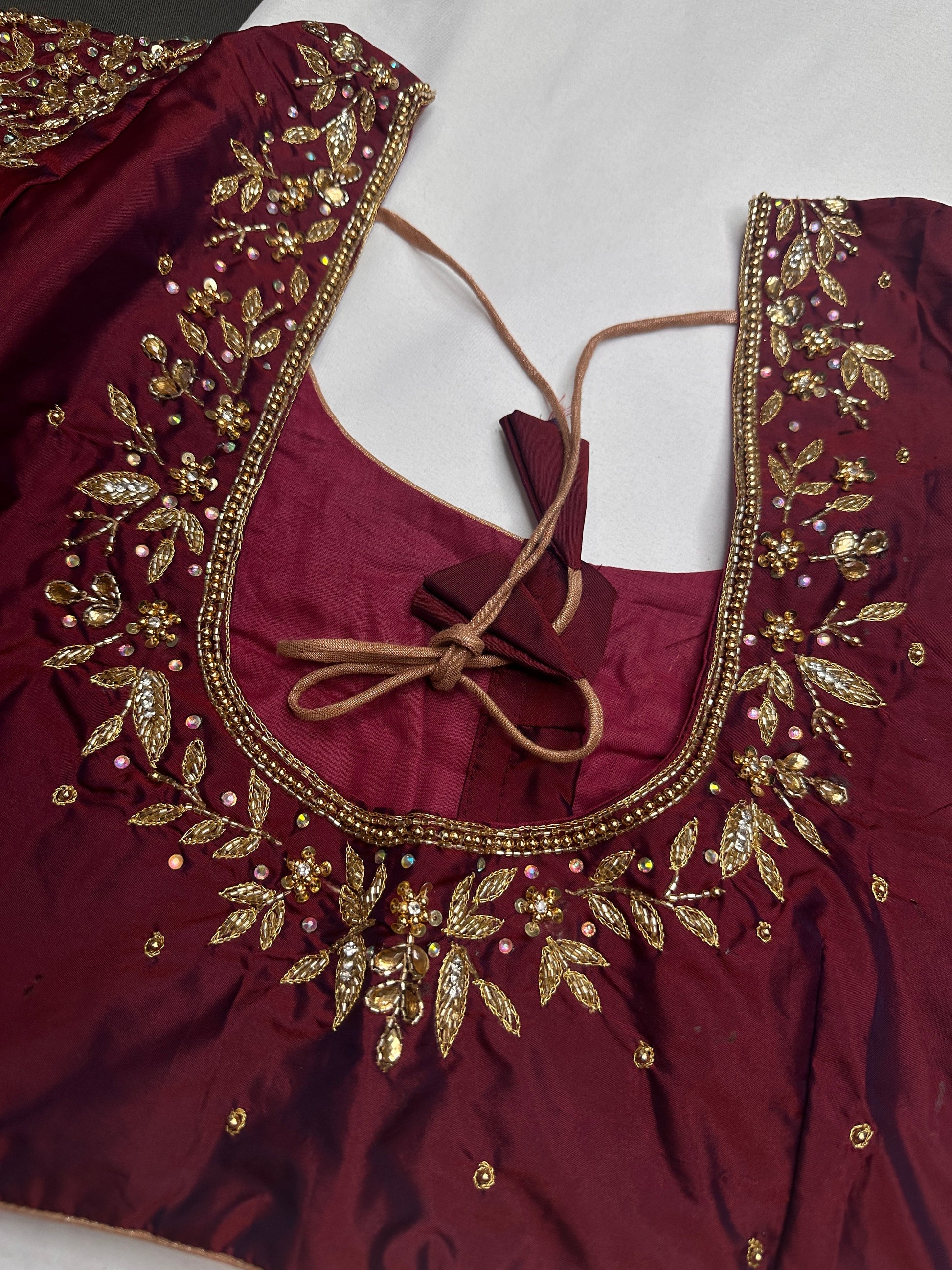 Blouse Details : Blouse Color : Red; Blouse stitched Size 38 and can be altered from 36 to 46, Sleeves Length : 6 Inches, blouse Length 14.5 Inches, FrontNeck : 7 Inches and Back Neck : 10 Inches;