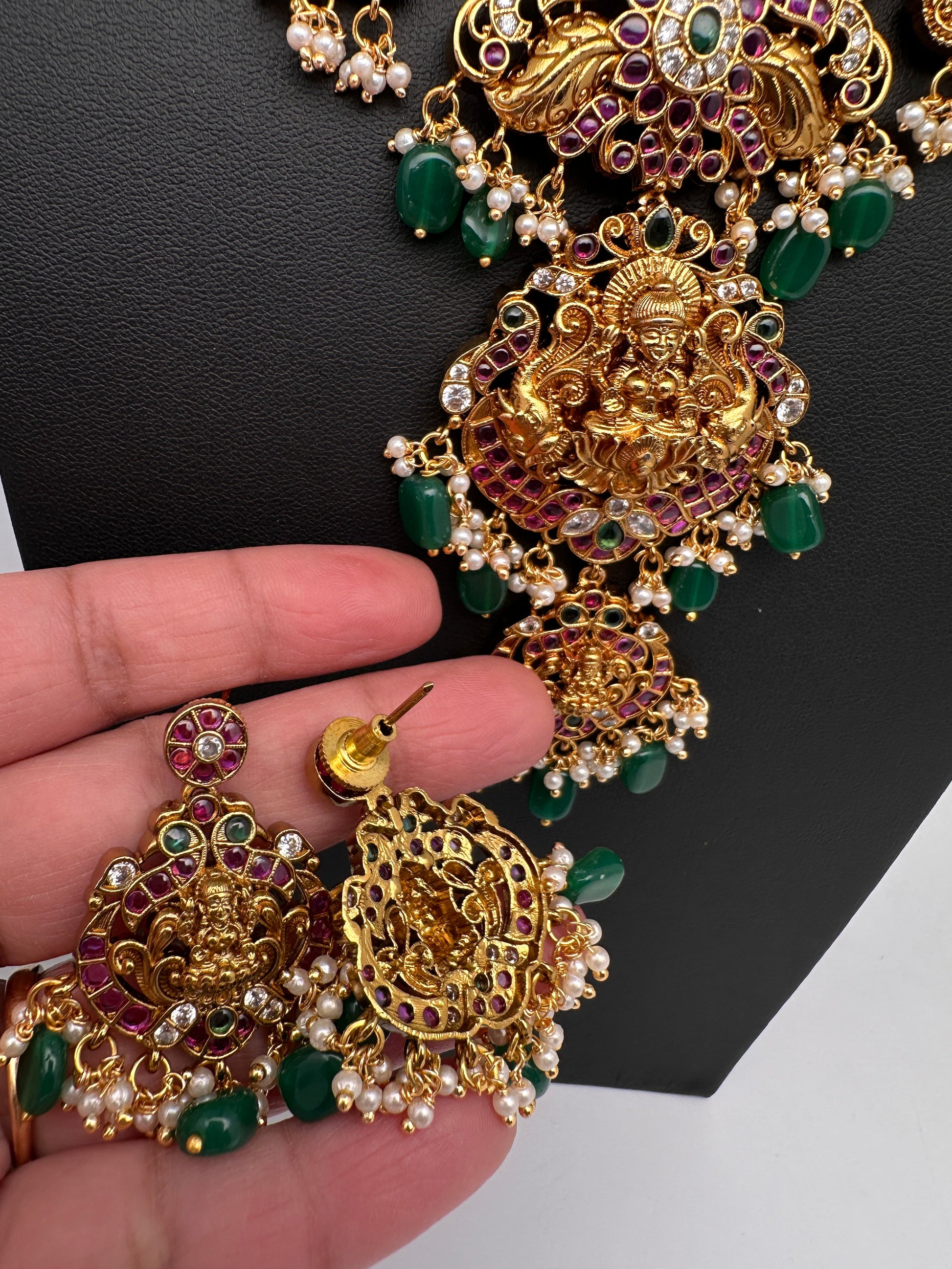 Kempu Matte Goddess lakshmi Jalebi Short Necklace with Matching Earrings