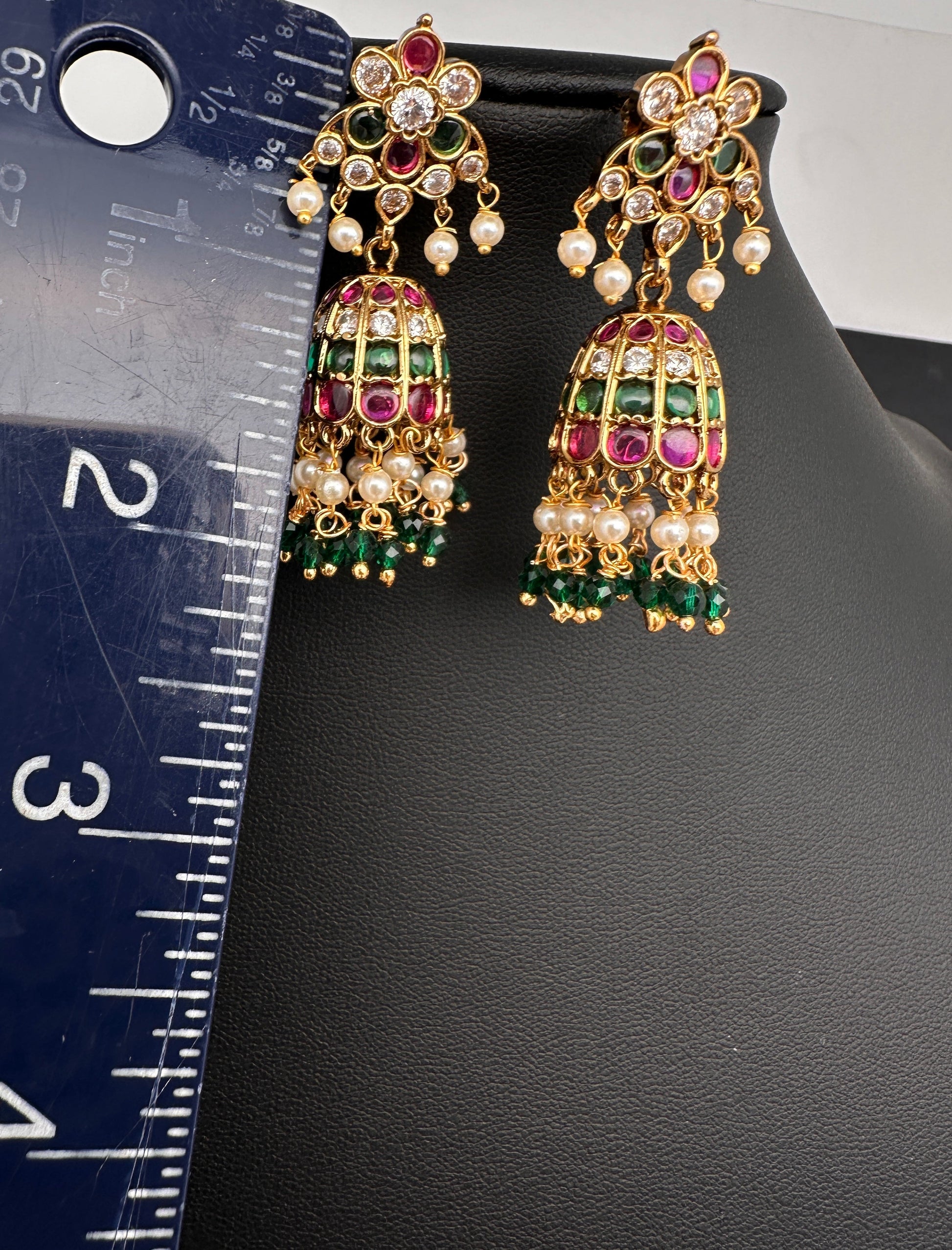 Matte CZ Kemp Jhumkis Earrings pushback earrings