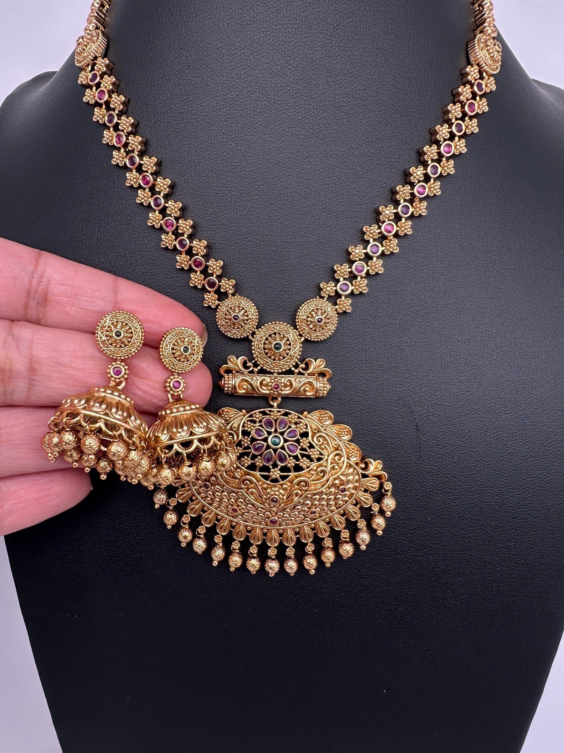 Matte Kemp Short Necklace with Jhumka with Matching Jhumkas