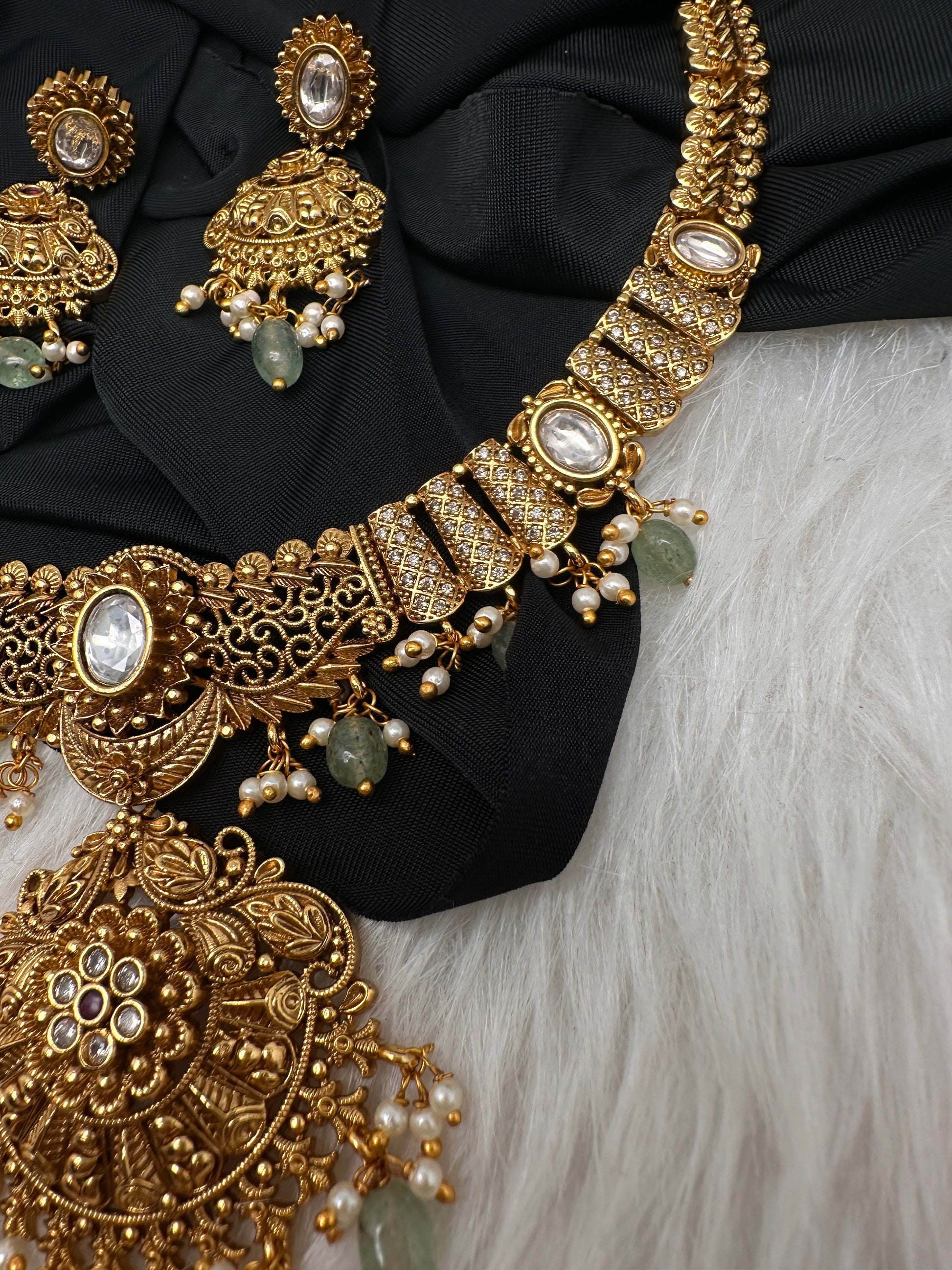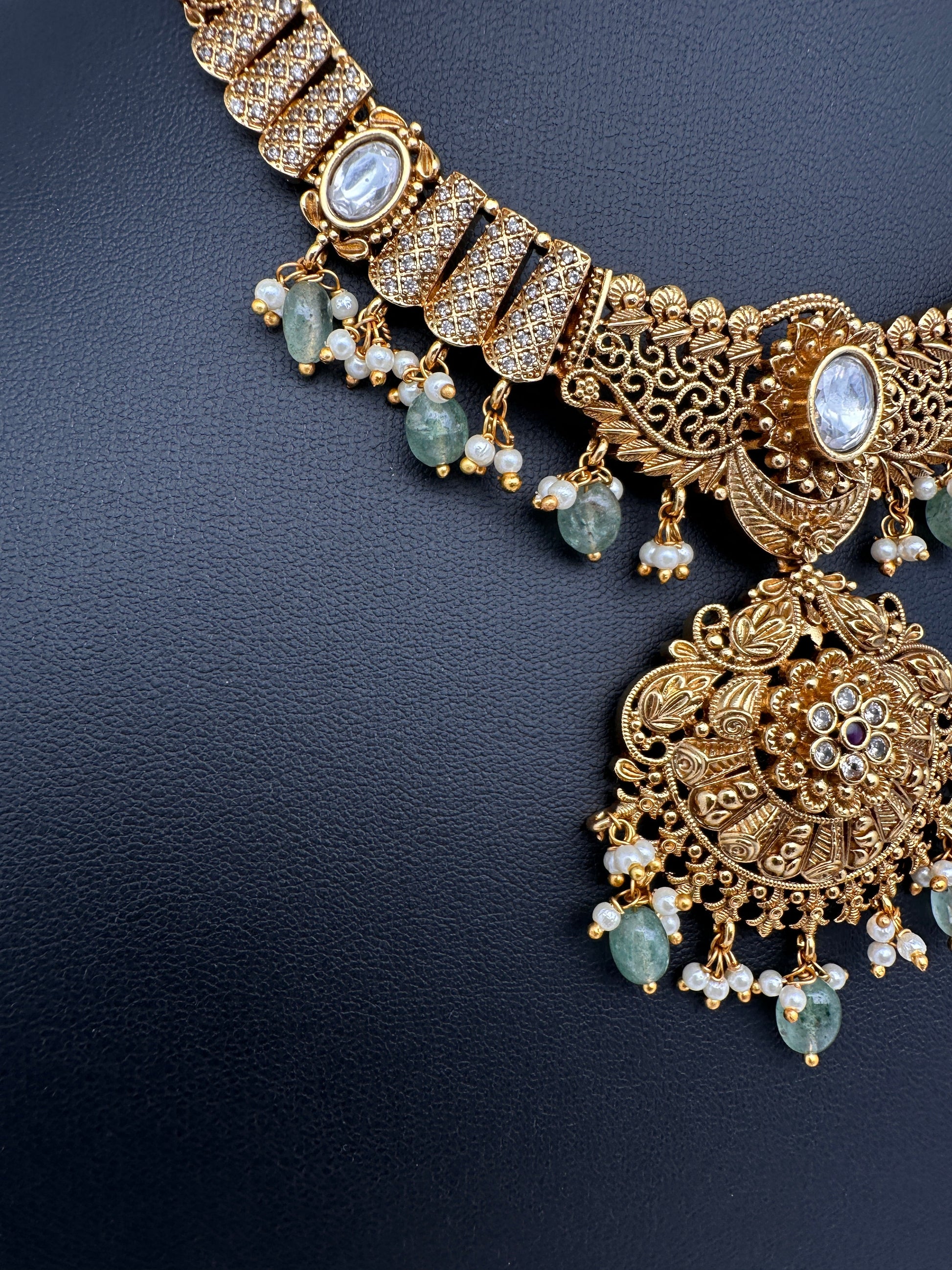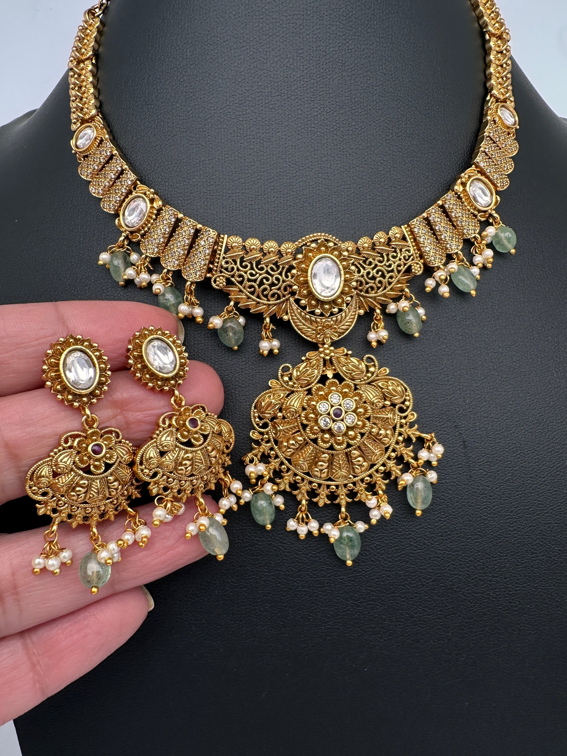 Moissanite CZ Matte Short Necklace with Matching Jhumkas
