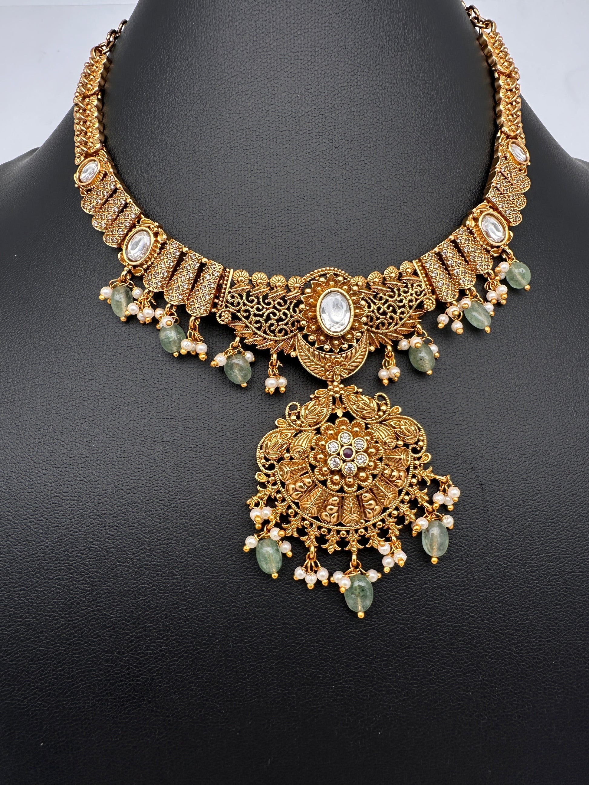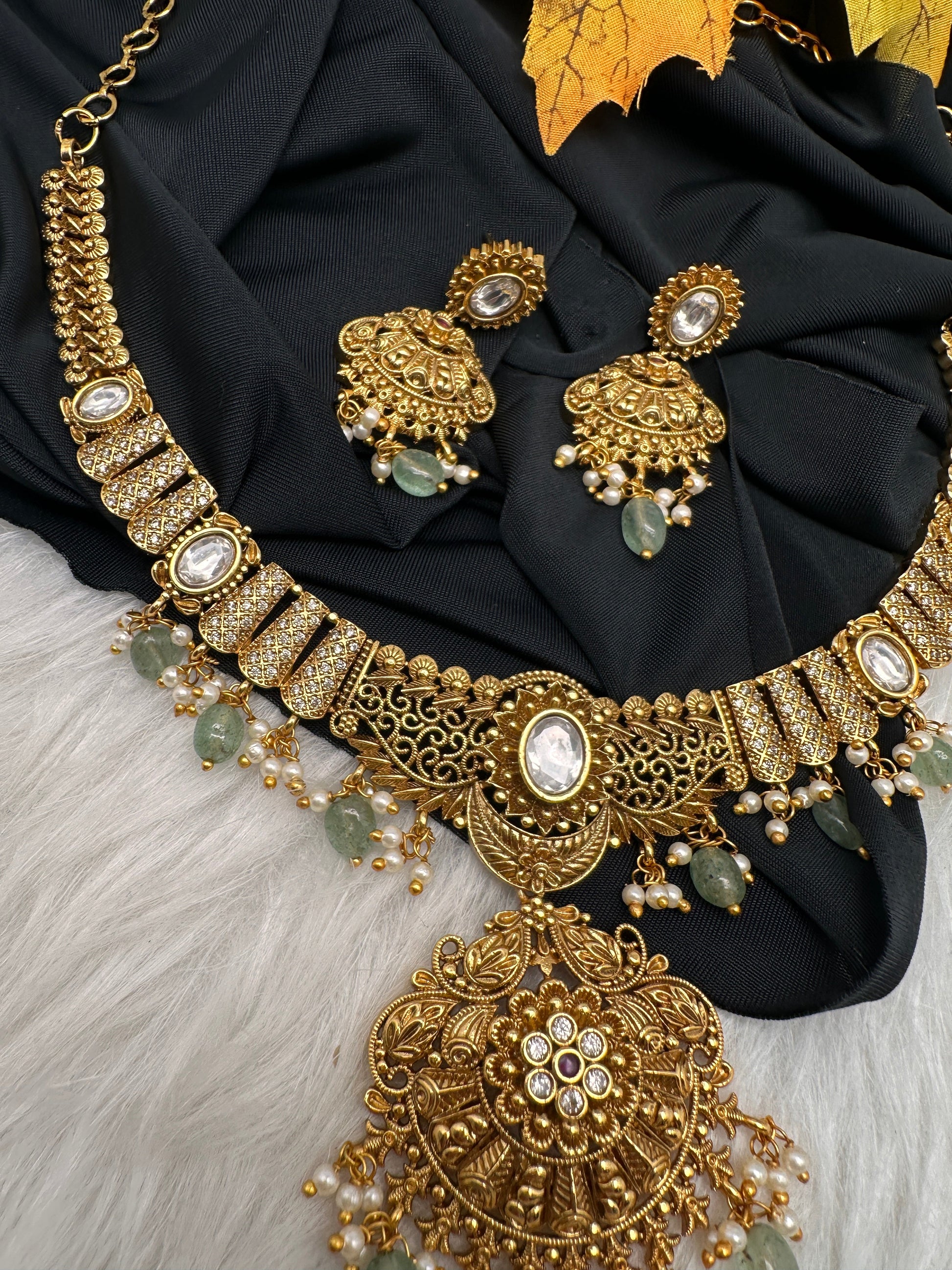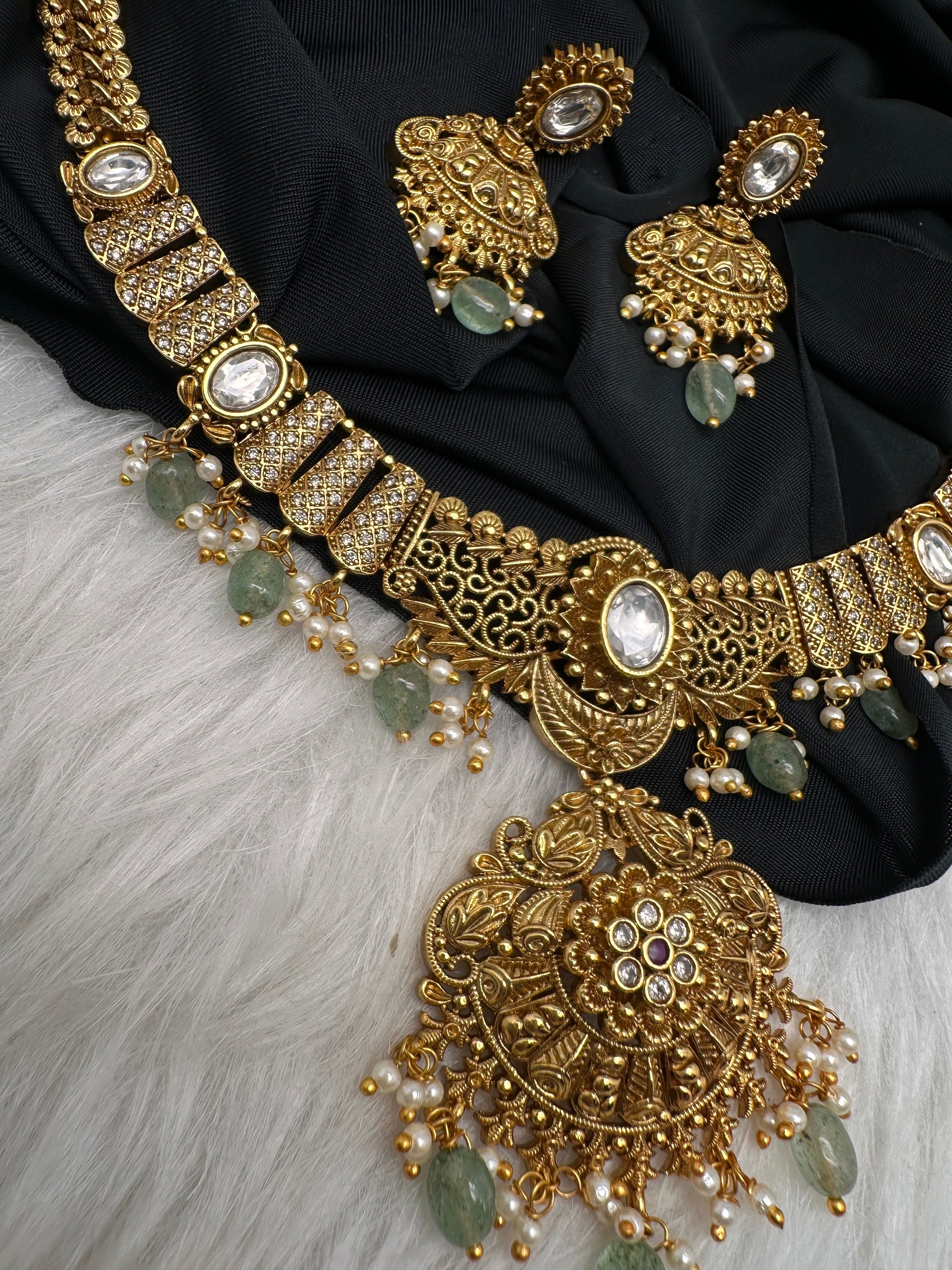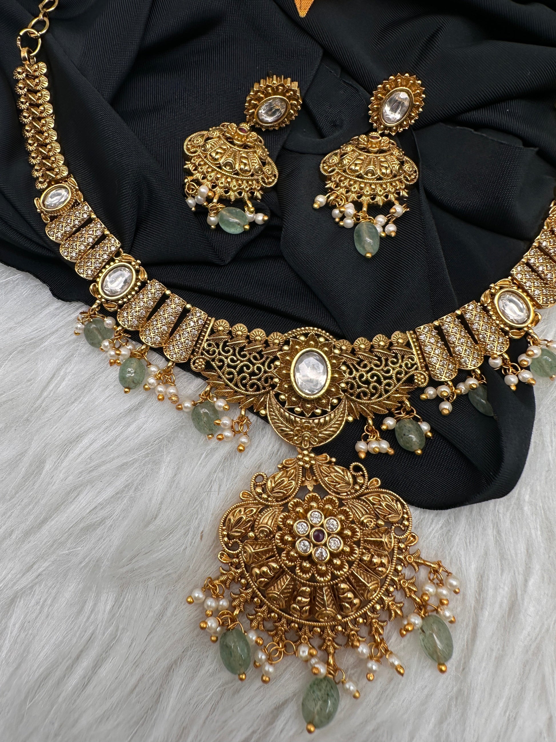 Moissanite CZ Matte Short Necklace with Matching Jhumkas