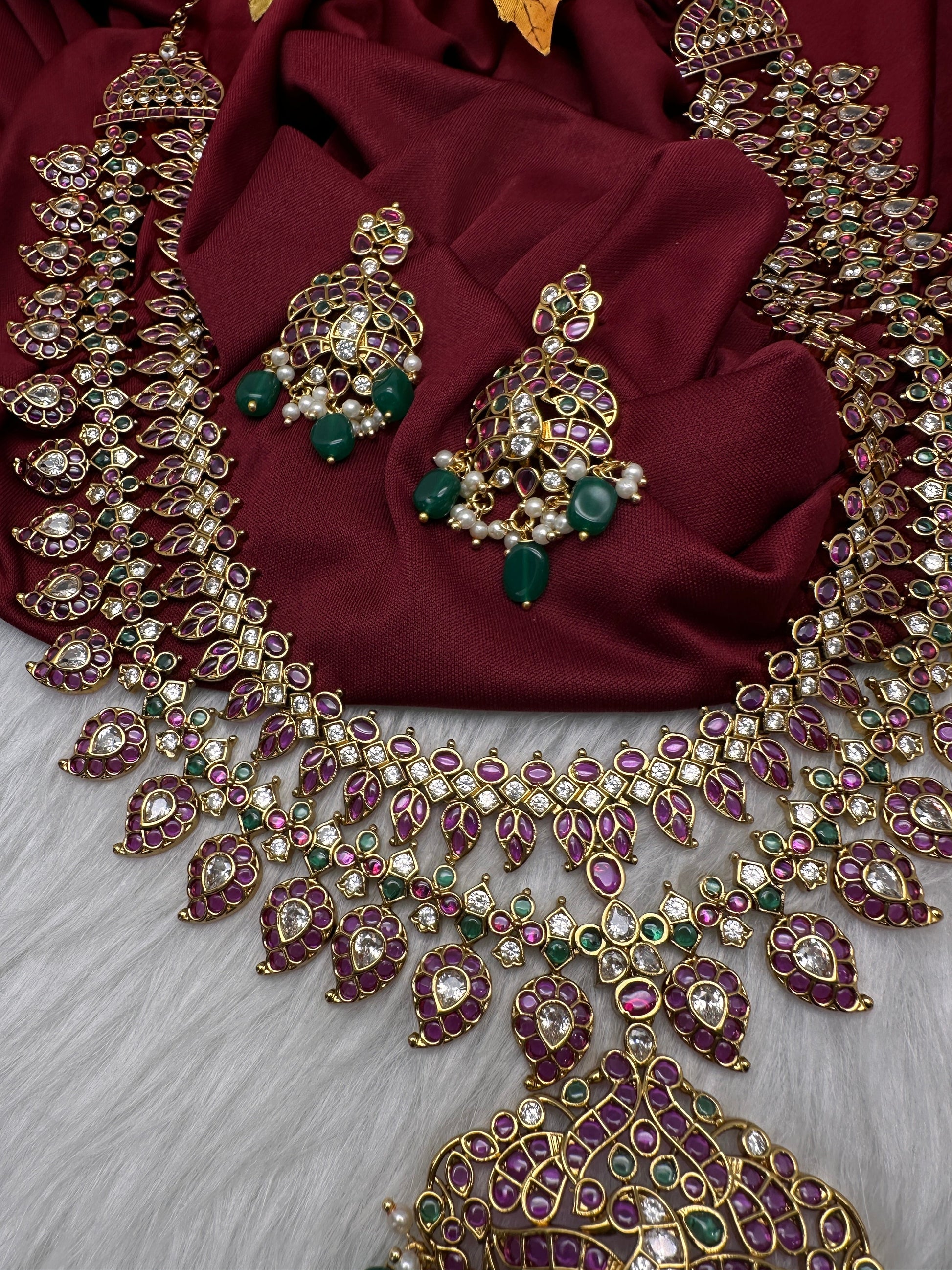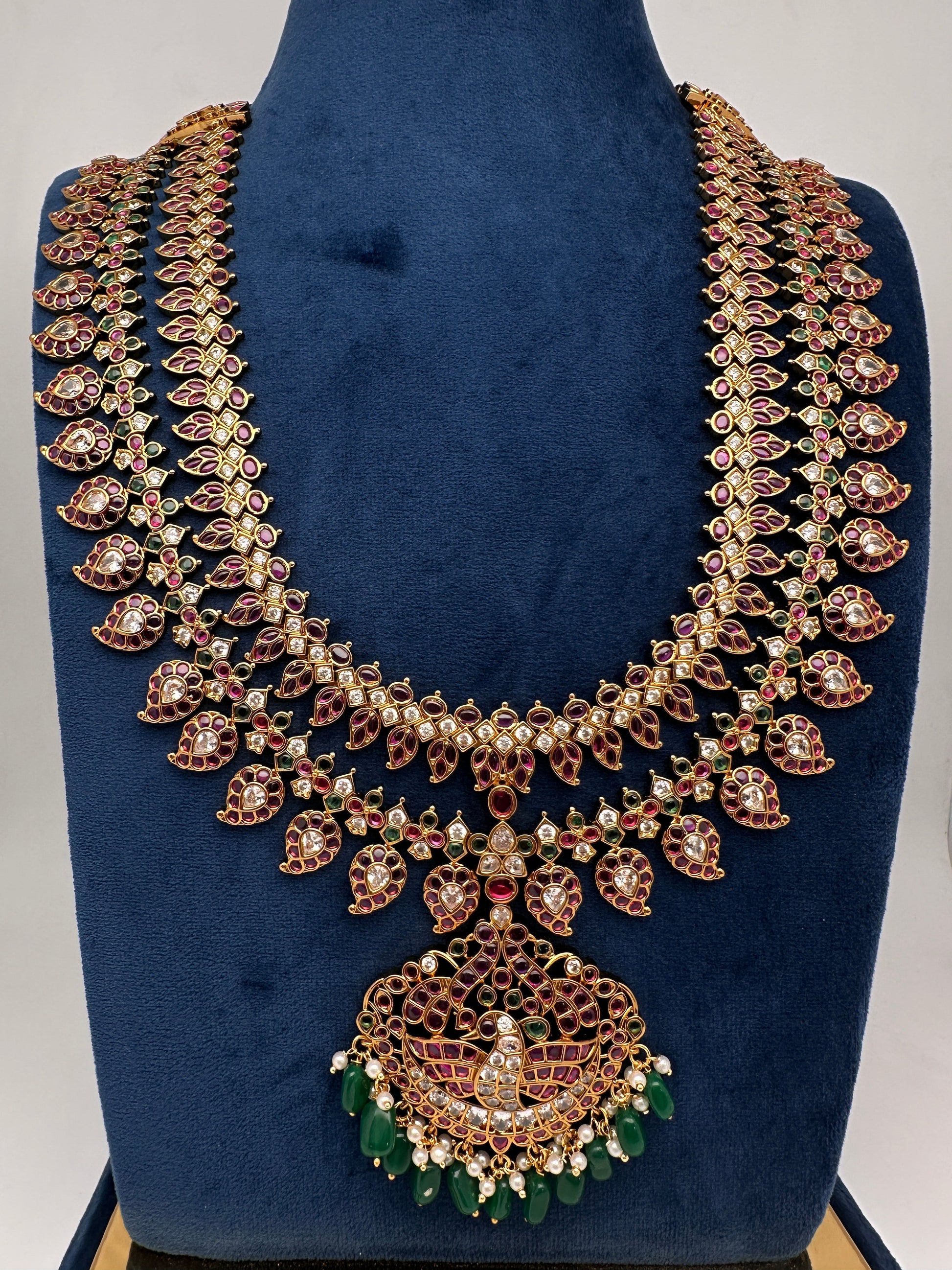 Multi Layer Kempu Long Mango Mala Necklace with matching earrings