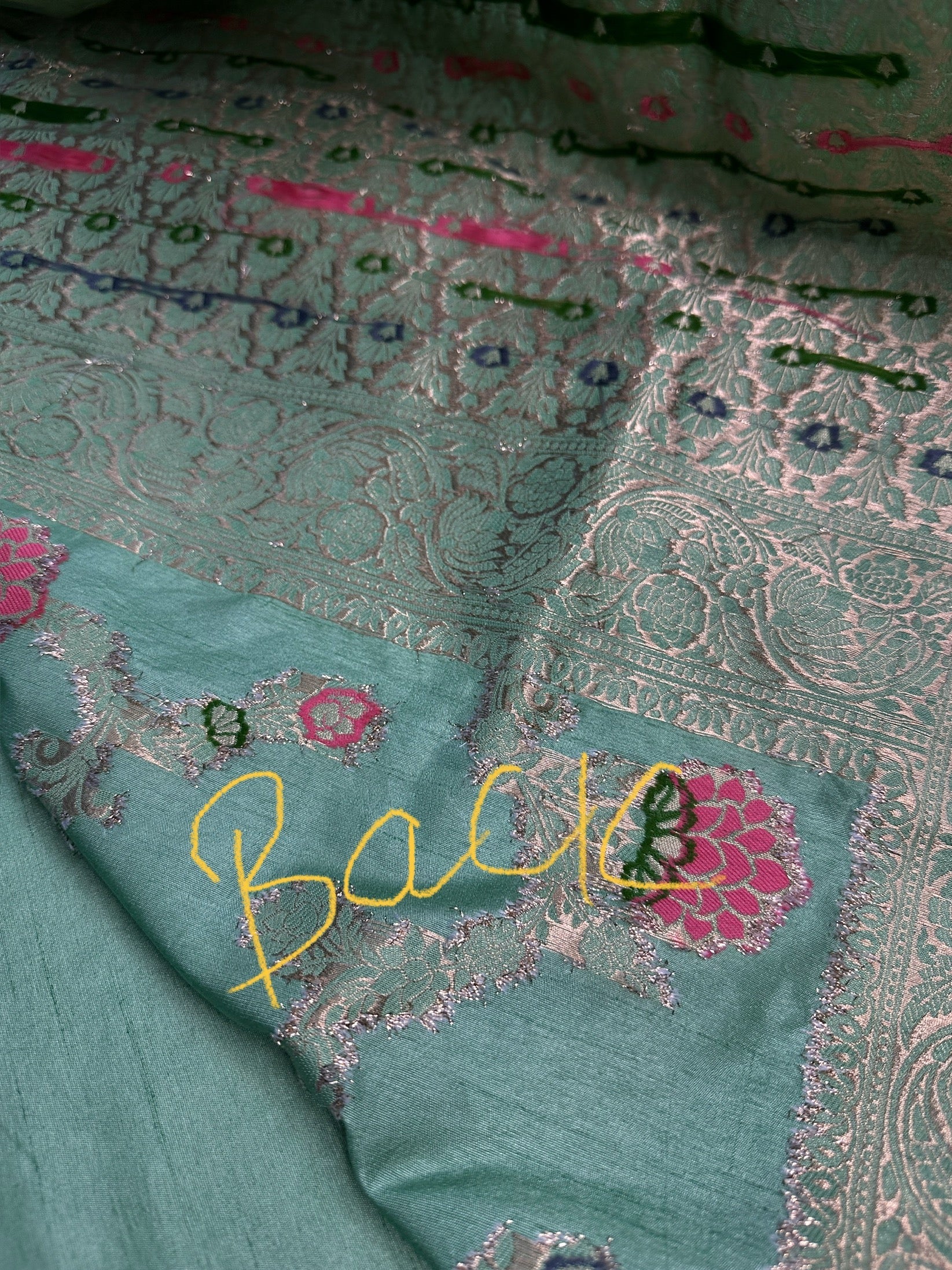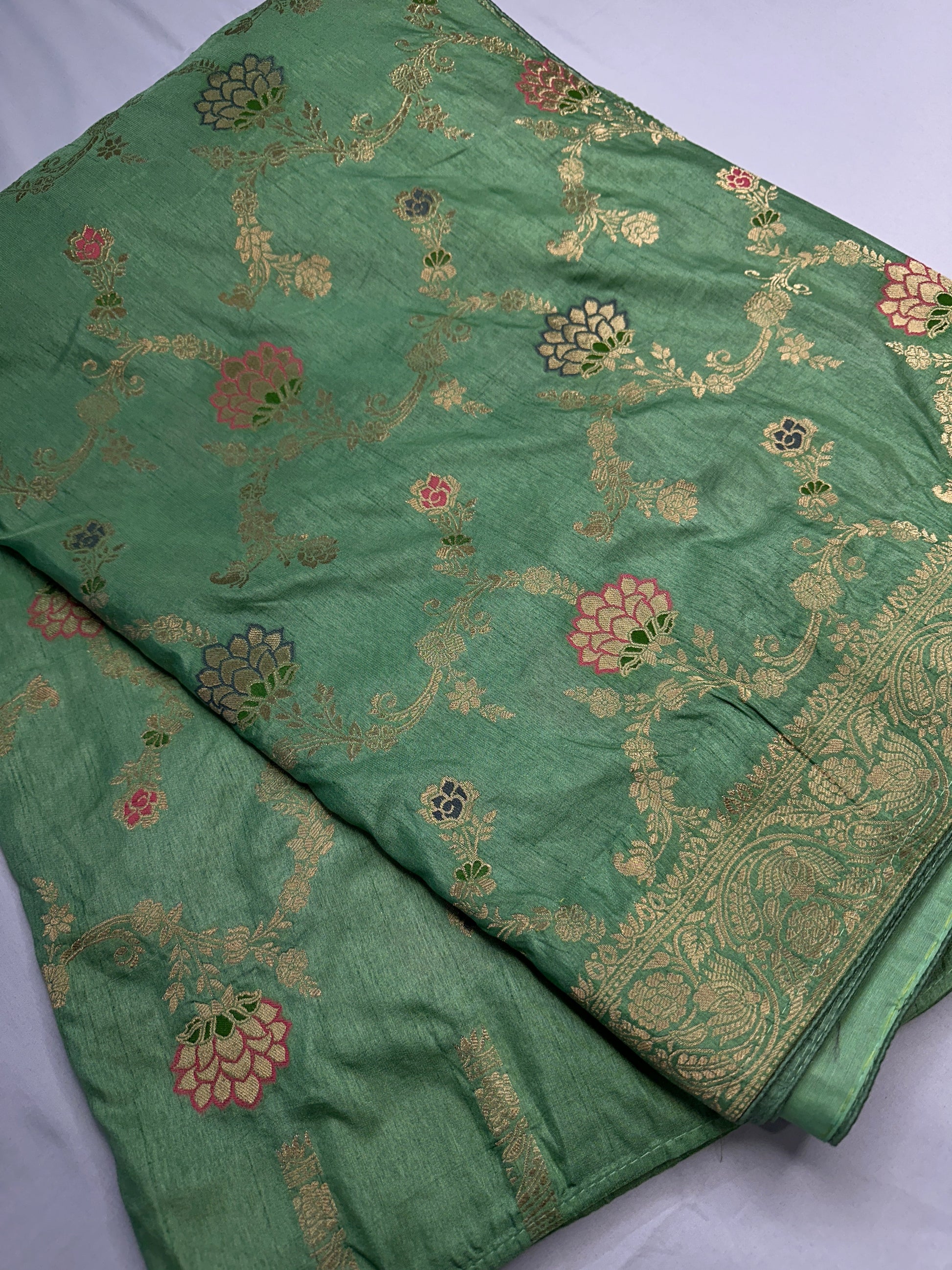Saree Details : Green Color Zari Pallu Fall and Pico done