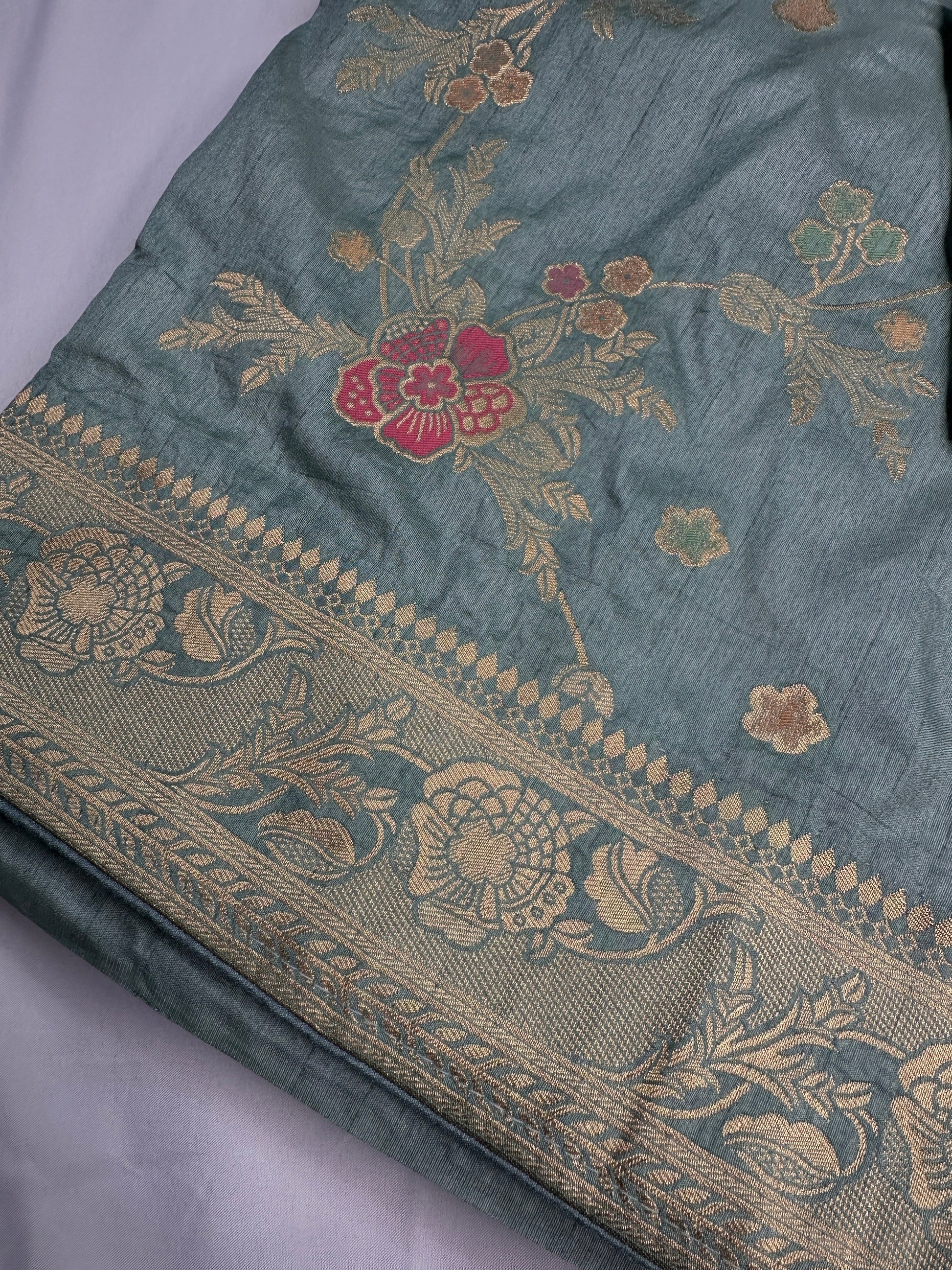 Munga Silk Teal Blue Saree Saree Details : Blue Color Zari Pallu Fall and Pico done Blouse Details : Blue Blouse Size 38 and has margin to go up to Size 44; Sleeves Length : 10 Inches: Blouse Length : 15 Inches; Front Neck : 7.5 Inches; Back Neck : 9.5 Inches Inches