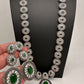 Oxidized Green AD Long Necklace with matching EarringsColor : SilverSize : Necklace Length : Approx 24 Inches; Earrings Length : 3 InchesStones : AD Green Stone