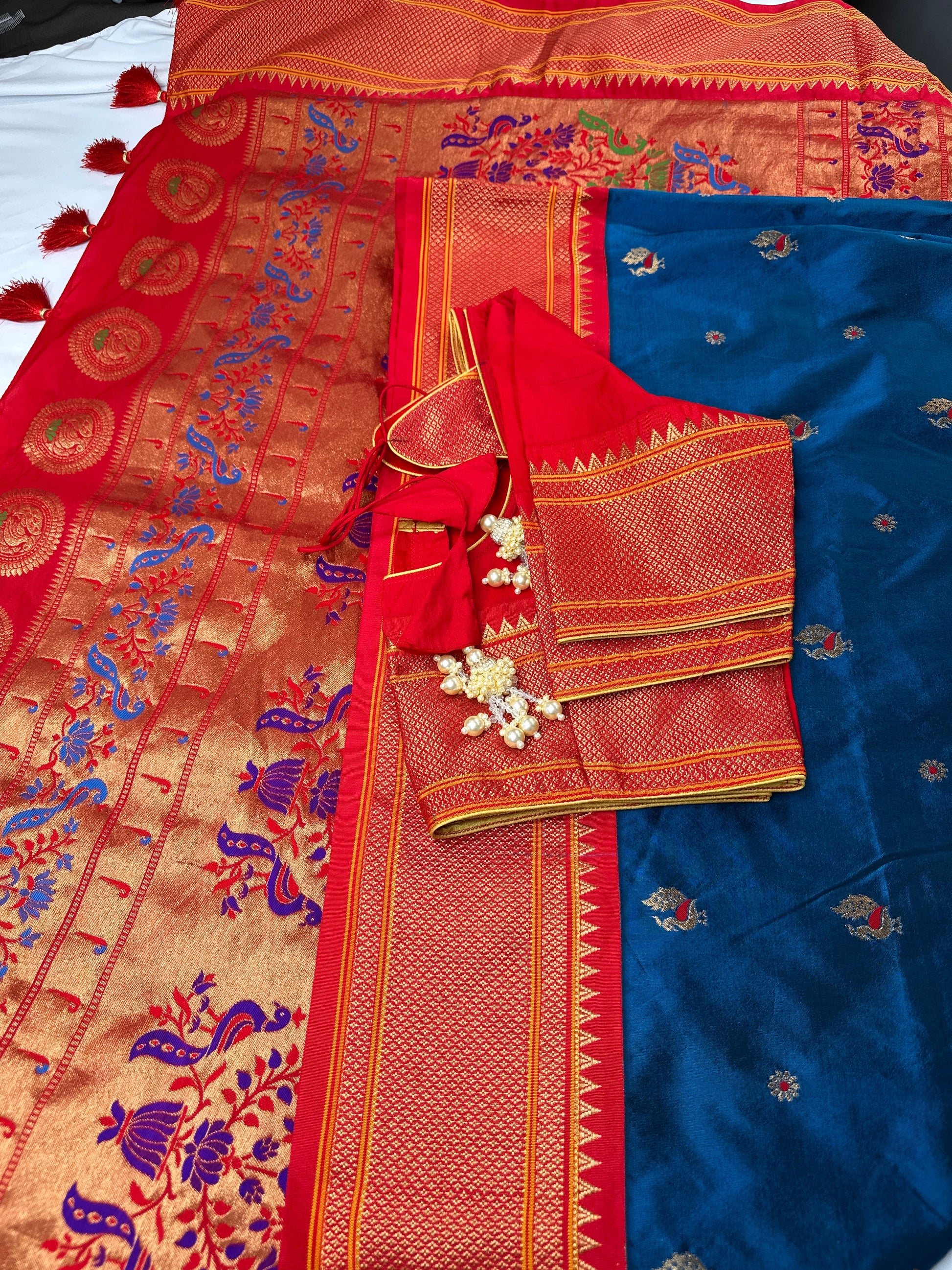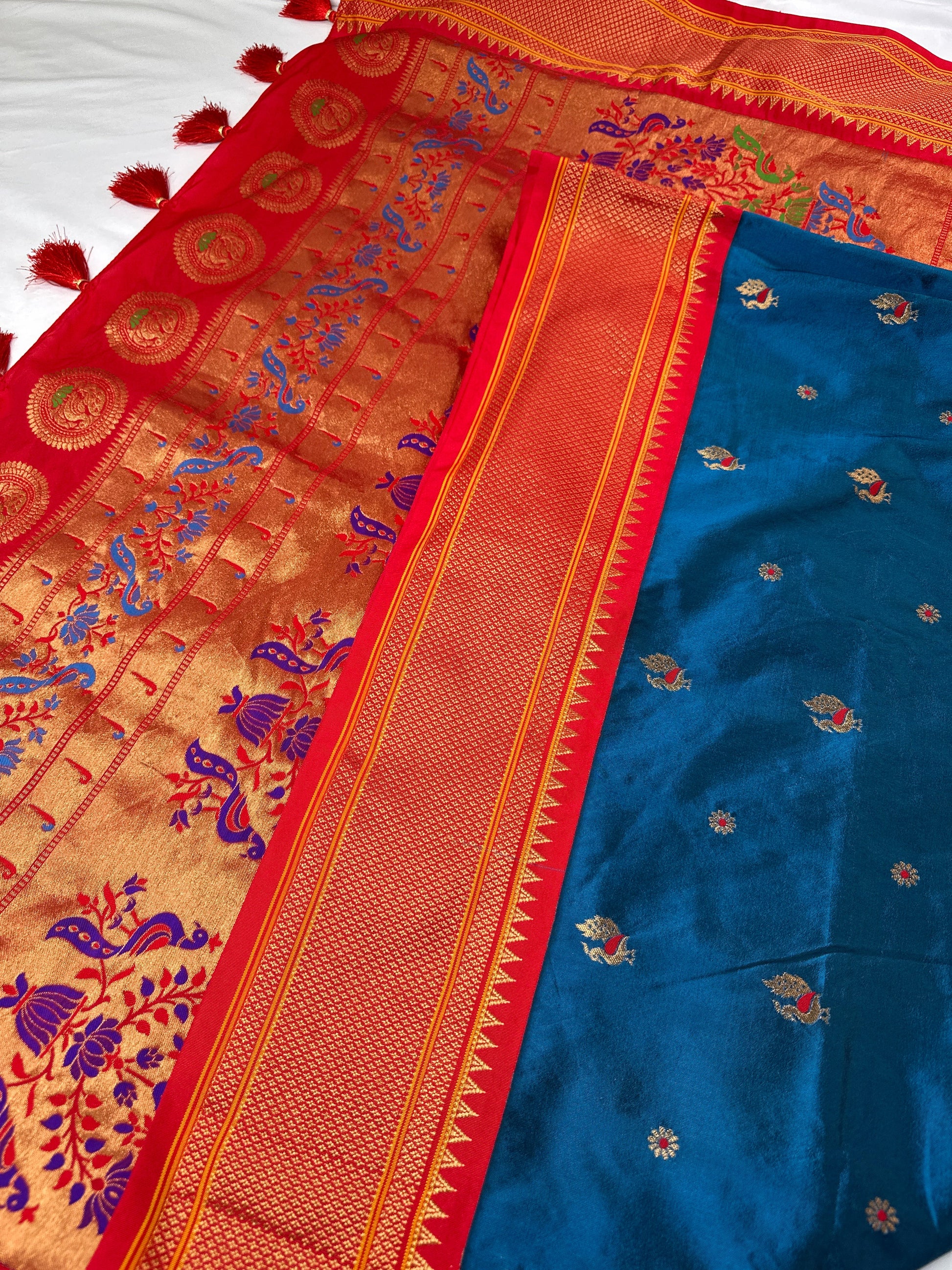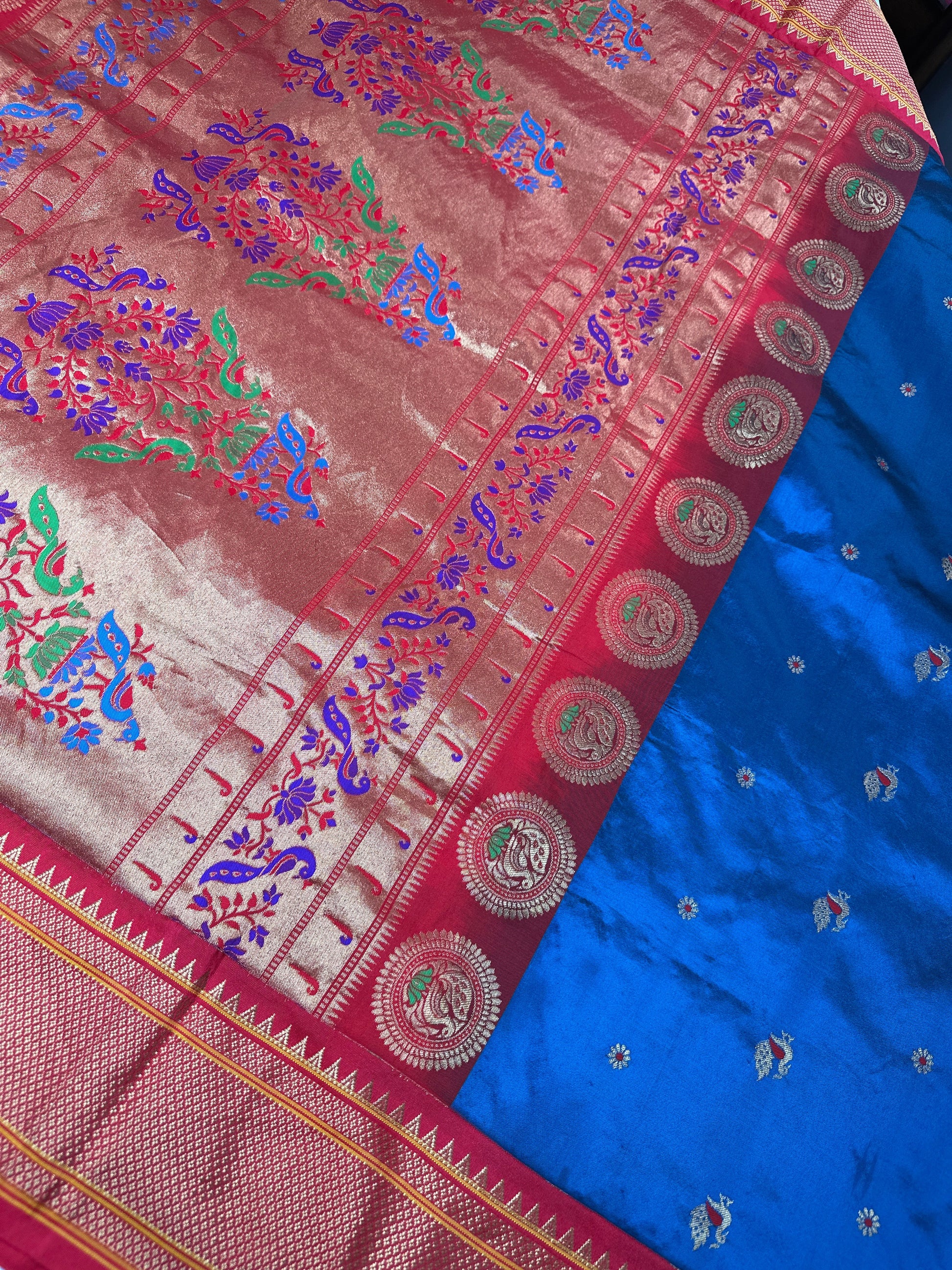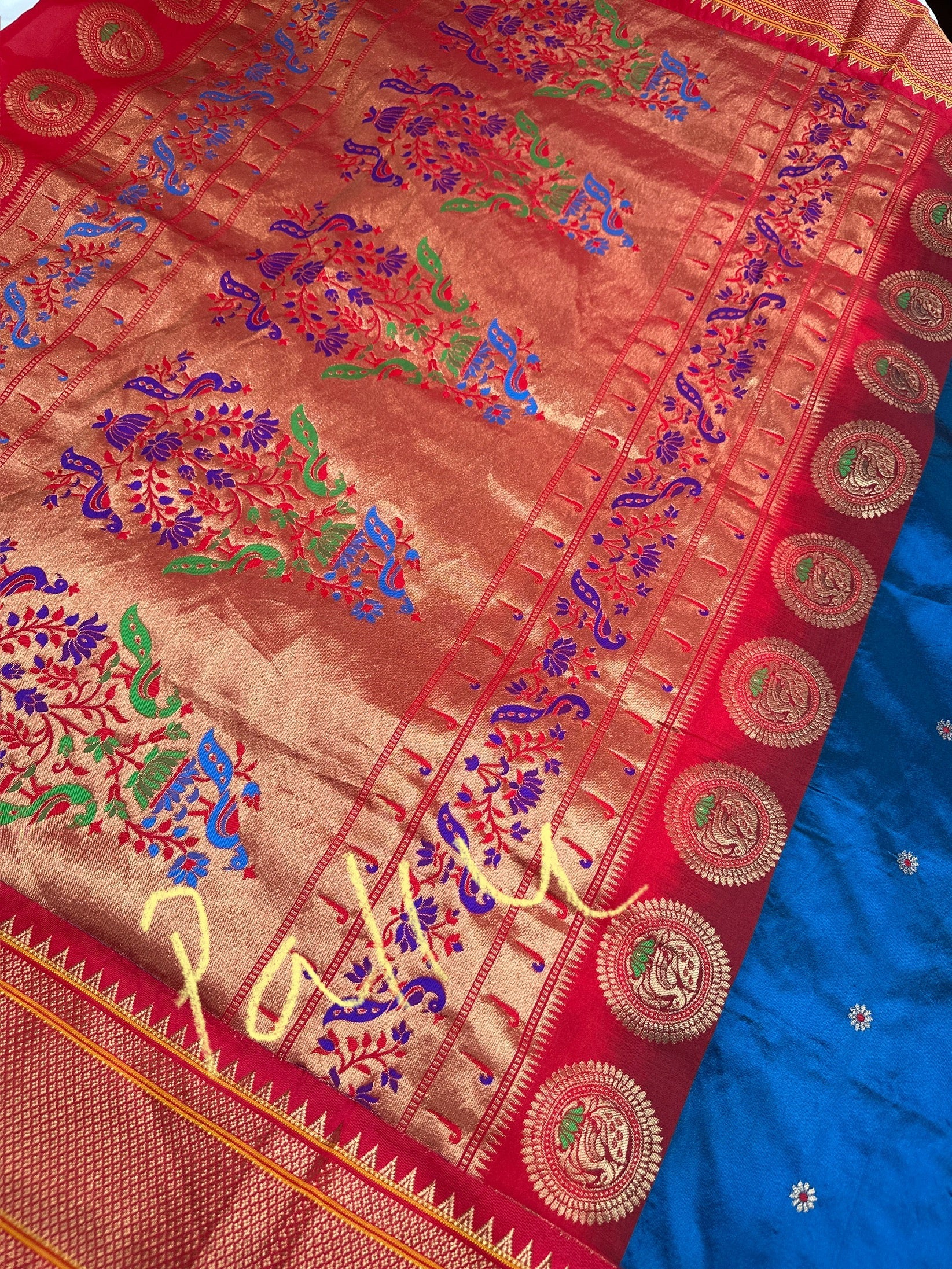 Saree Details : Blue Color Saree Paithani Pallu Fall and Pico done