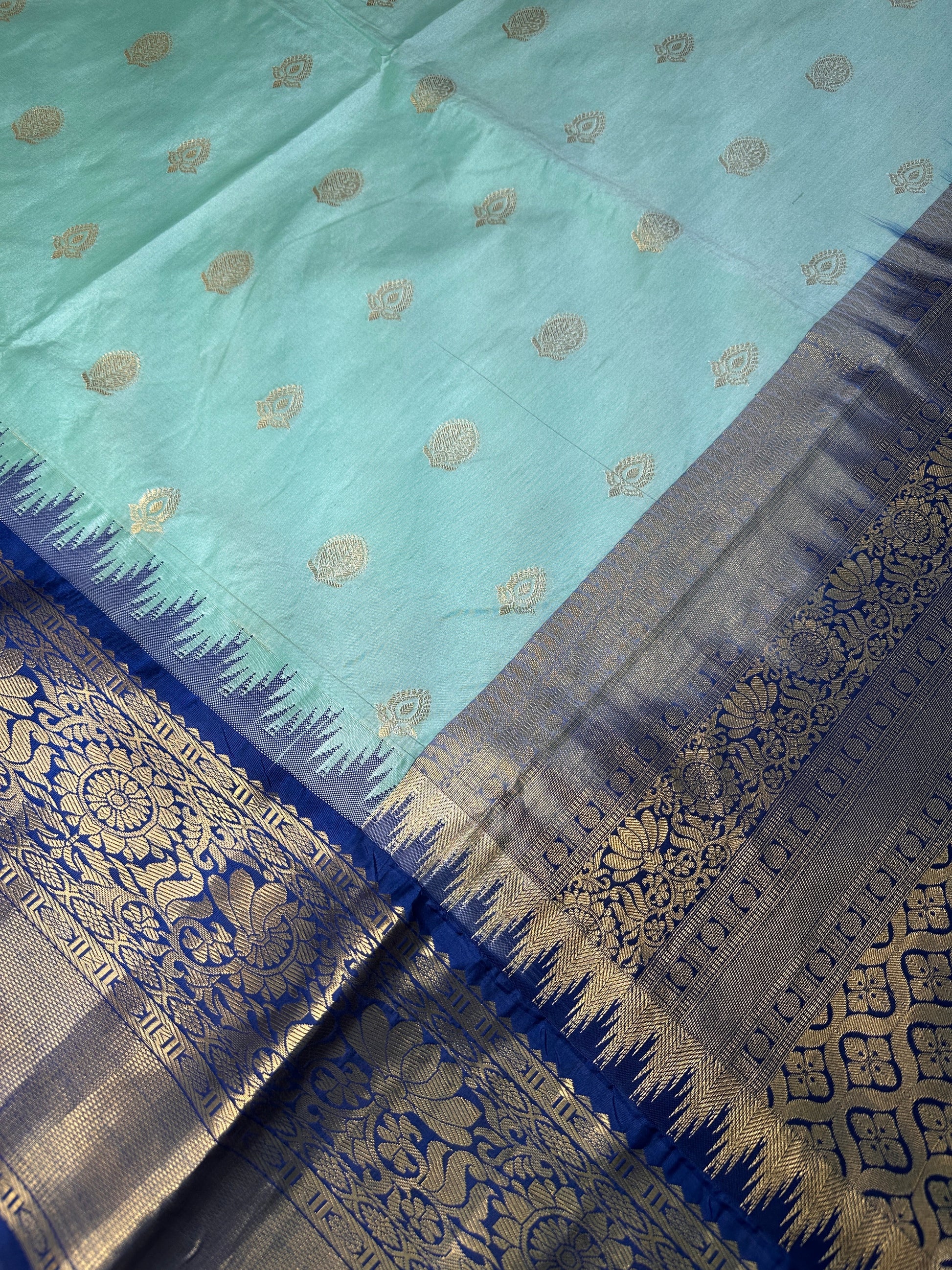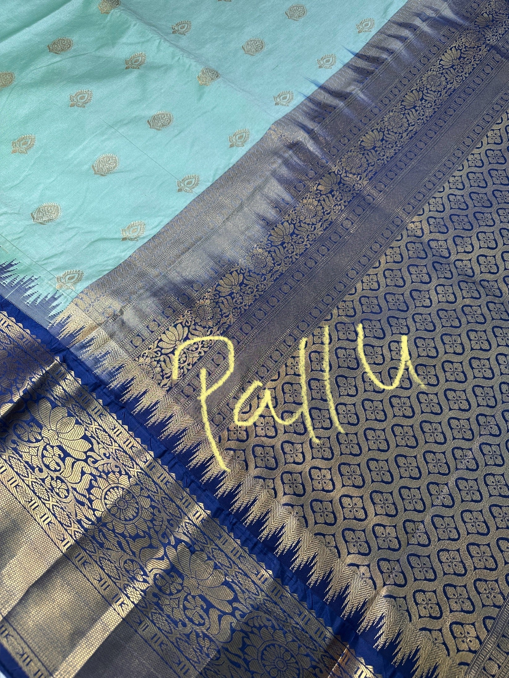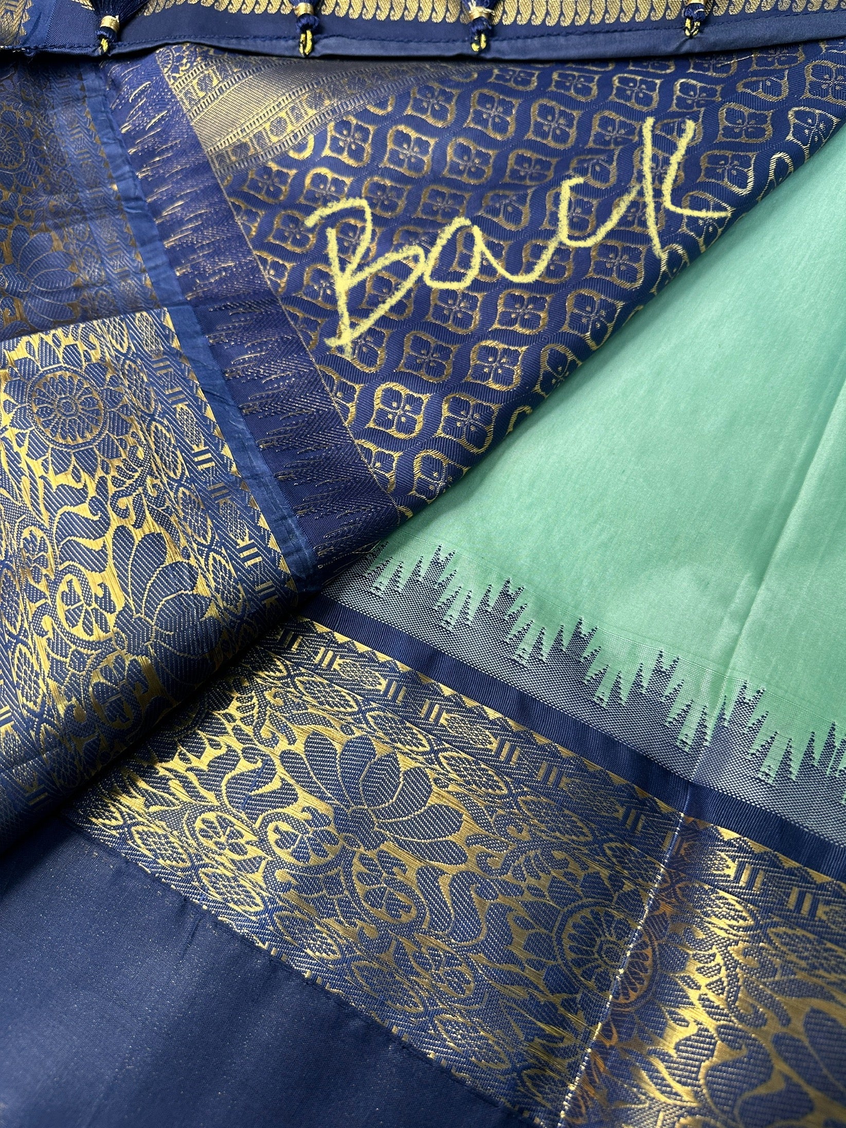 Saree Details : Green Color Saree Blue Pallu Fall and Pico done