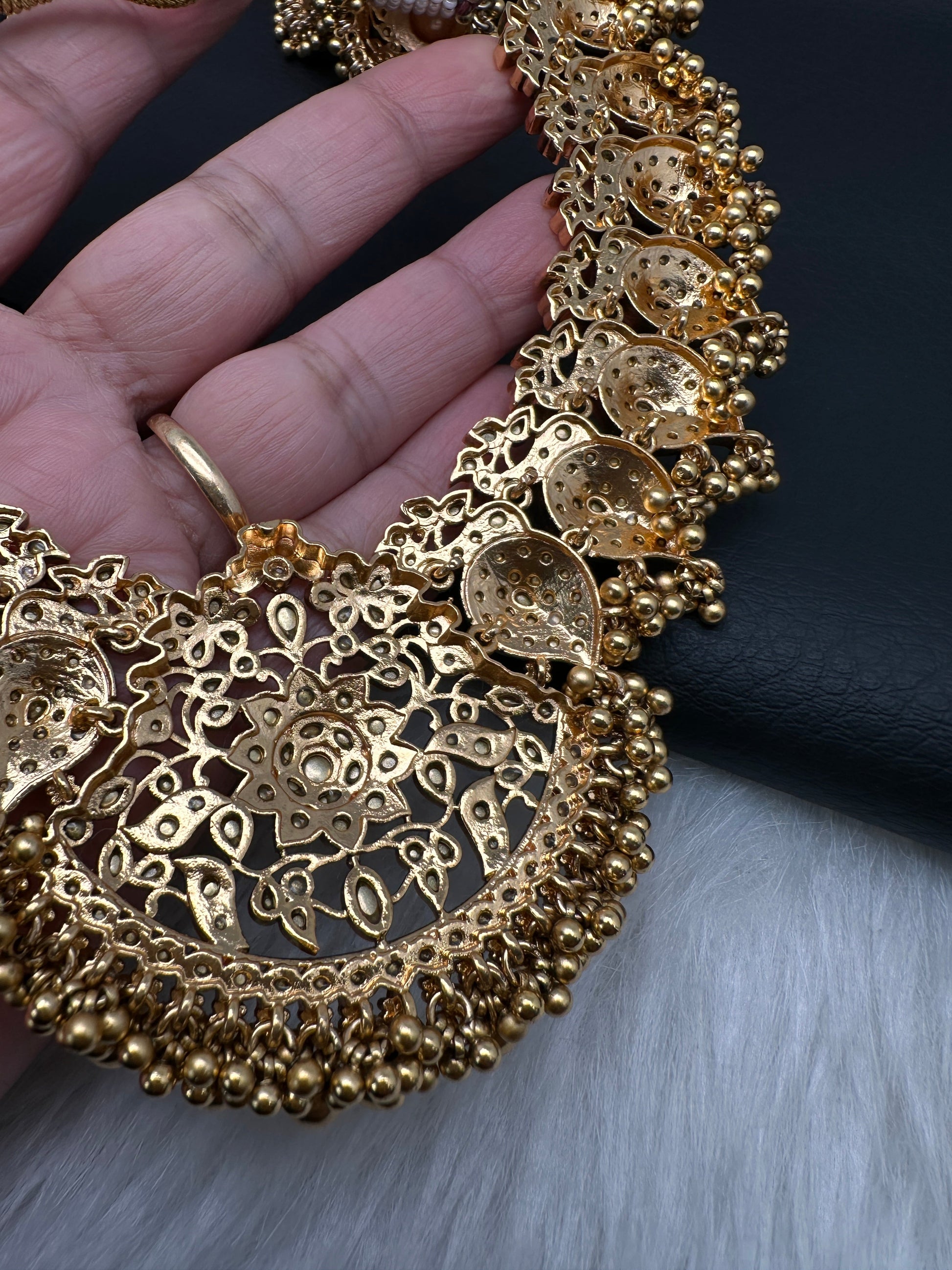 Peacock White Jadau Kundan Short Necklace with Jhumkas