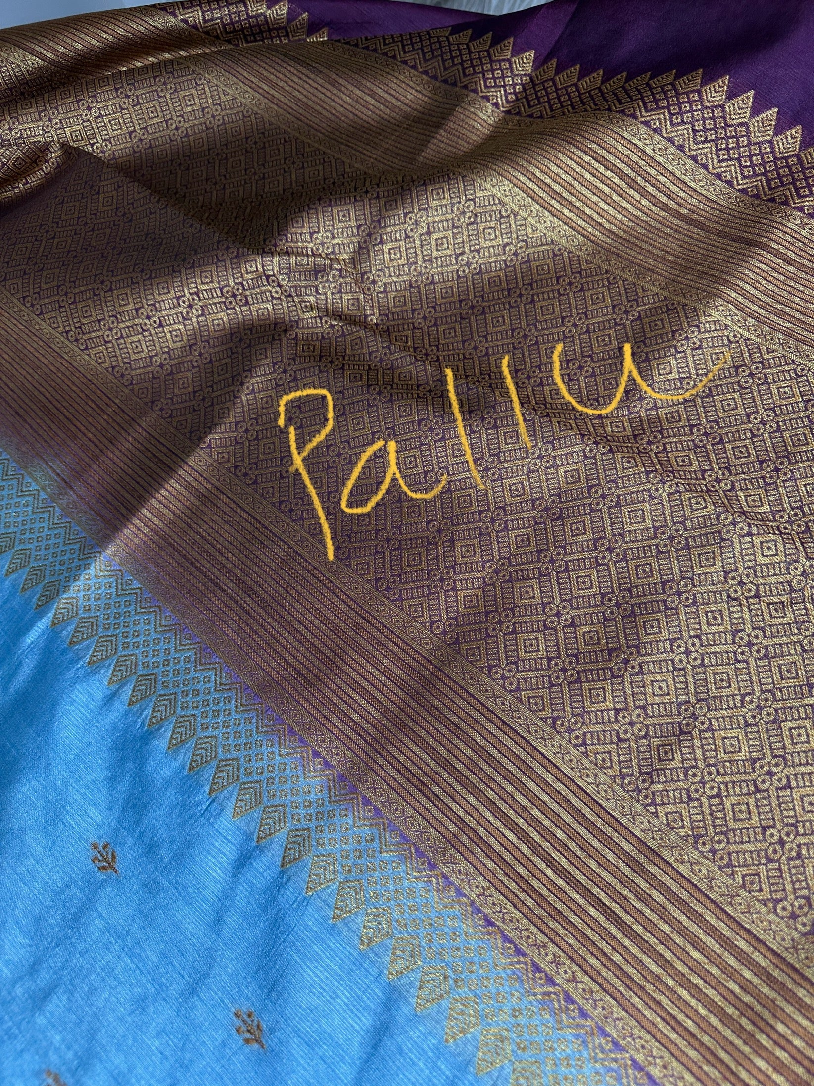 Saree Details : Blue Color Saree with Purple Pallu Fall and Pico done