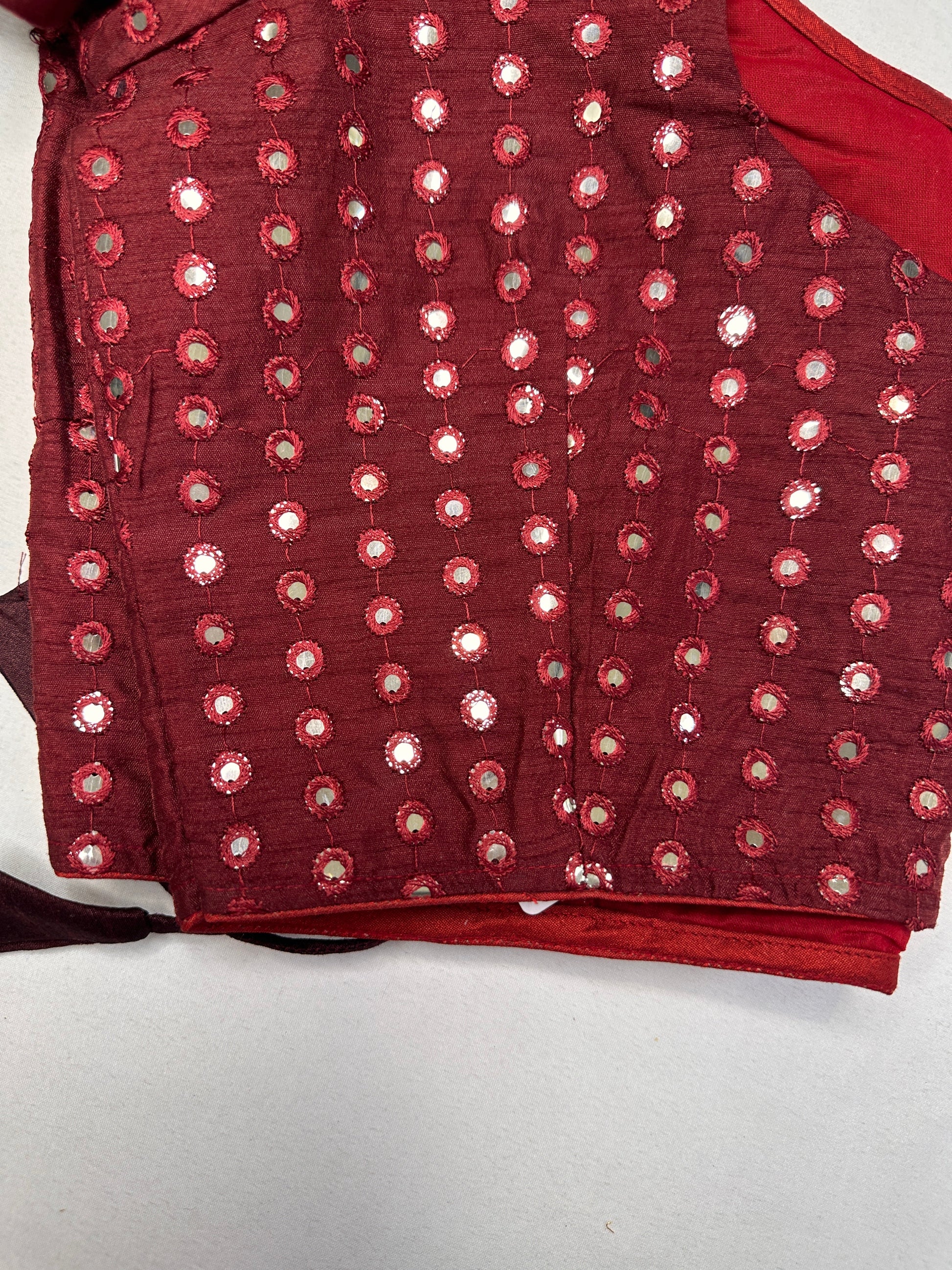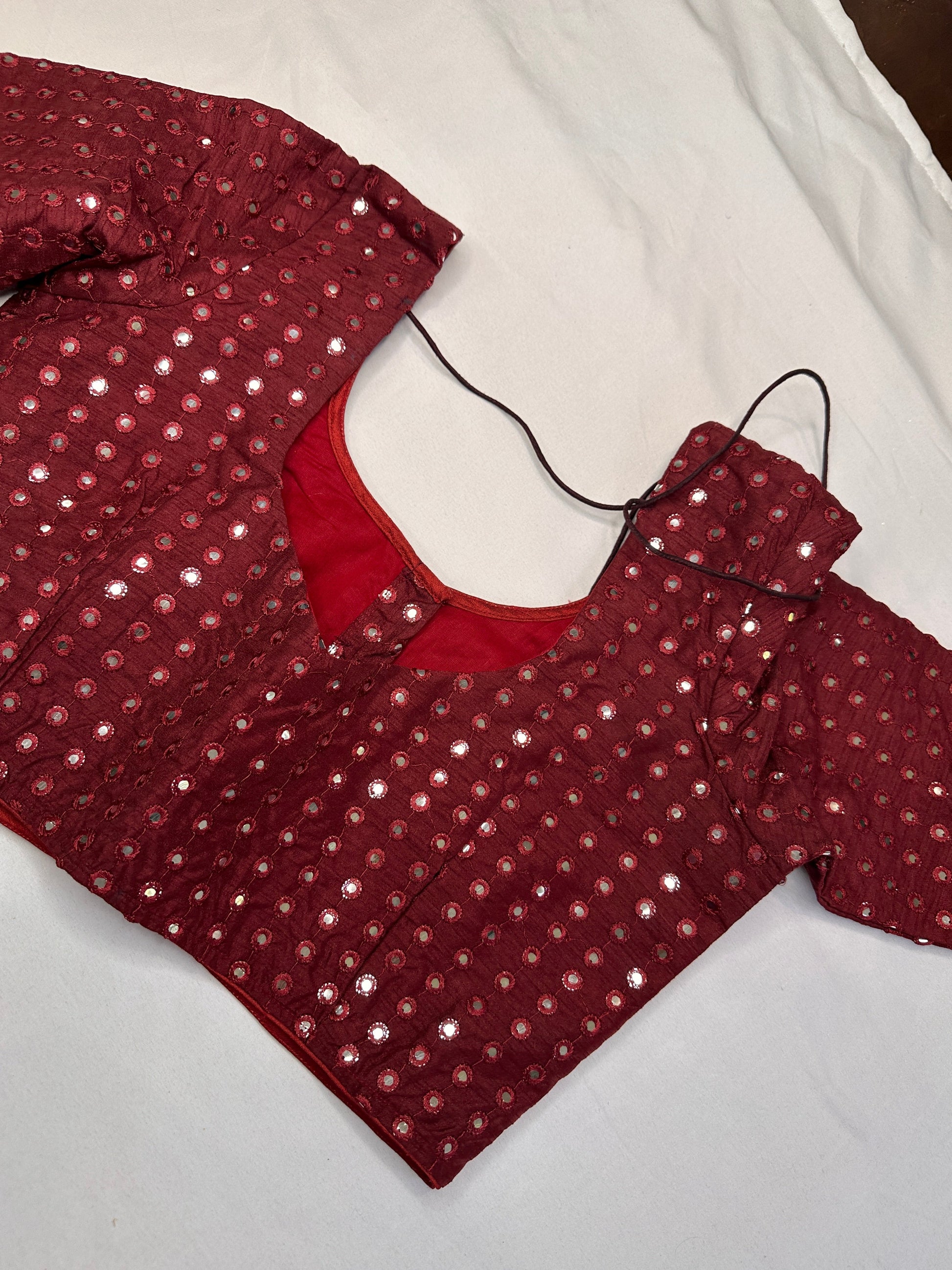 Blouse Details : Blouse Color : Red; Blouse stitched Size 36 and can be altered from 34 to 46, Sleeves Length : 10 Inches, blouse Length 14 Inches, FrontNeck : 7.5 Inches and Back Neck : 10 Inches;
