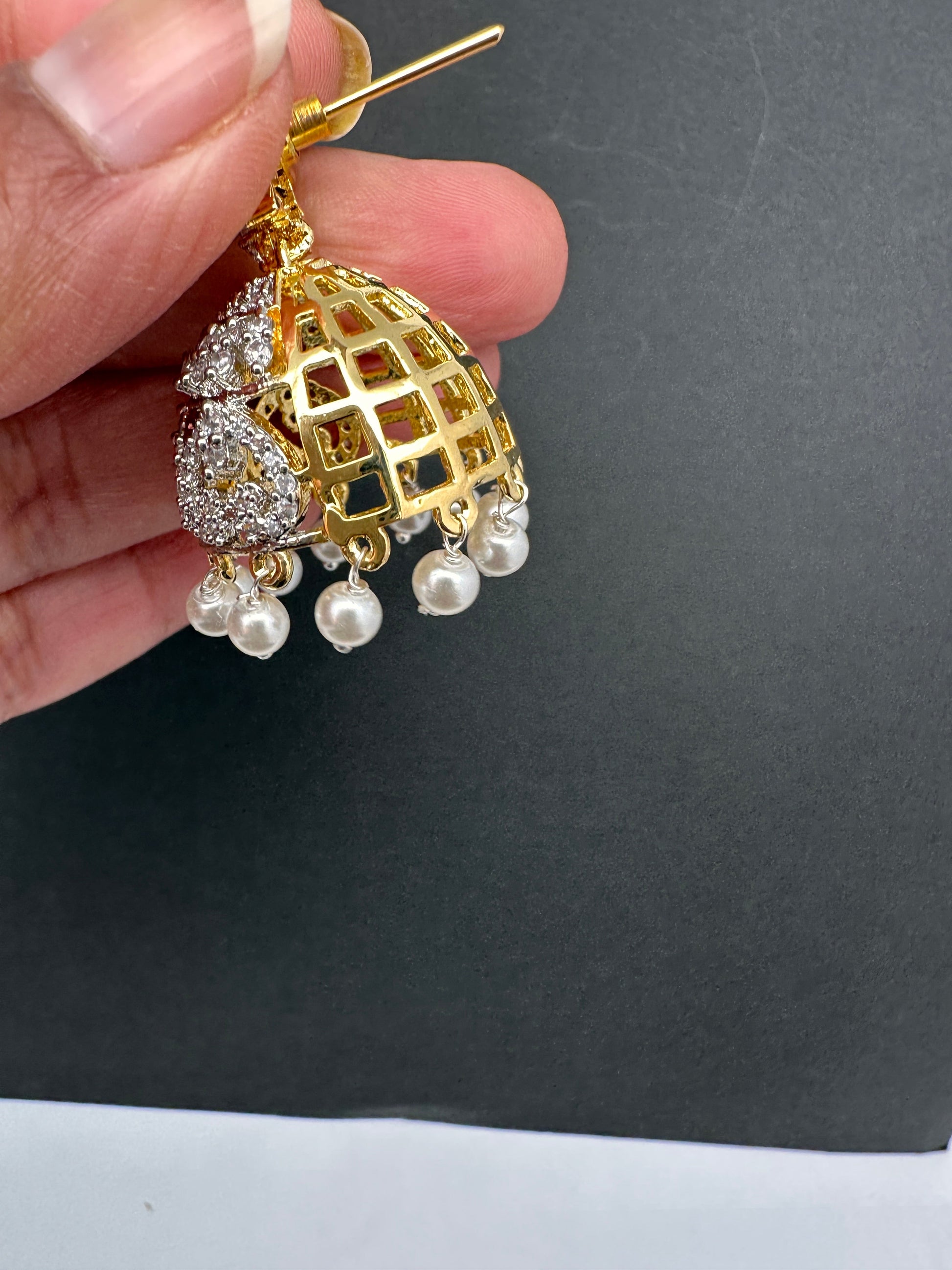 AD Color Stone Pearls Jhumki Earings