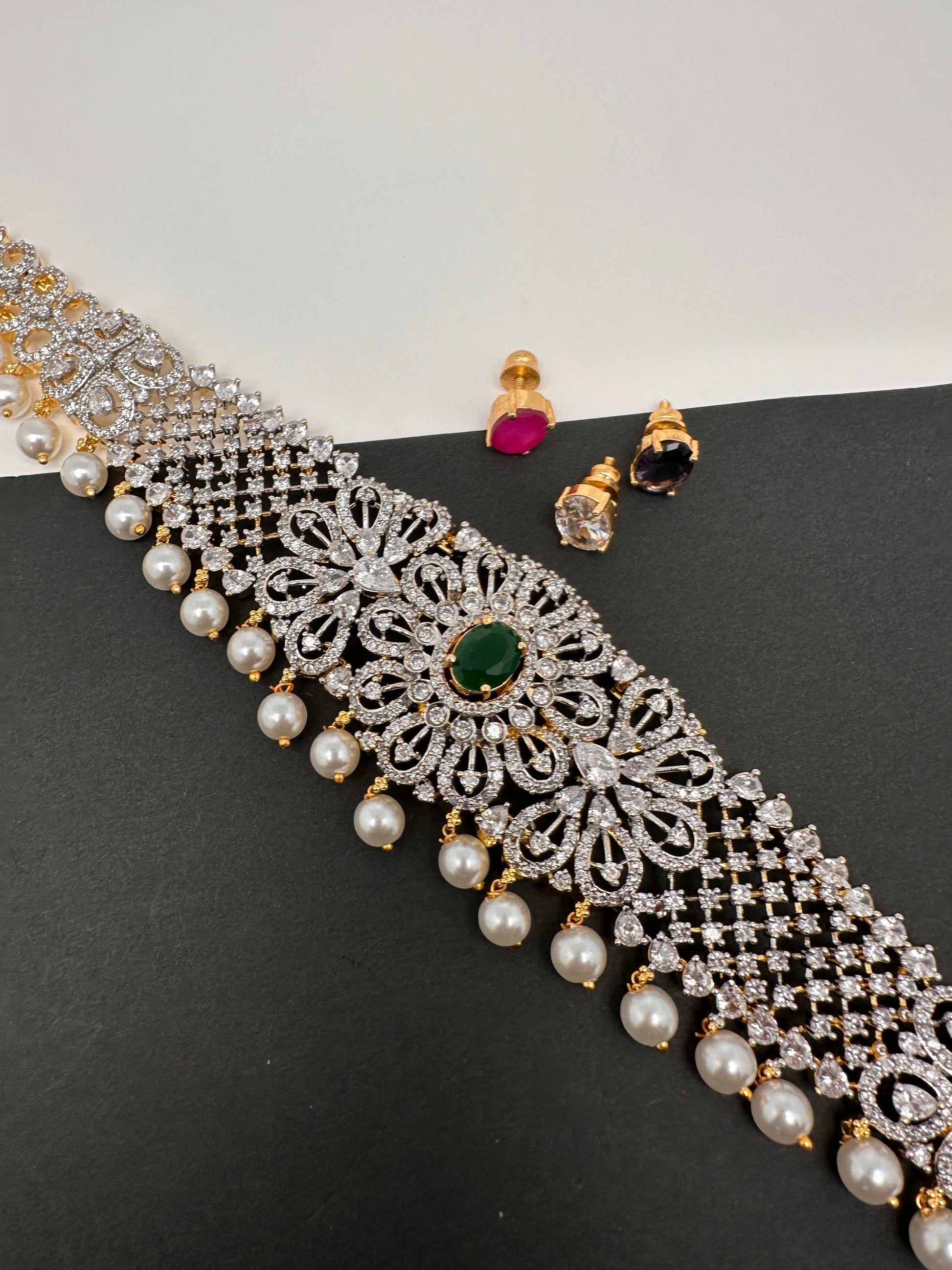 AD Diamond Changeable Color Stone Pearls Hip Chain Kamarbandh long around waist adjustable waist belt Color : Golden Size : Maximum Length : 41 Inches; Minimum Length : 30 Inches; Front Design Length : 12 Inches Stones : AD Red GreenClear Purple Changeable Stone Pearls