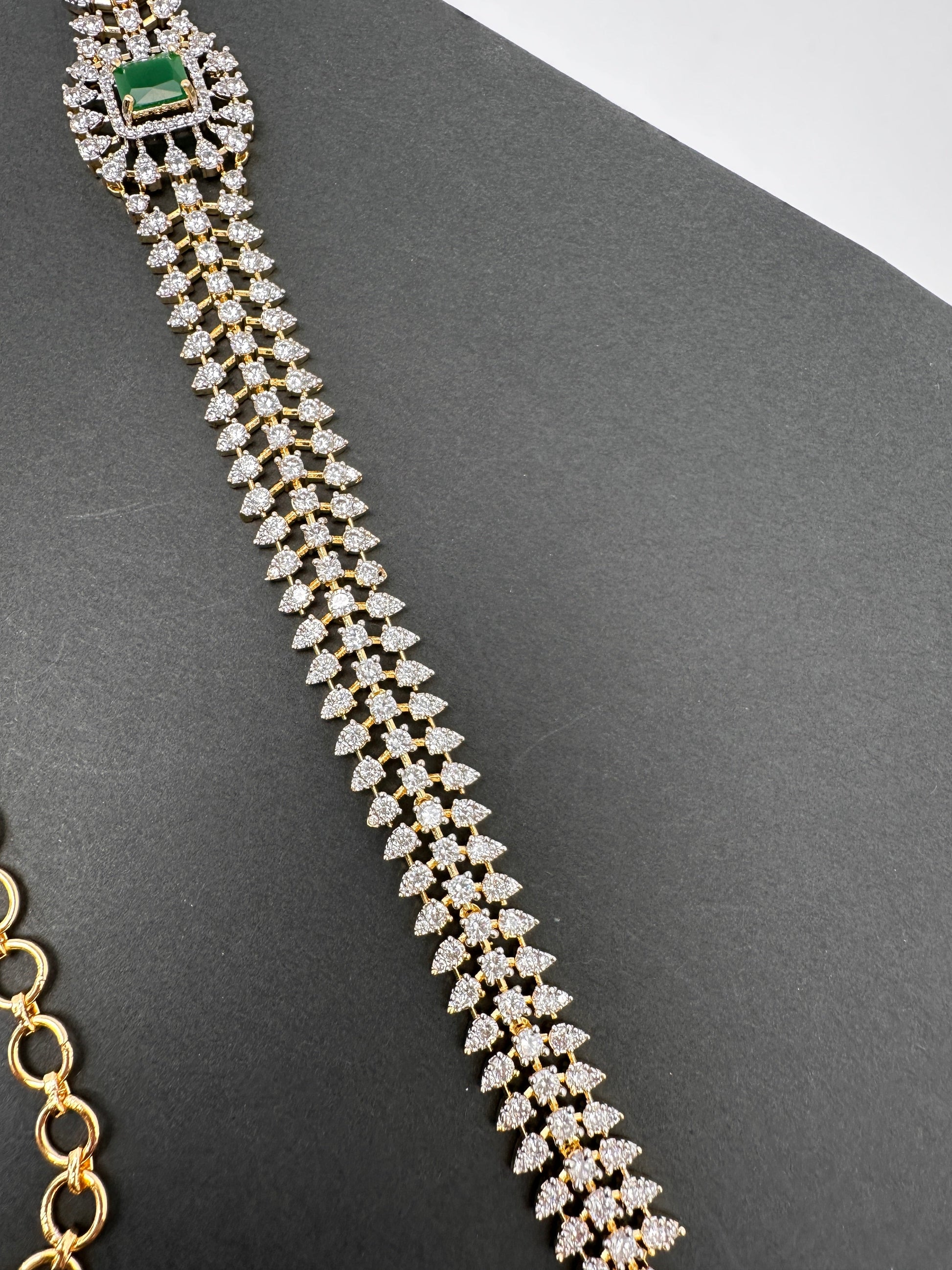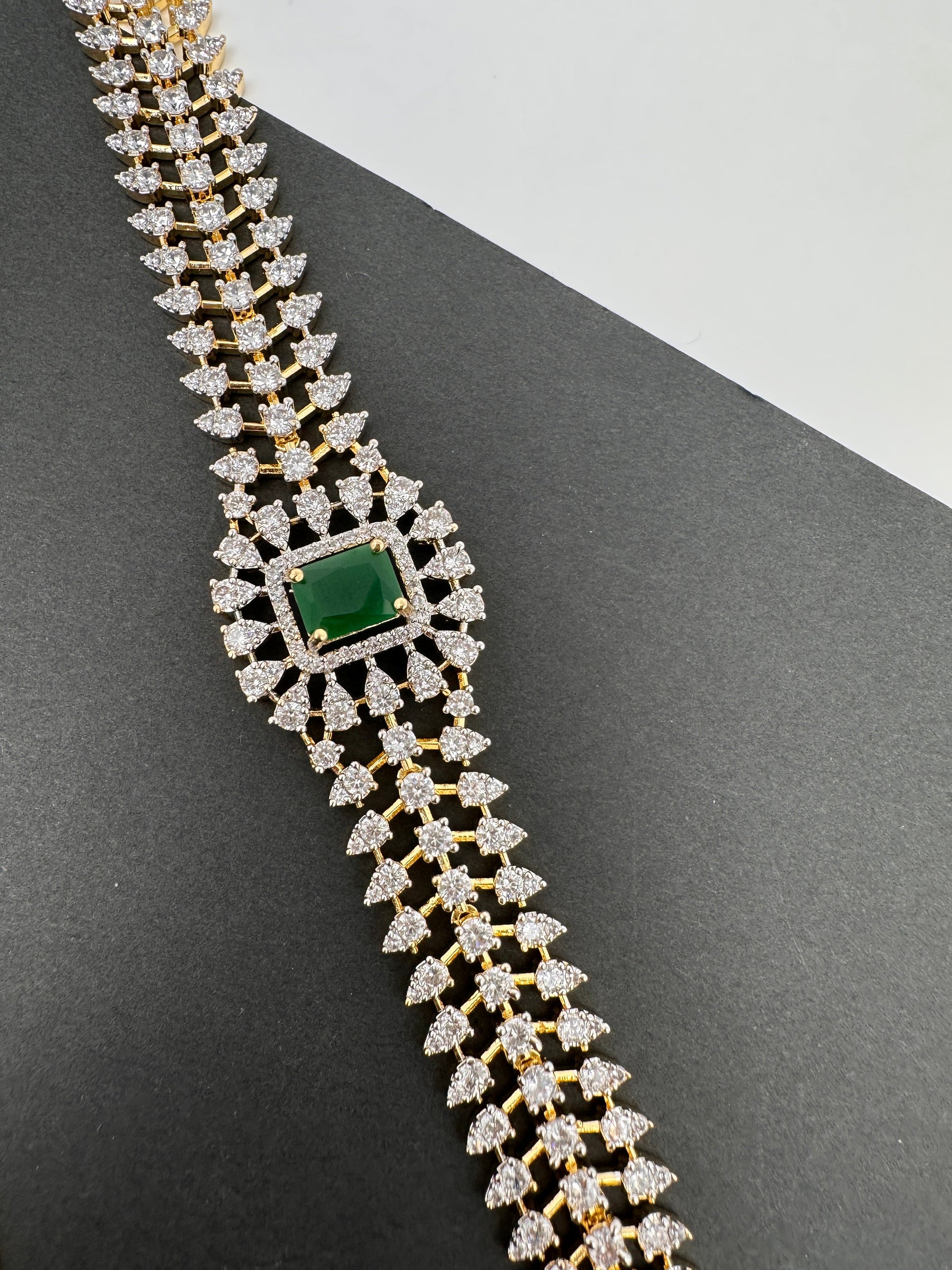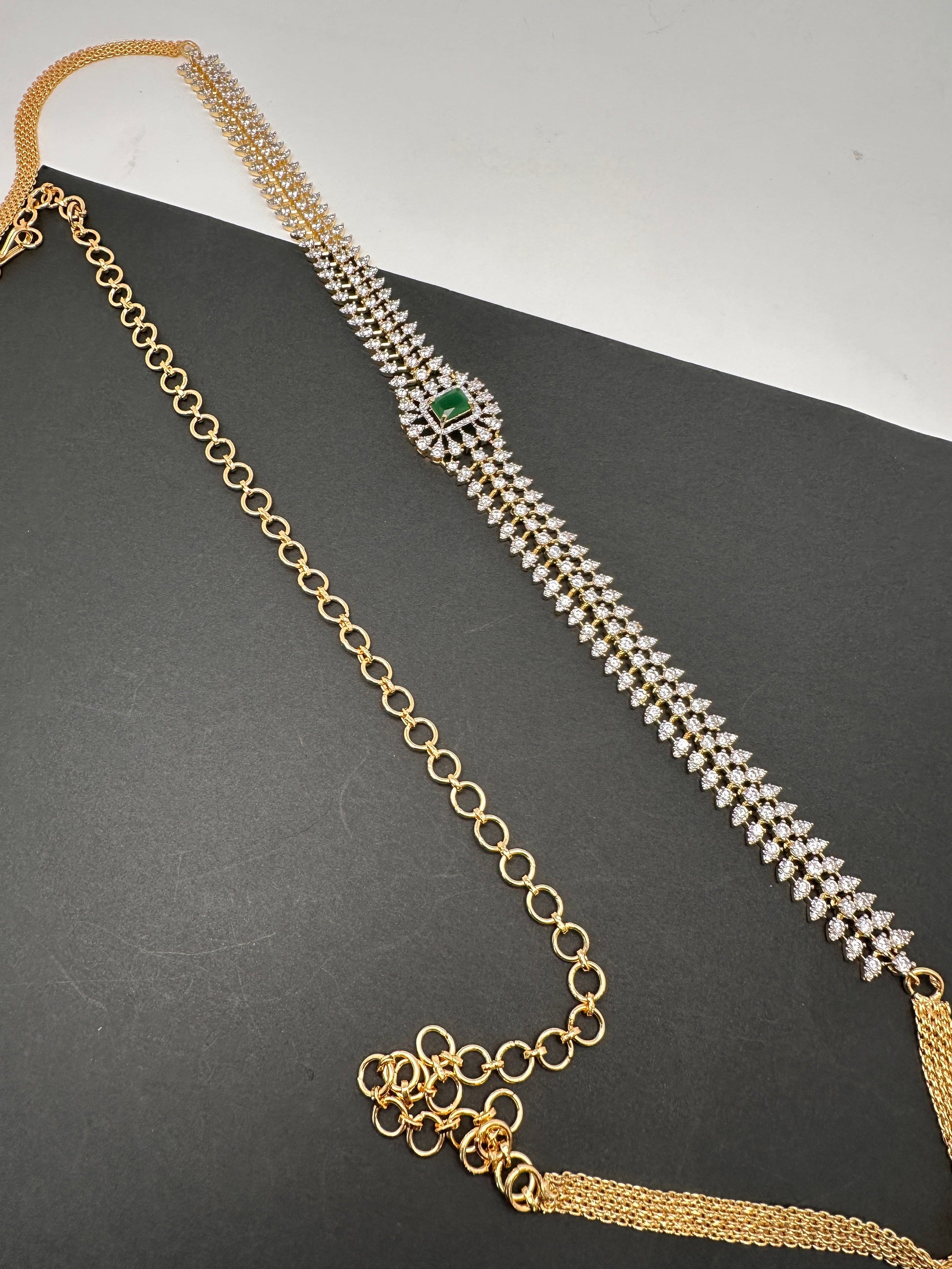 AD Diamond Finish Emerald Green Stone Hip Belt Kamarbandh