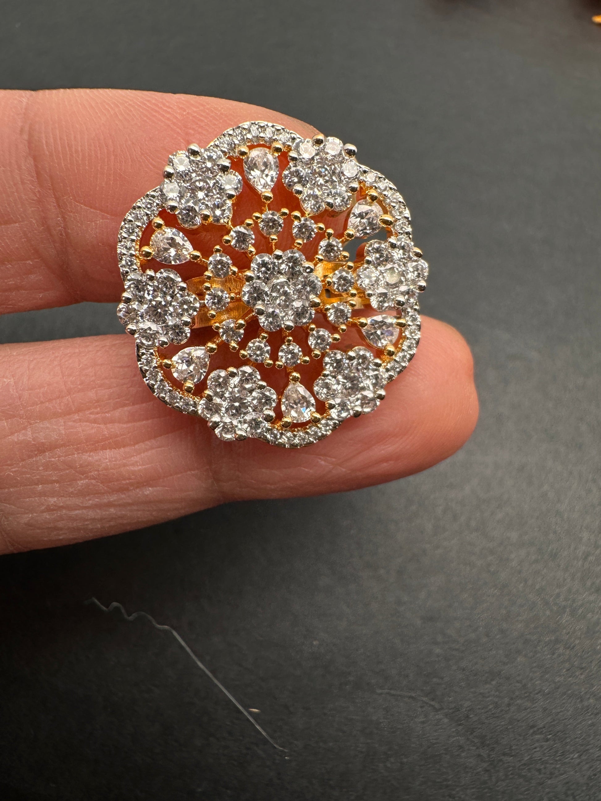 AD Gold Adjustable Color Stone Cocktail Ring Adjustable Ring Fits All Sizes