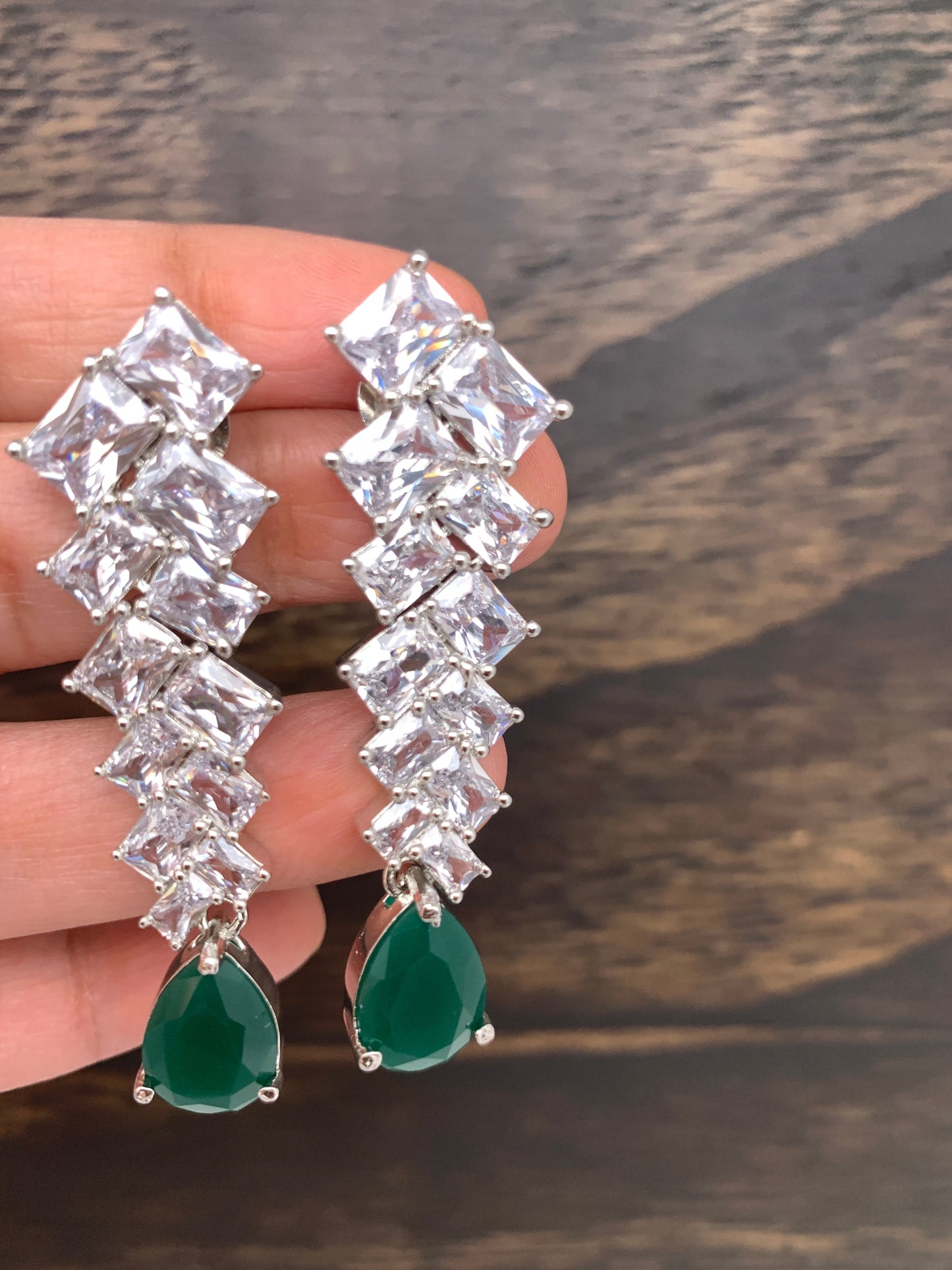 AD Earrings with Green Stone in Silver Polish