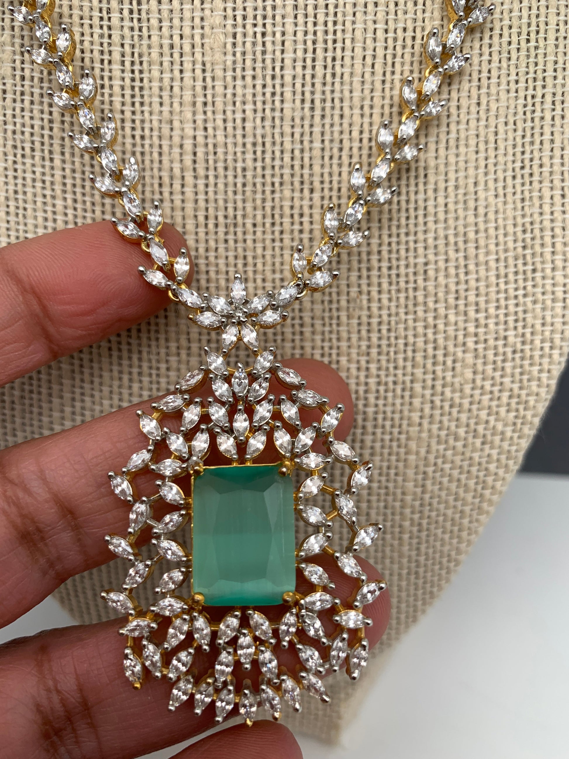 AD Mint Green Doublet Stone Short Necklace with matching earrings