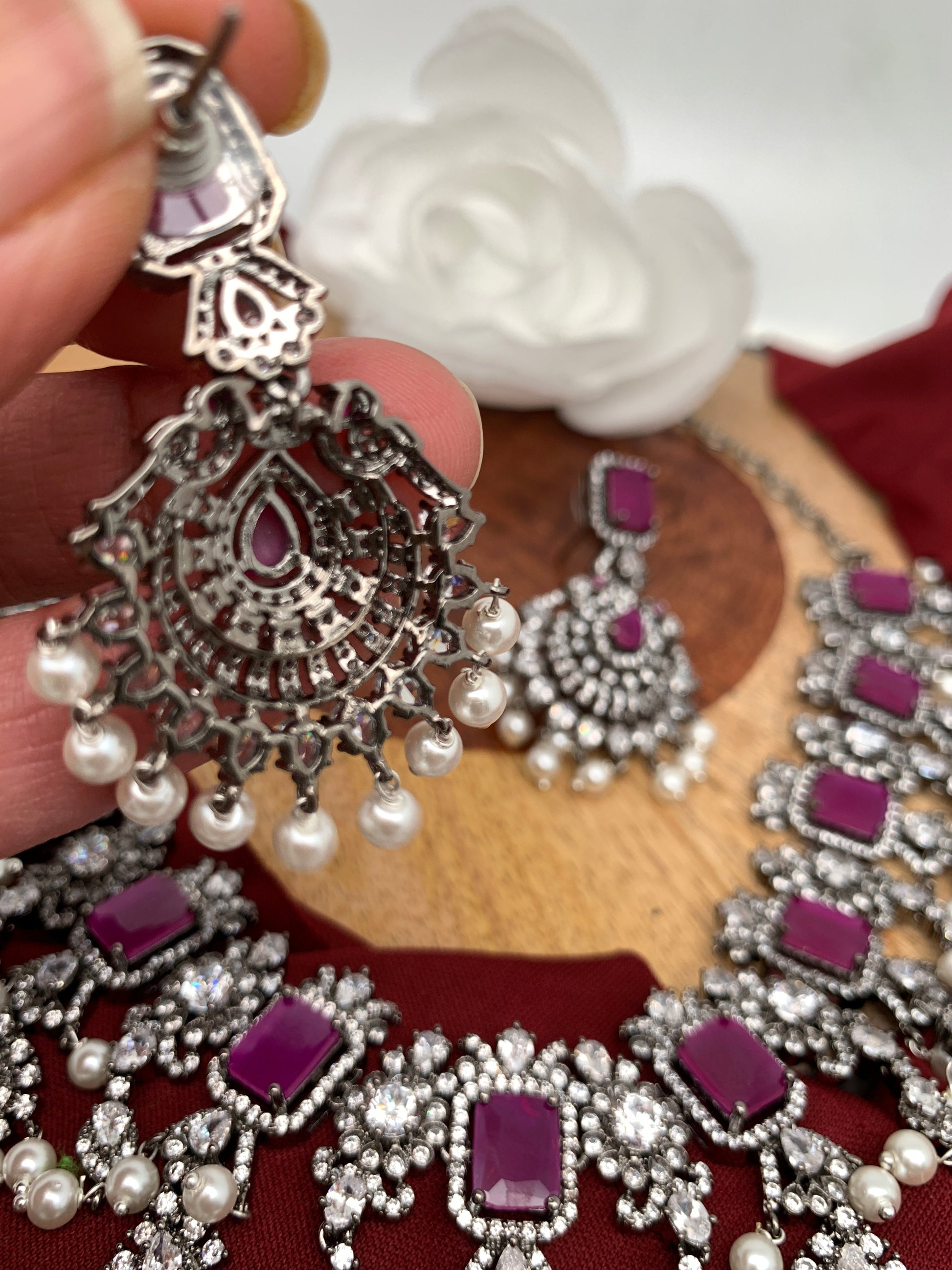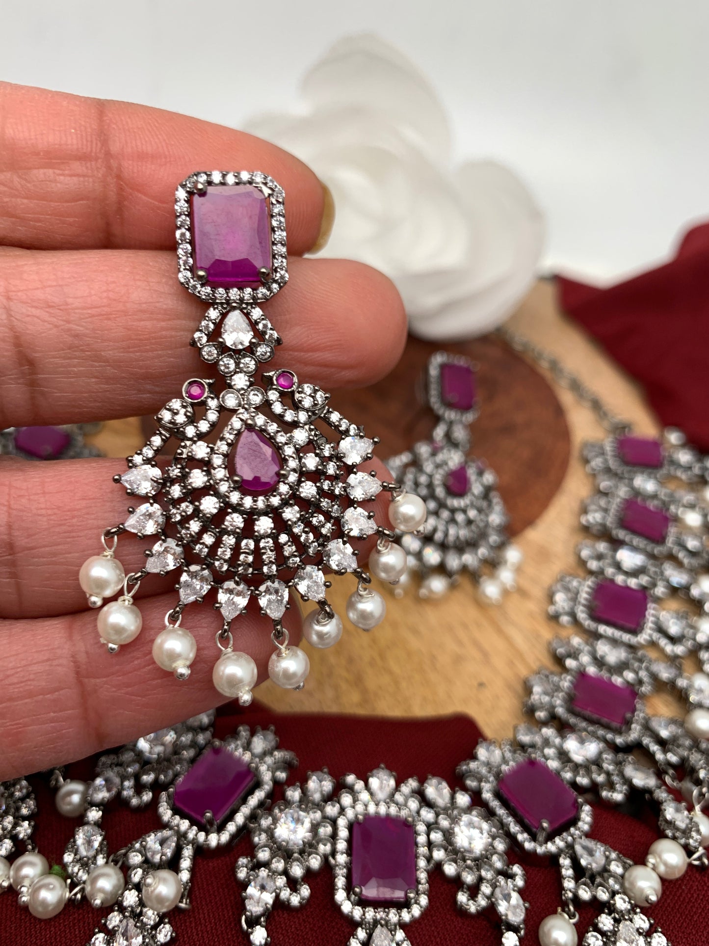 AD Red Stone Victorian Short Necklace with Matching Earrings