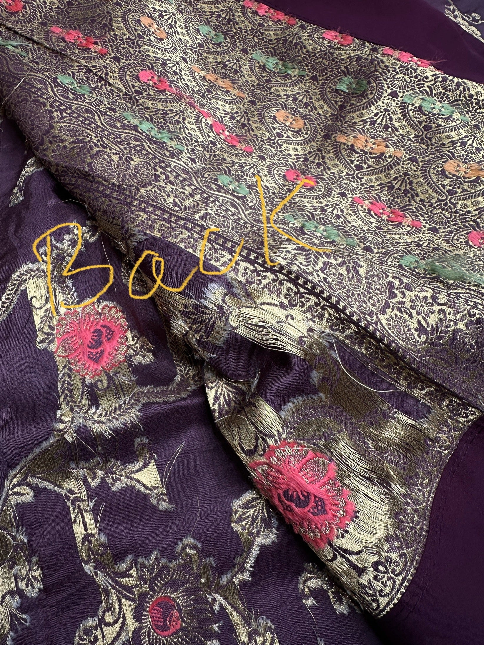 Banarsi Munga Silk Mauve Purple Saree Saree Details : Purple Color Zari Pallu Fall and Pico done Blouse Details : Purple Blouse Size 38 and has margin to go up to Size 46; Sleeves Length : 9 Inches: Blouse Length : 15 Inches; Front Neck : 7.5 Inches; Back Neck : 9.5 Inches Inches
