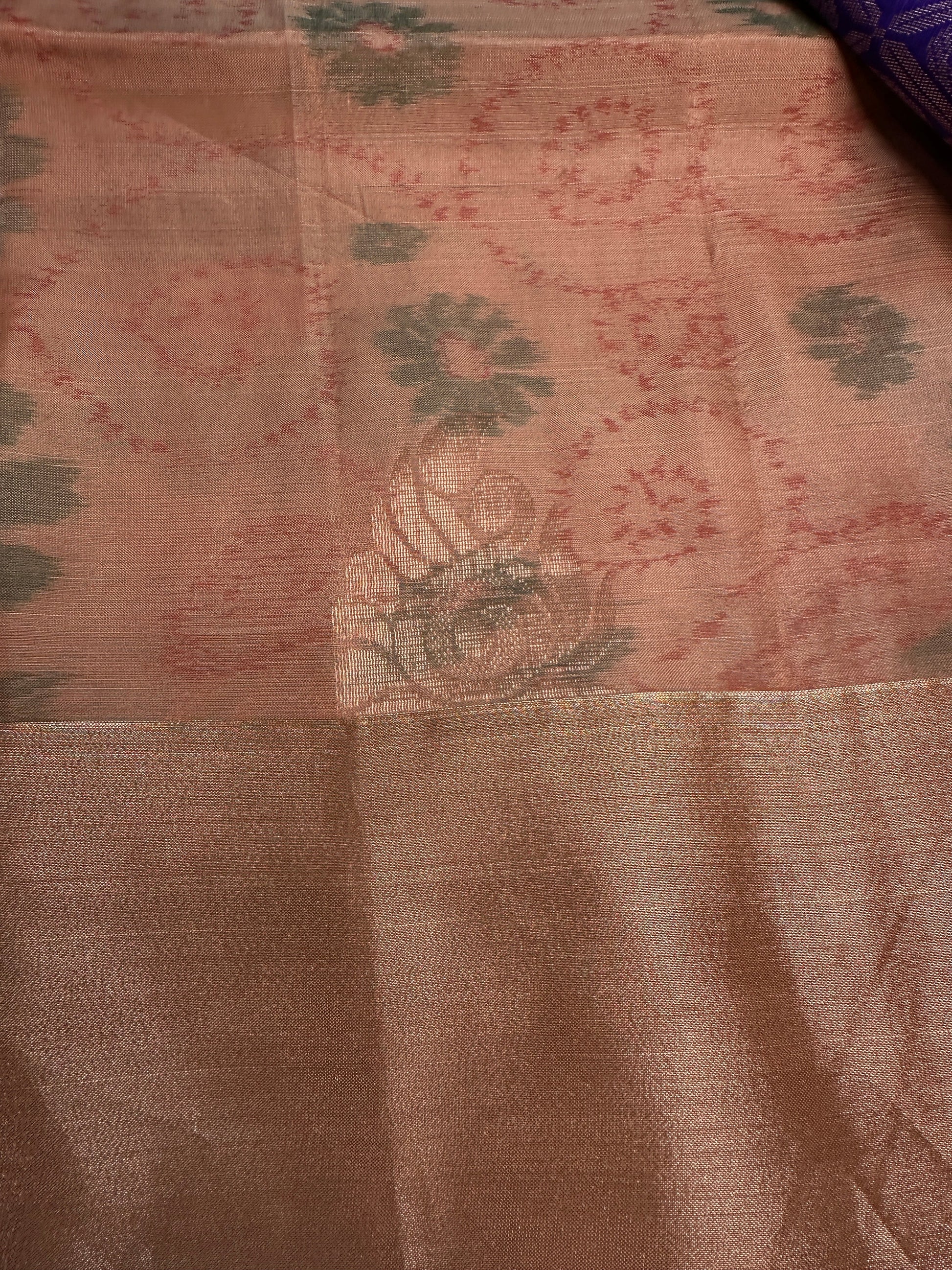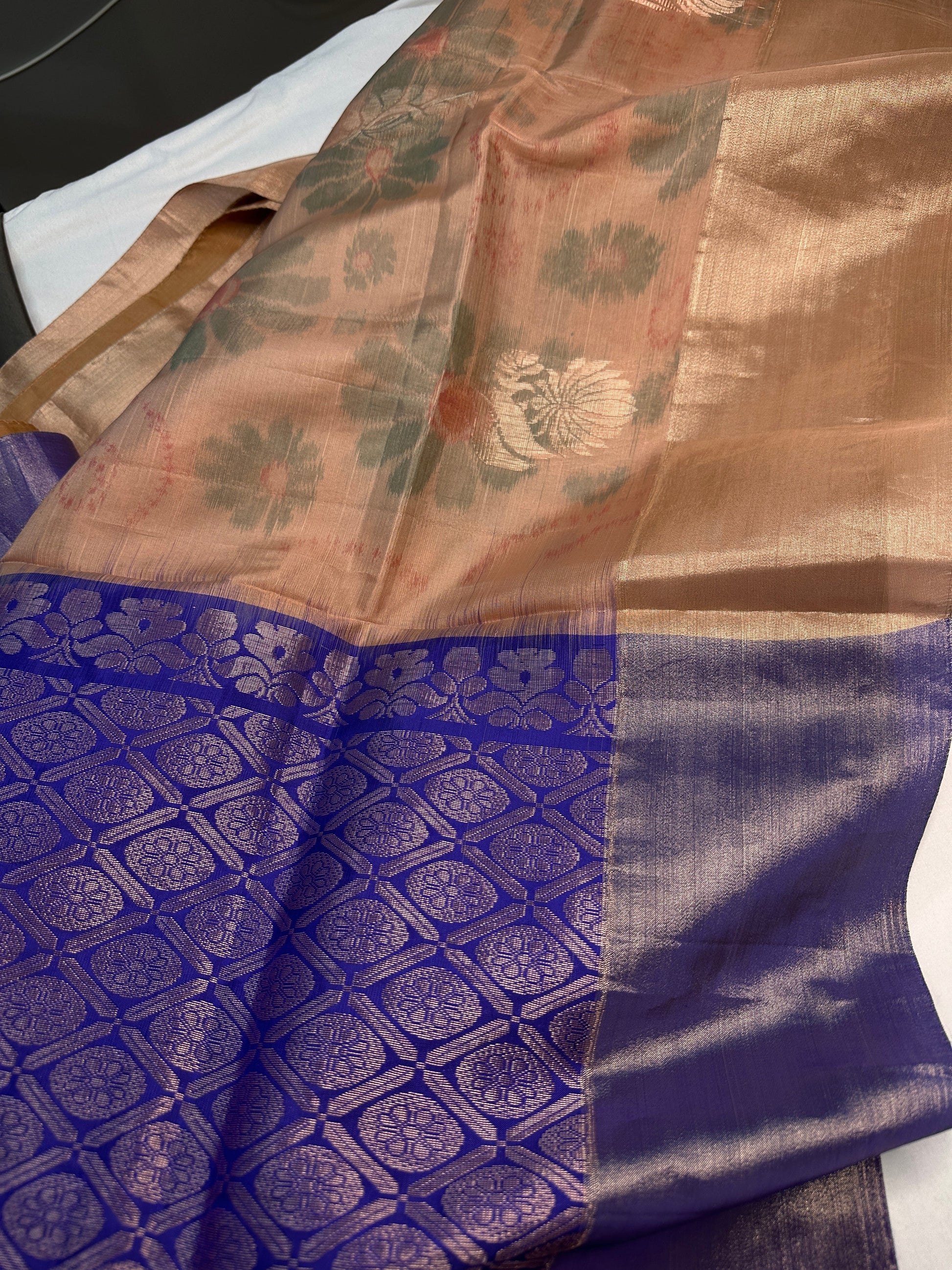 Saree Details : Beige Color Saree Blue Color Pallu Fall and Pico done