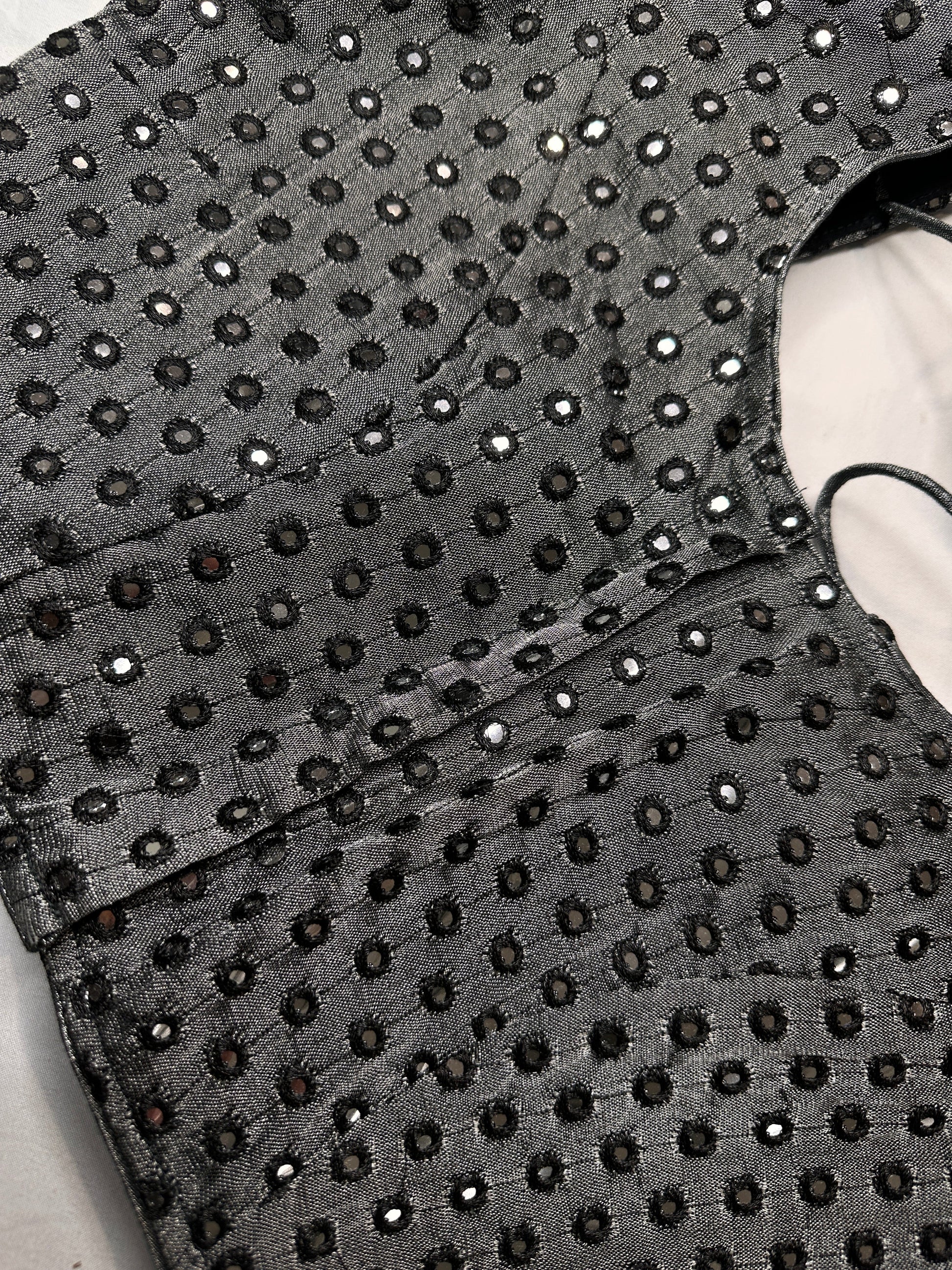 Black Gray Mirror Work Blouse