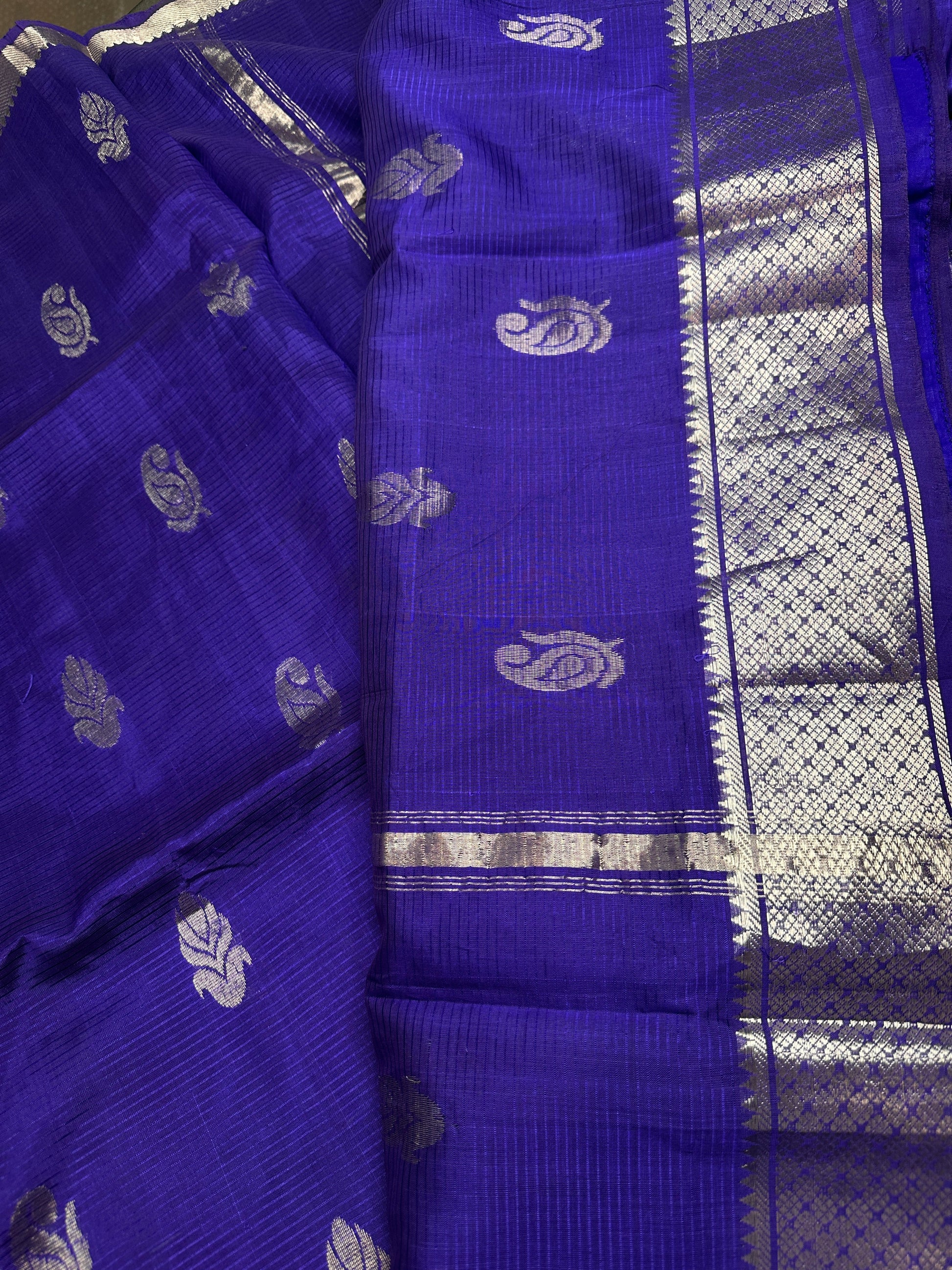 Blue Mangalgiri SICO Handloom Saree Saree Details : Blue Color Saree Fall and Pico done Blouse Details : Blue Blouse Size 38 and has margin to go up to Size 44; Sleeves Length : 7 Inches: Blouse Length : 15 Inches; Front Neck : 7.5Inches; Back Neck : 10 Inches