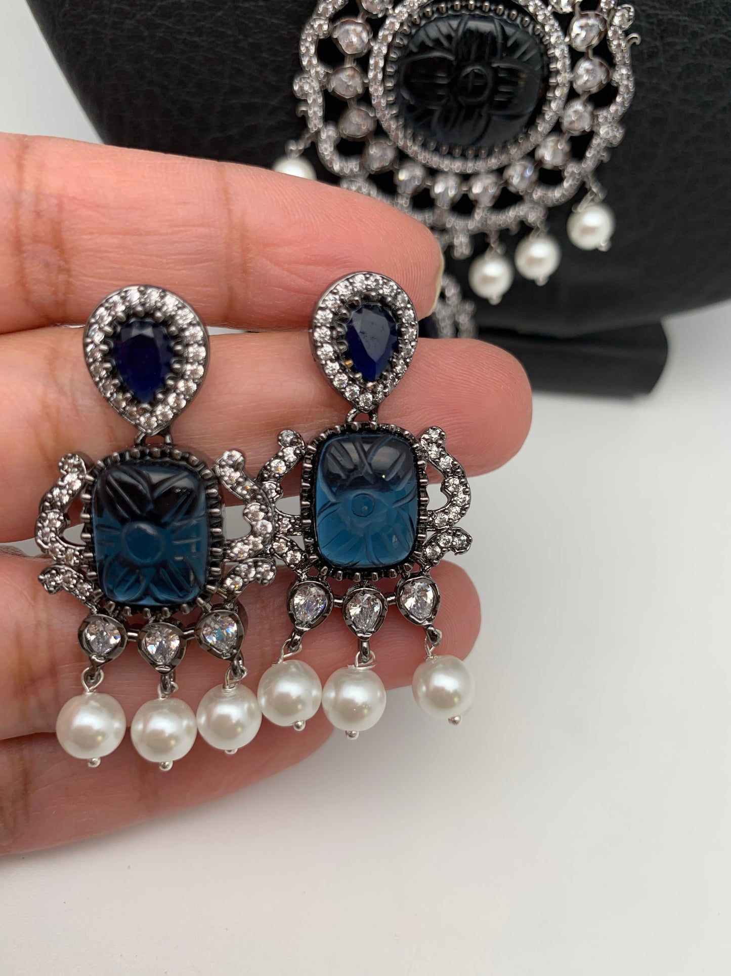 Blue Stone AD Victorian Polish Pendent and Blue Beads Necklace with matching earringsColor : GoldenSize : Necklace Length : 24 Inches; Earring Length 2 inchesStones : Blue Stone AD Blue Beads